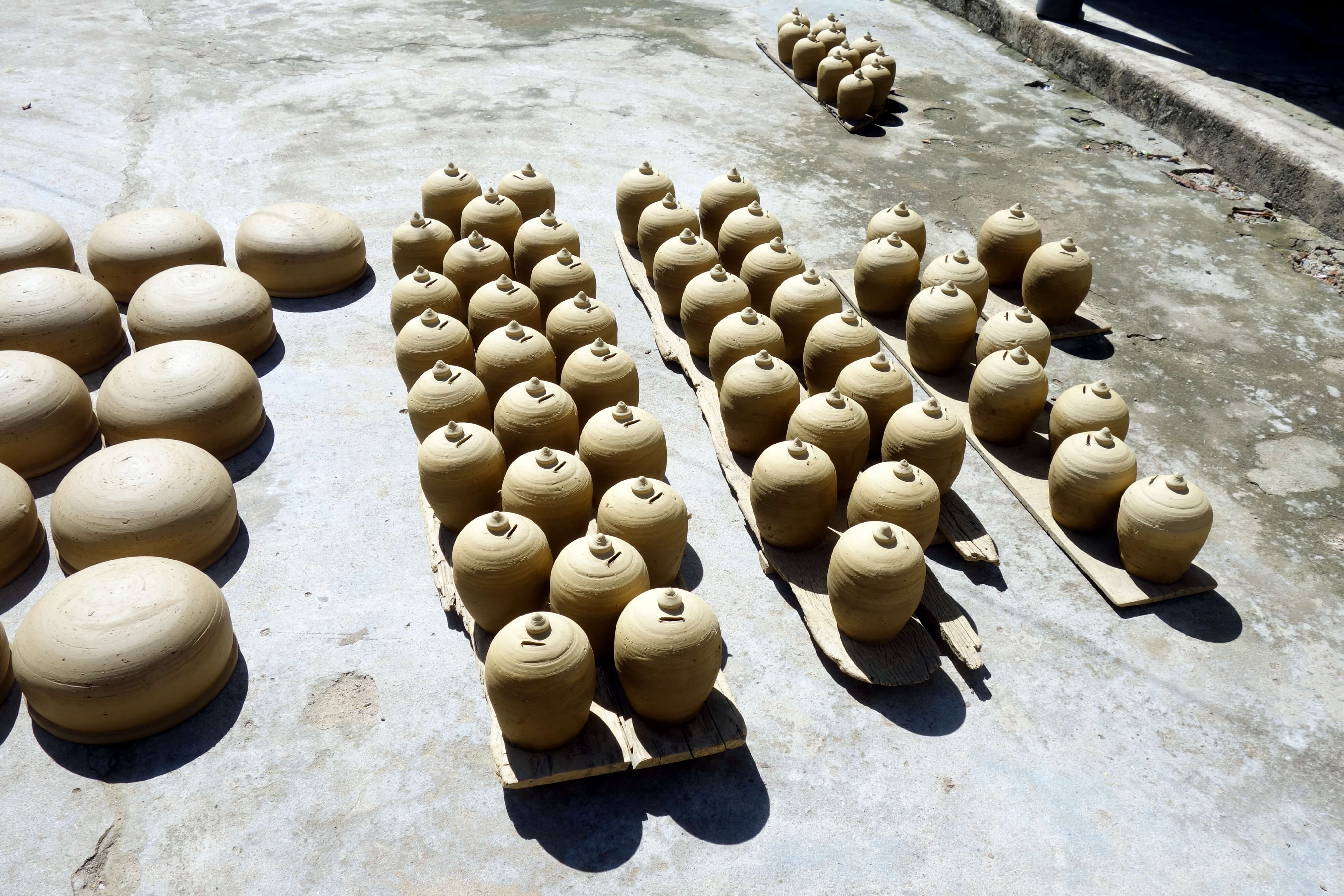 Nous nous sommes ensuite rendues au village de Than Ha pour découvrir les fabriques de poterie. A peine 5 km en scooter !