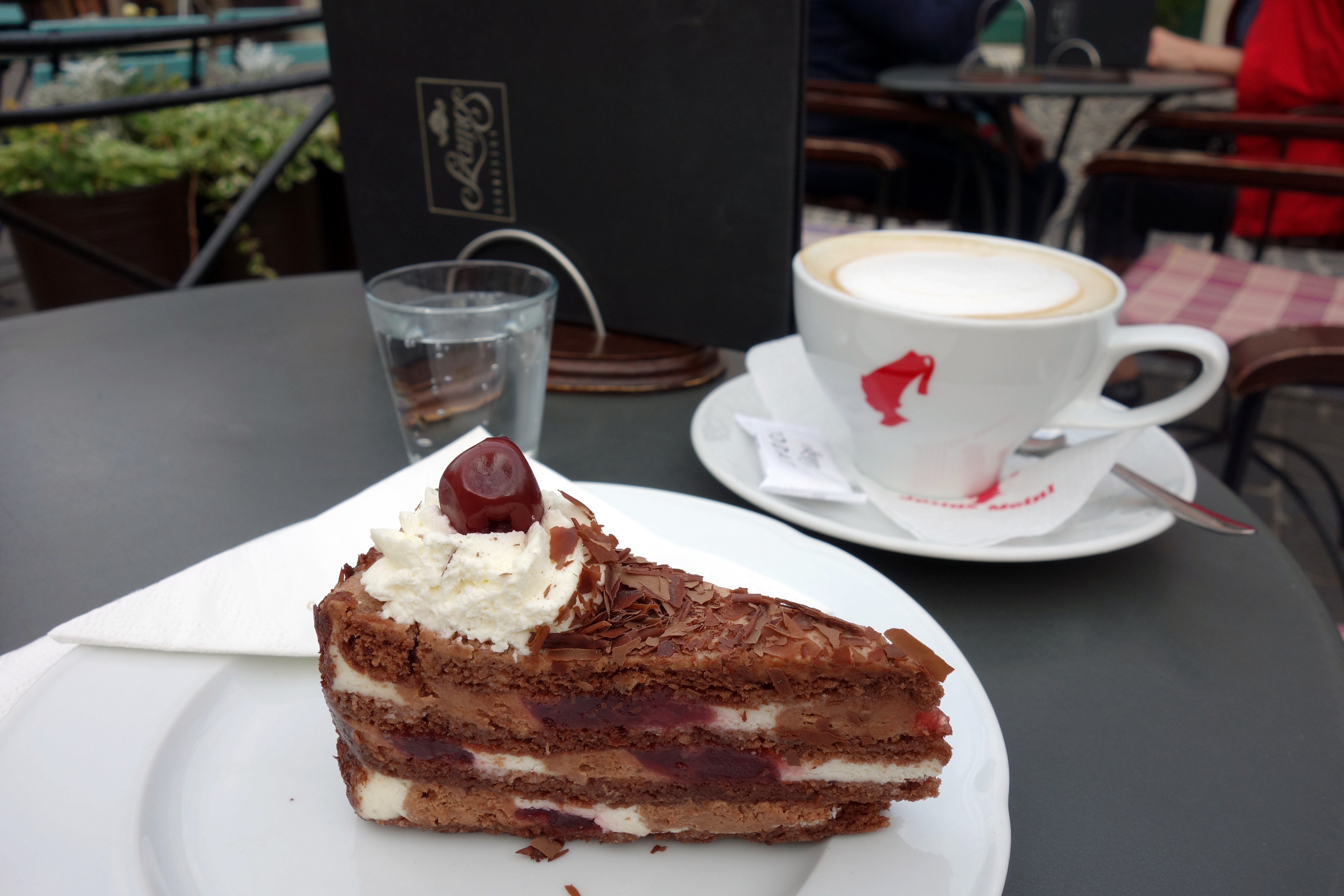 Je traîne encore un peu dans mon lit, la wifi est revenue, je me reconnecte. Puis, je pars me promener dans le centre-ville, je longe le Danube, me perds dans les ruelles, grimpe en haut de la petite colline de l’église d’où j’admire la vue sur les toits des maisons colorées. Puis, je m’arrête à la pâtisserie “muzeum” pour commander une part de Black Forest et un cappuccino tout en écoutant un groupe de musique qui joue dans la rue, ils sont super bons !