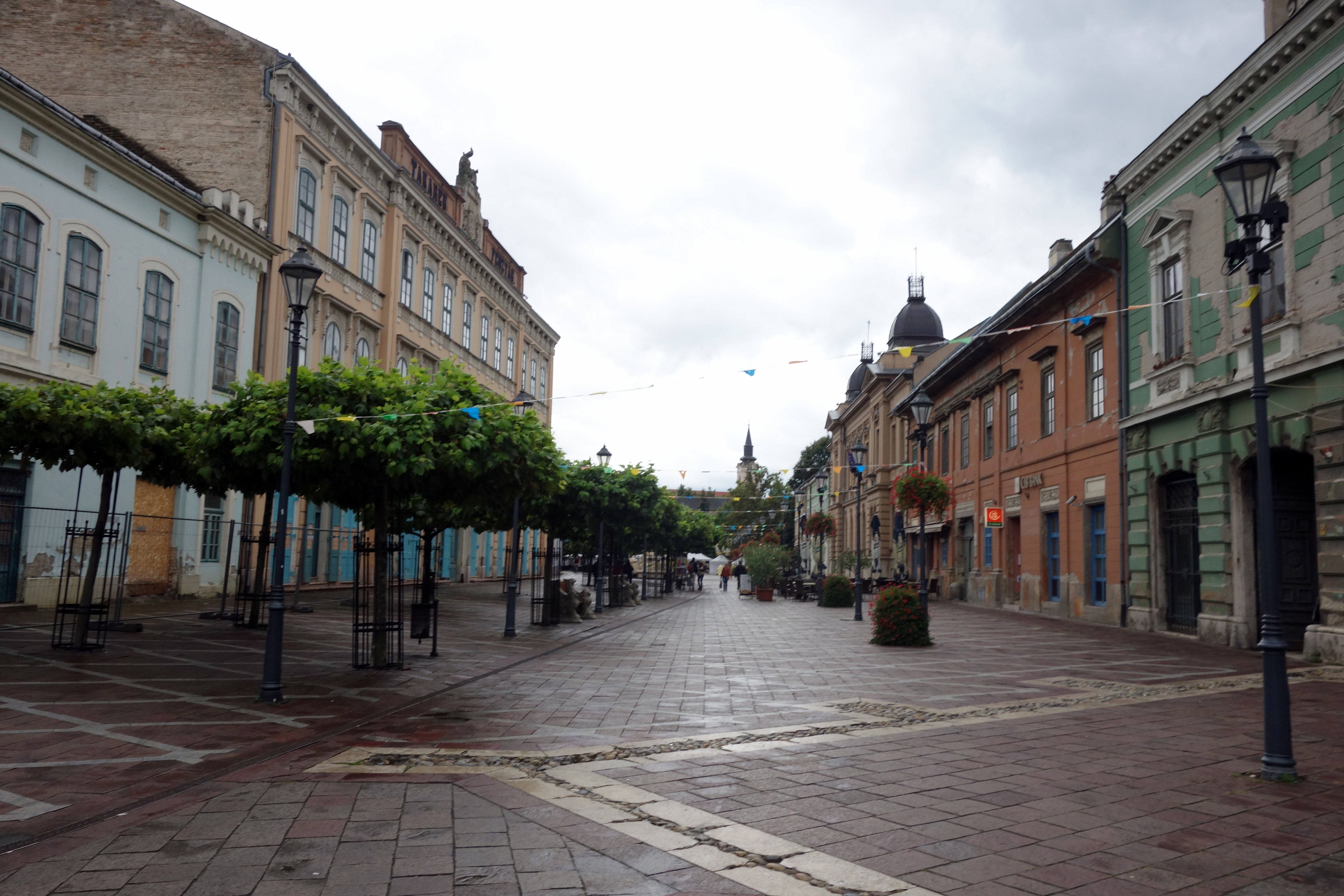 Je réalise une fois de l’autre côté que je ne sais même pas dans quelle monnaie je vais devoir payer. Car la Pologne et la Hongrie qui encadrent la Slovaquie n’ont pas l’euro ! Rappelez-vous, je suis toujours à la recherche d’un endroit où manger. Je me dirige donc vers le centre-ville piéton et surprise… c’est encore plus mort que le côté hongrois !!! Tout TOUT est fermé !! Ça n’arrange pas mes affaires. Je me rabats donc sur une boulangerie et achète 2 petites viennoiseries et une part de cheesecake. C’est léger pour un brunch ! Je demande à la serveuse qui comprend très bien l’anglais comment dire “merci” en slovaque, je me prends un regard noir et elle baragouine dans sa barbe en se retournant, bon ok… pour l’amabilité on repassera. Assise à ma table, je profite de la wifi pour chercher sur internet comment dire merci, c’est toujours le premier mot que j’apprends dans chaque pays, c’est pas parce qu’elle est mal lunée que je vais me laisser faire, non mais oh ! Quand elle m’apporte mon cappuccino, c’est avec un grand sourire que je lui réponds “dakuyem” et c’est un deuxième regard noir que j’encaisse, bon, décidément, ce n’est pas son jour !