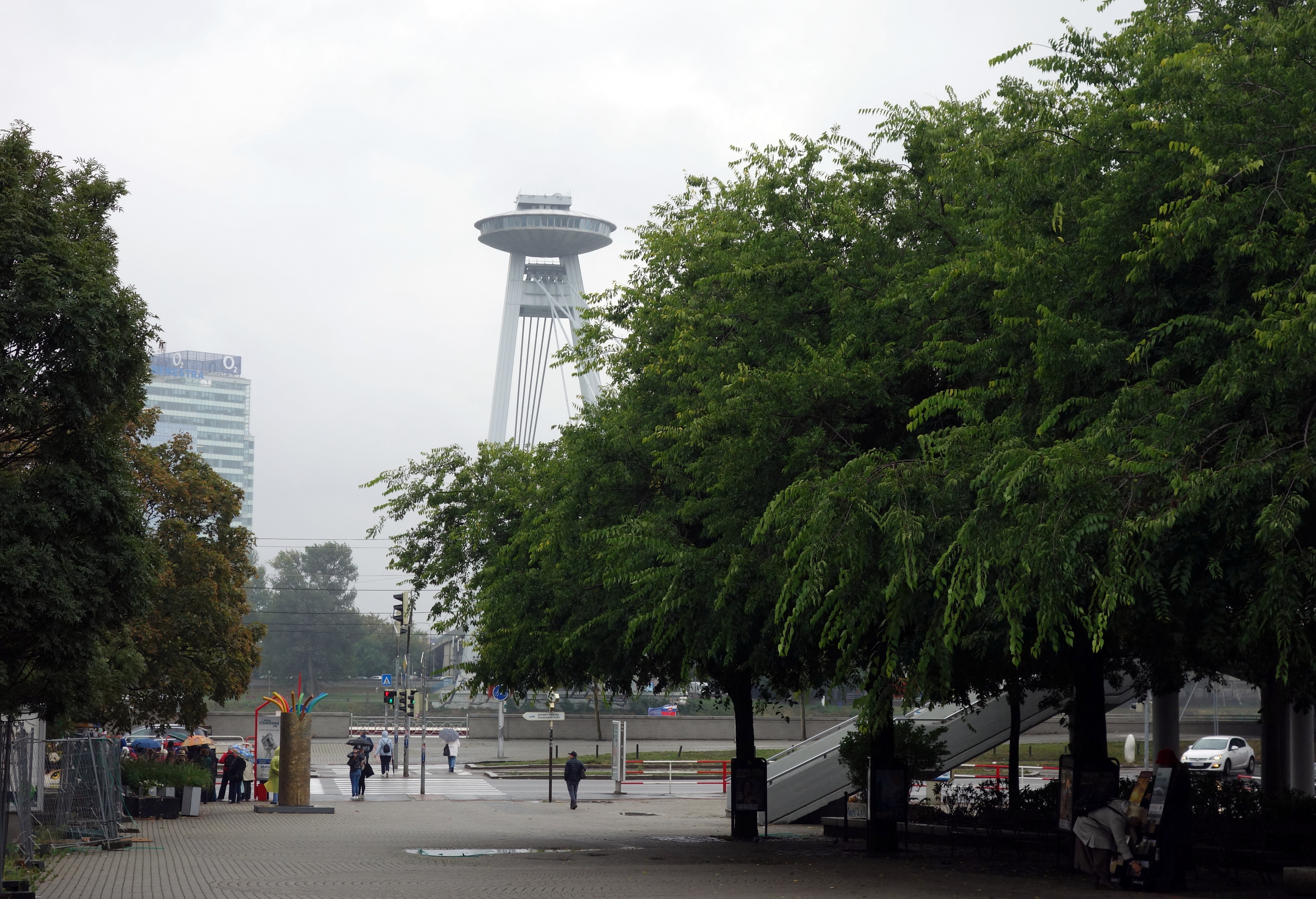 Vous voyez ce grand pont en plein centre de la ville ? Il est surnommé UFO (OVNI) à cause de sa soucoupe volante suspendue au milieu. Il s’agit en fait d’un bar/restaurant. Pour construire ce pont sur lequel passe l’autoroute (en plein centre ville!!) le régime communiste a dû détruire la synagogue et une partie du quartier juif qui était sur leur passage. C’était leur façon de montrer que le bien être du peuple ne les intéressait pas et que rien ne pouvait les arrêter. Un acte délibérément inhumain donc.