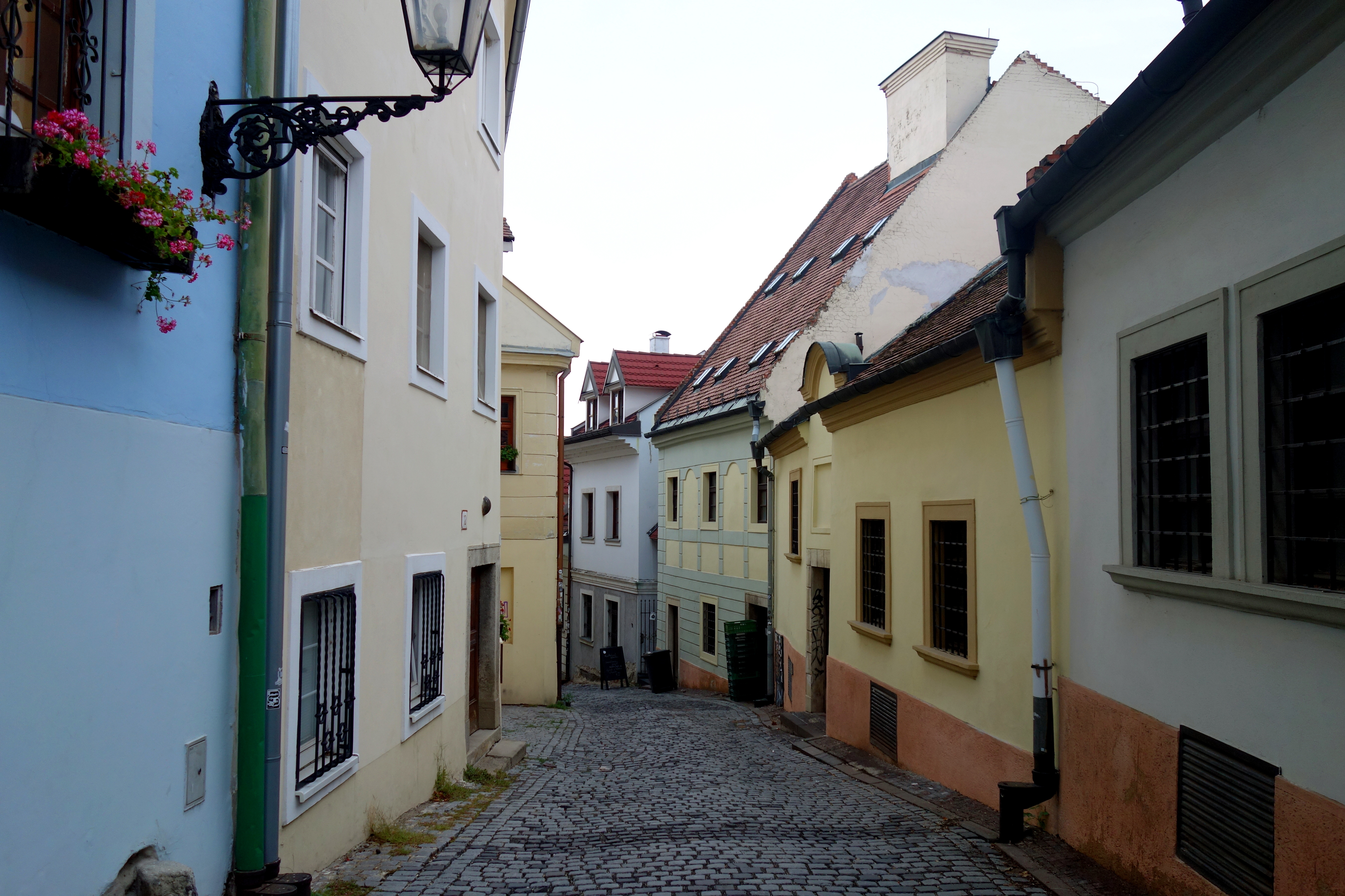 Mais d’abord, je vais monter voir le château. La vue est sympa, on peut voir 2 autres pays : la Hongrie et l’Autriche ! Je redescends en traversant la vieille ville, me promène dans les petites ruelles mais le froid a raison de moi !