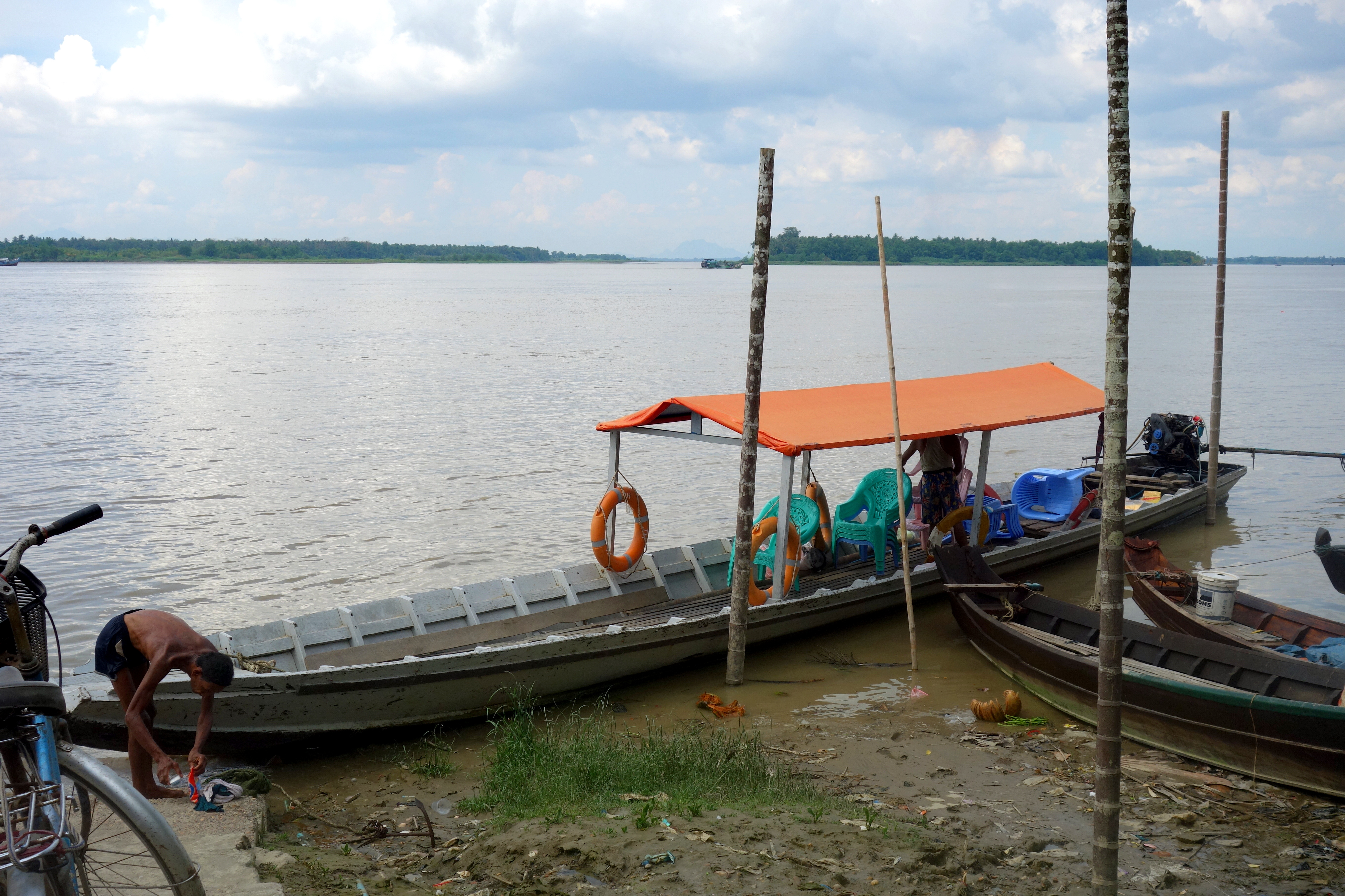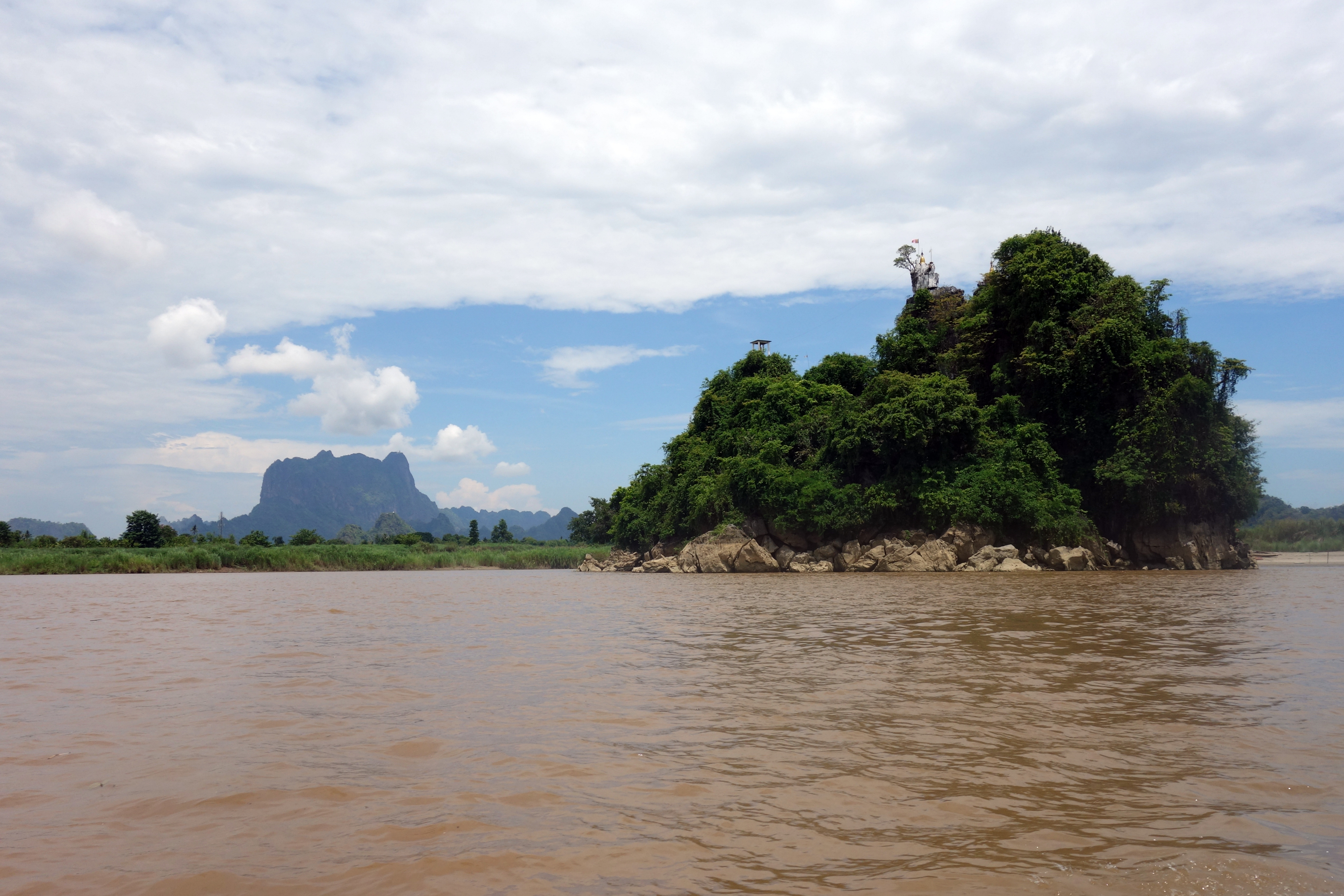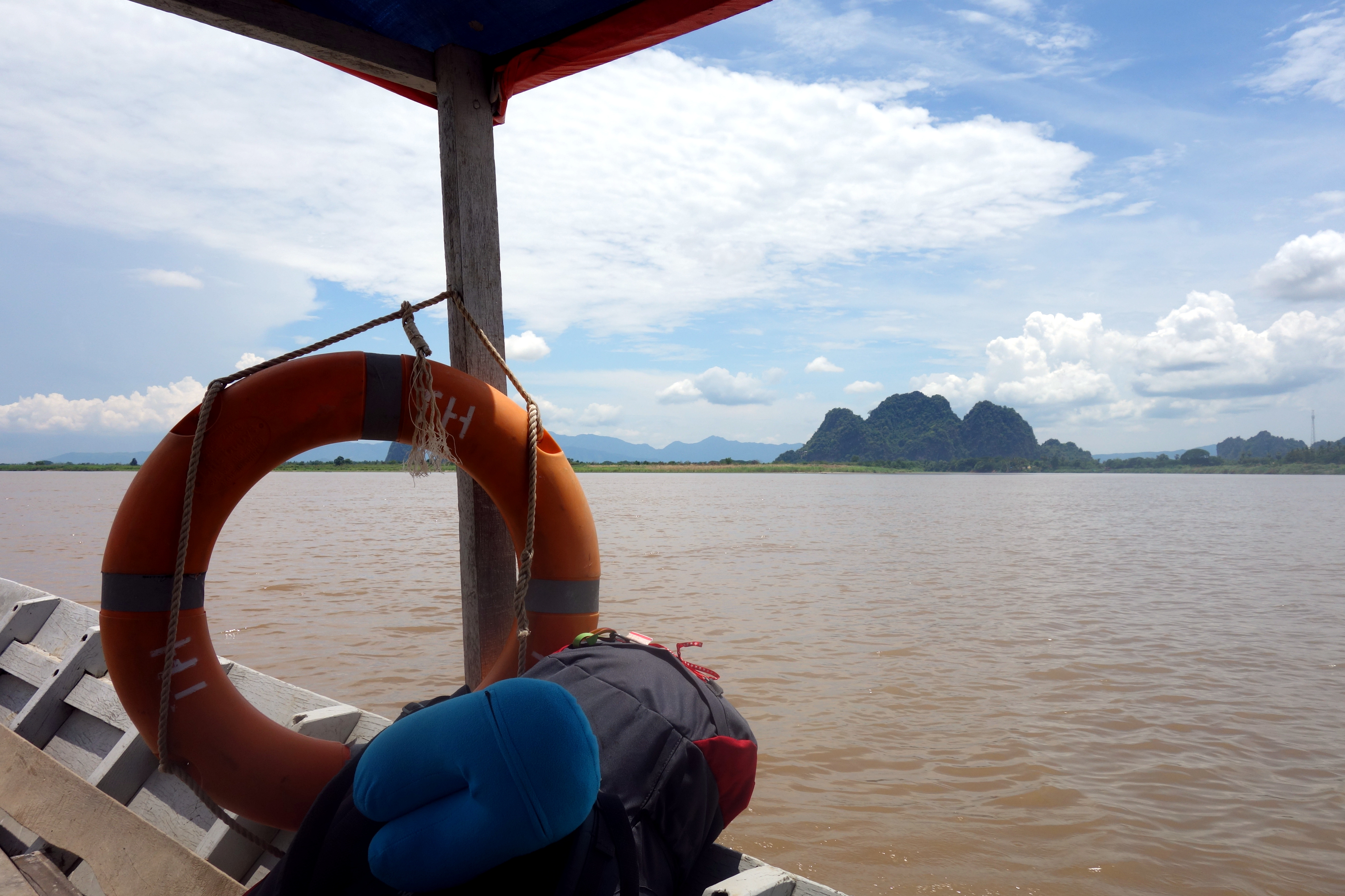 Il est temps de dire au revoir à Hpa-An, je prends le bateau pour Moulmein. Le trajet est réputé pour être magnifique mais crevée comme je suis, je m’endors au bout de 5 minutes et me réveille à l’arrivée… Bon, la prochaine fois, je le ferai en bus ! Ça coûtait moins cher et c’était beaucoup plus rapide ! Tant pis, j’ai été bercée par le courant c’était une petite sieste bien agréable !