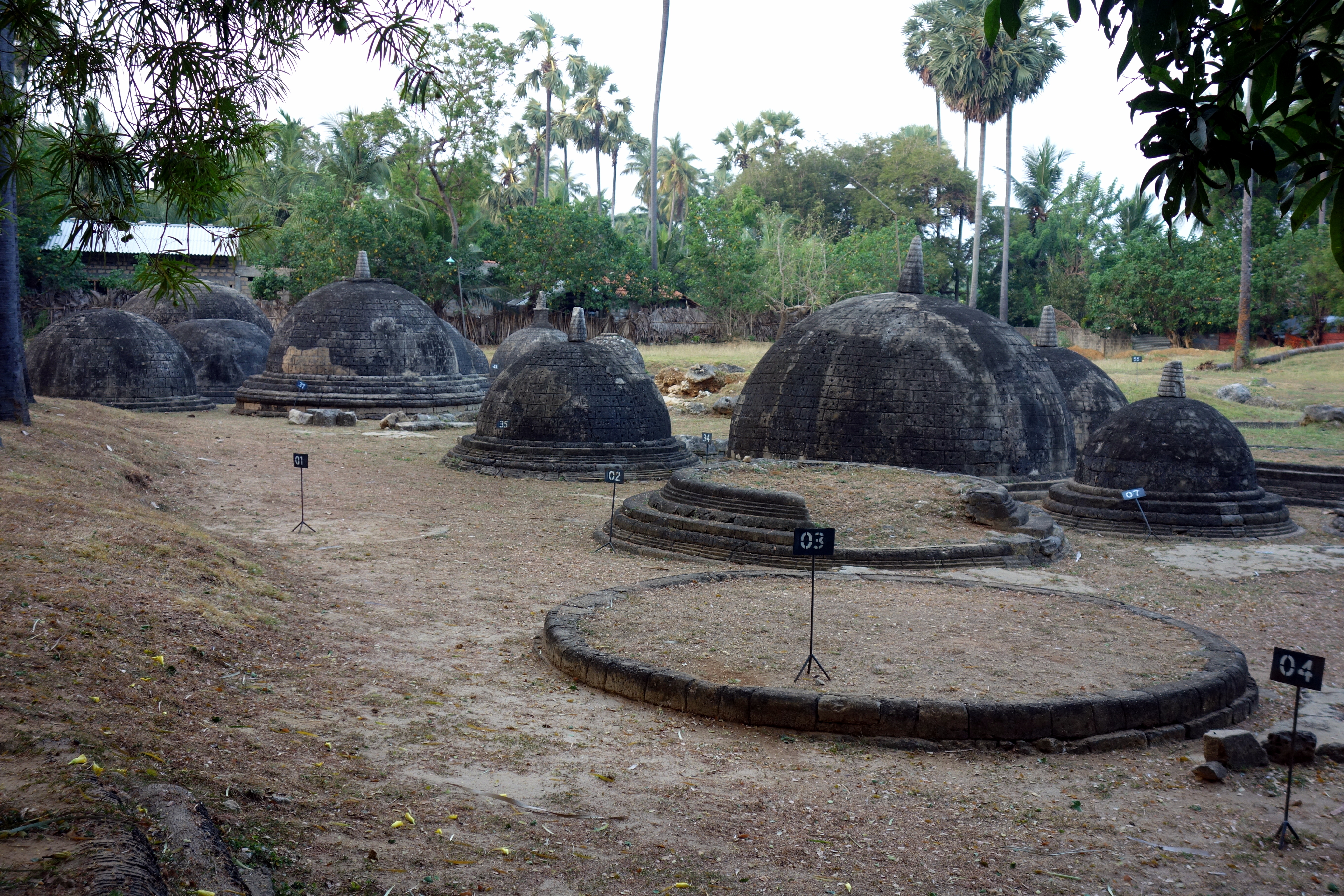 On renfile nos jeans pour poursuivre notre route. Prochain stop, le site archéologique de Kantharodai. On galère un peu a trouver alors on demande dans le village, un groupe de jeunes nous tracent l’itinéraire à l’aide d’un bâton dans le sable, c’est bon, on a tout compris !! Arrivés la bas, on ne comprend pas trop ce qu’on voit : des ruines en forme de petit dôme au sol…  Mais bon, c’est joli haha