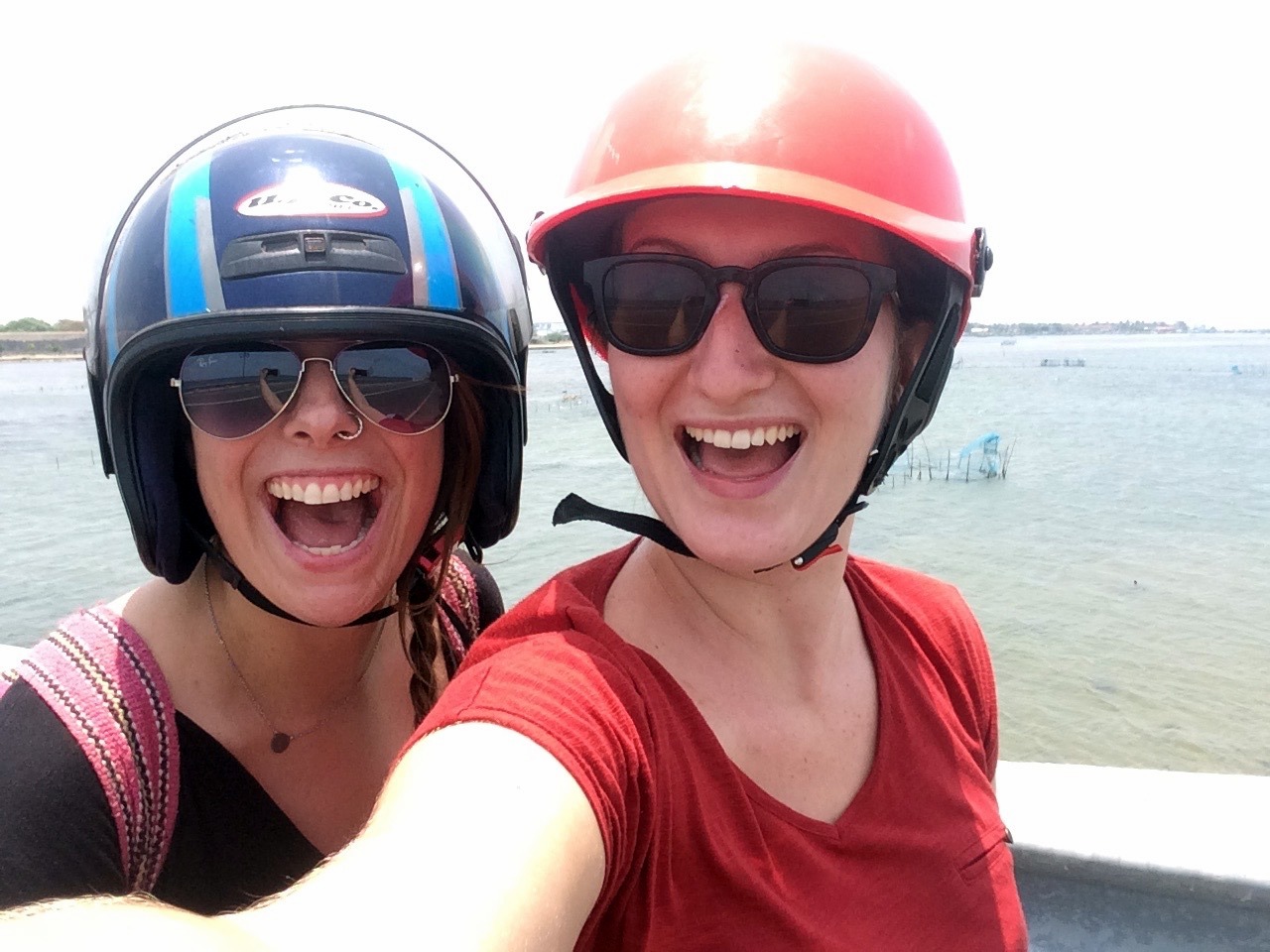 Après s’être reposées quelques temps au frais, laissant les heures les plus chaudes de la journée s’écouler lentement. On part à la découverte des “points d’intérêts” de la ville ! On en a noté quelques uns sur maps.me, après seulement quelques mètres, on réalise qu’il fait encore très chaud. Alors, quand un tuktuk nous fait signe, on échange un regard et : ok, on fait le tour avec lui ! Pour 6$, il nous emmène partout. On commence bien évidemment par le fort vue sur mer, il ne reste vraiment que quelques pans de mur. On est là depuis 5 minutes qu’on a déjà posé pour 10 selfies ! On n’arrête pas ! Un mec est particulièrement insistant et .. tactile dirons-nous, je suis quand même bien contente de ne pas être là toute seule …