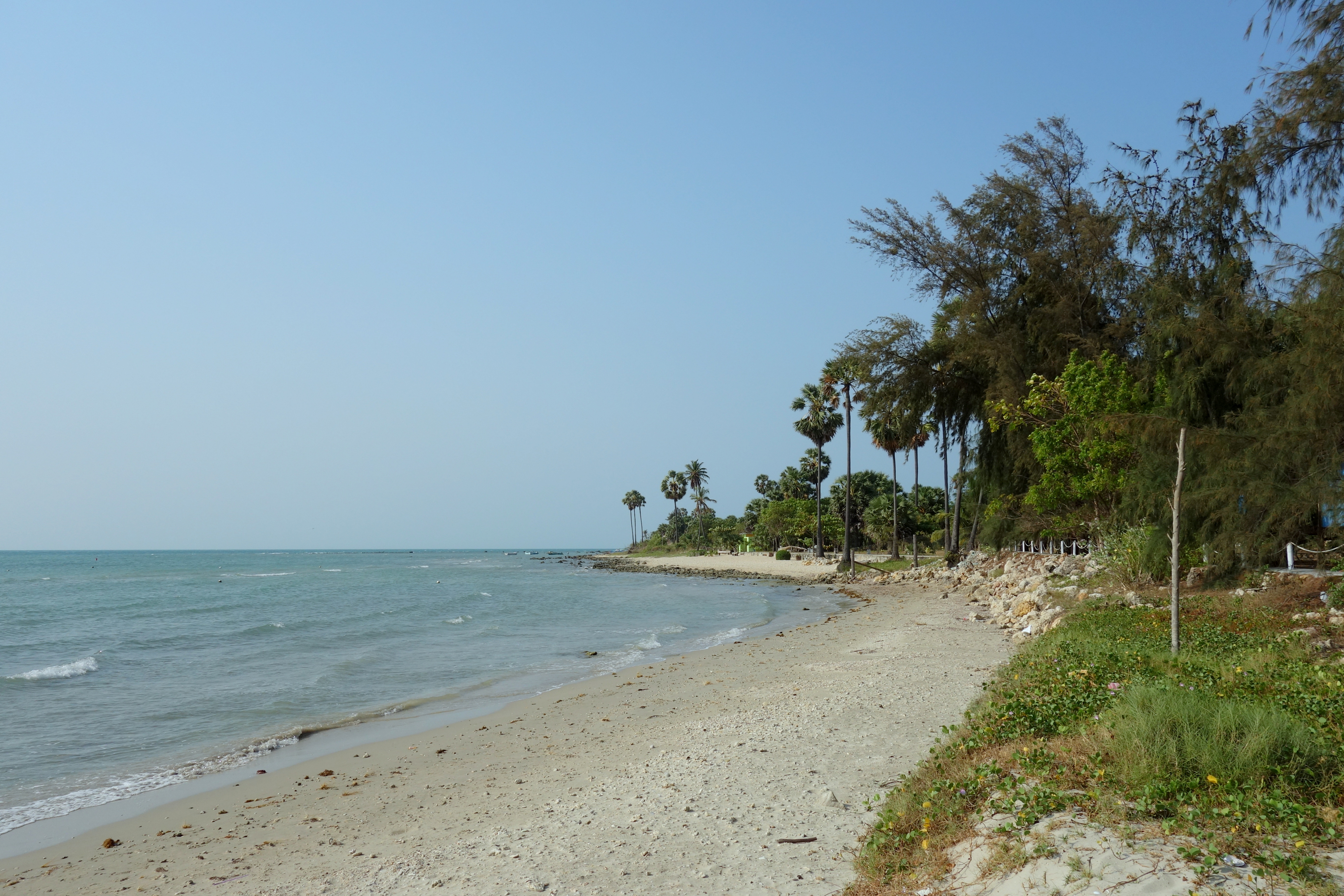 On se remet en route, on emprunte la rue de l’école, mais on ne voit pas d’école … le village est complètement vide : normal, tout le monde est au temple ! On le sait maintenant. On longe la plage et on observe des mosquées et des églises. Ici, toutes les religions cohabitent en paix.