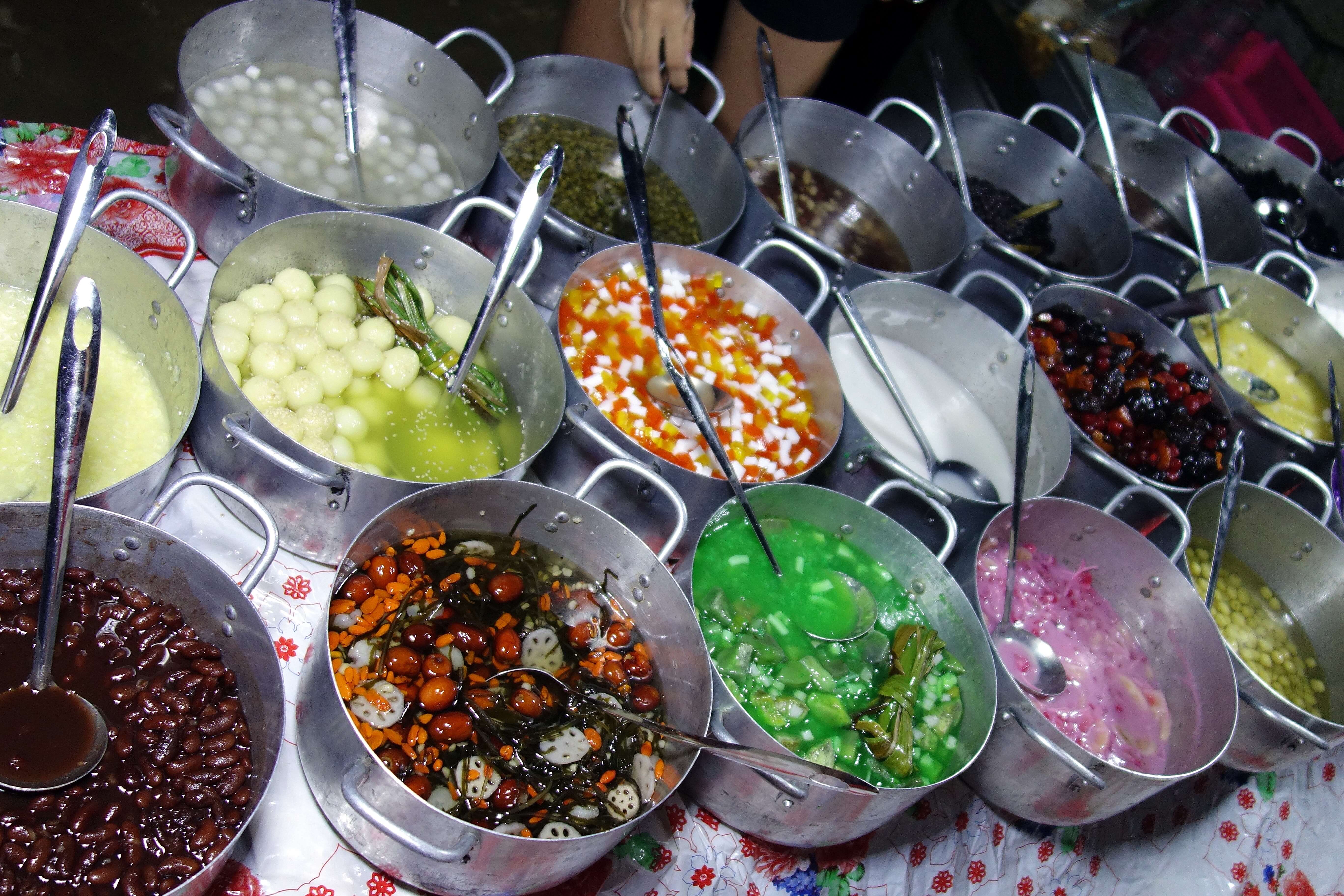 A peine s’est elle éloignée de 2 mètres que deux vietnamiens, un garçon et une fille, s’approchent de moi. « bonsoir, est ce que tu souhaites parler en anglais avec nous ? » J’admire la volonté de tous ces Vietnamiens qui apprennent les langues étrangères simplement en parlant aux étrangers dans la rue. J’accepte avec plaisir. On passera 2 heures ensemble !! Ils ont mon âge, sont étudiants en médecine. Ils viennent une fois par semaine au marché et rencontrent beaucoup de touristes. Leur anglais est très bon. On se raconte nos vies d’étudiants respectifs, nos voyages, nos plats préférés, nos bonnes adresses, nos rêves, on partage un Ché sur le trottoir. Sur leurs conseils je goute les graines de lotus, pas mal mais la prochaine fois je suivrais mon instinct, je préfère quand même les fruits ! Après une photo souvenir, nos routes se séparent.