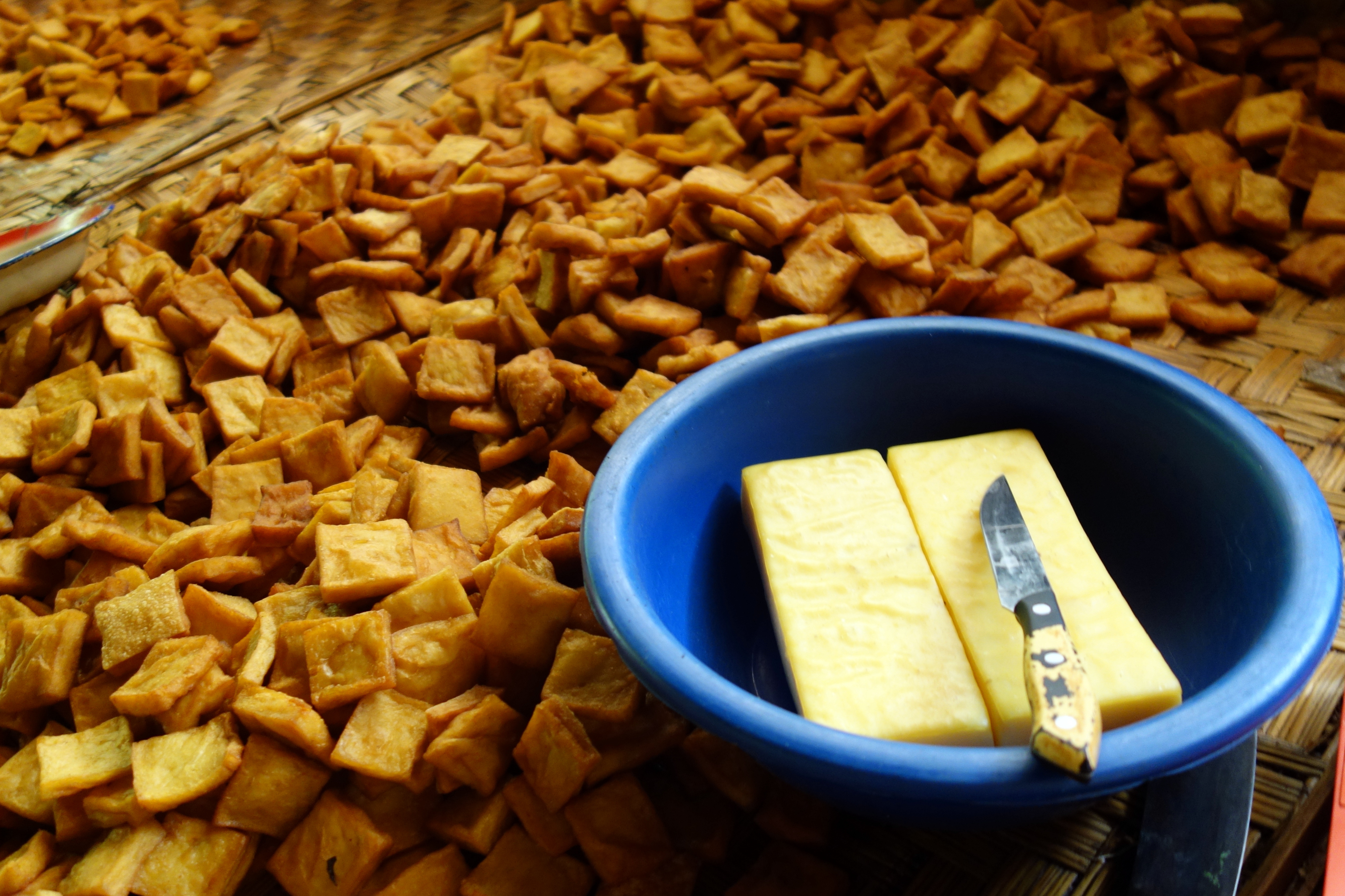 Je mange une soupe shan pour 1000 rs (certes, pas chère, mais le double du prix normal…) c’est très bon ! J’achète du tofu d’apéro à grignoter sur l’un des nombreux étals de tofu ! Ici, c’est vraiment la spécialité !