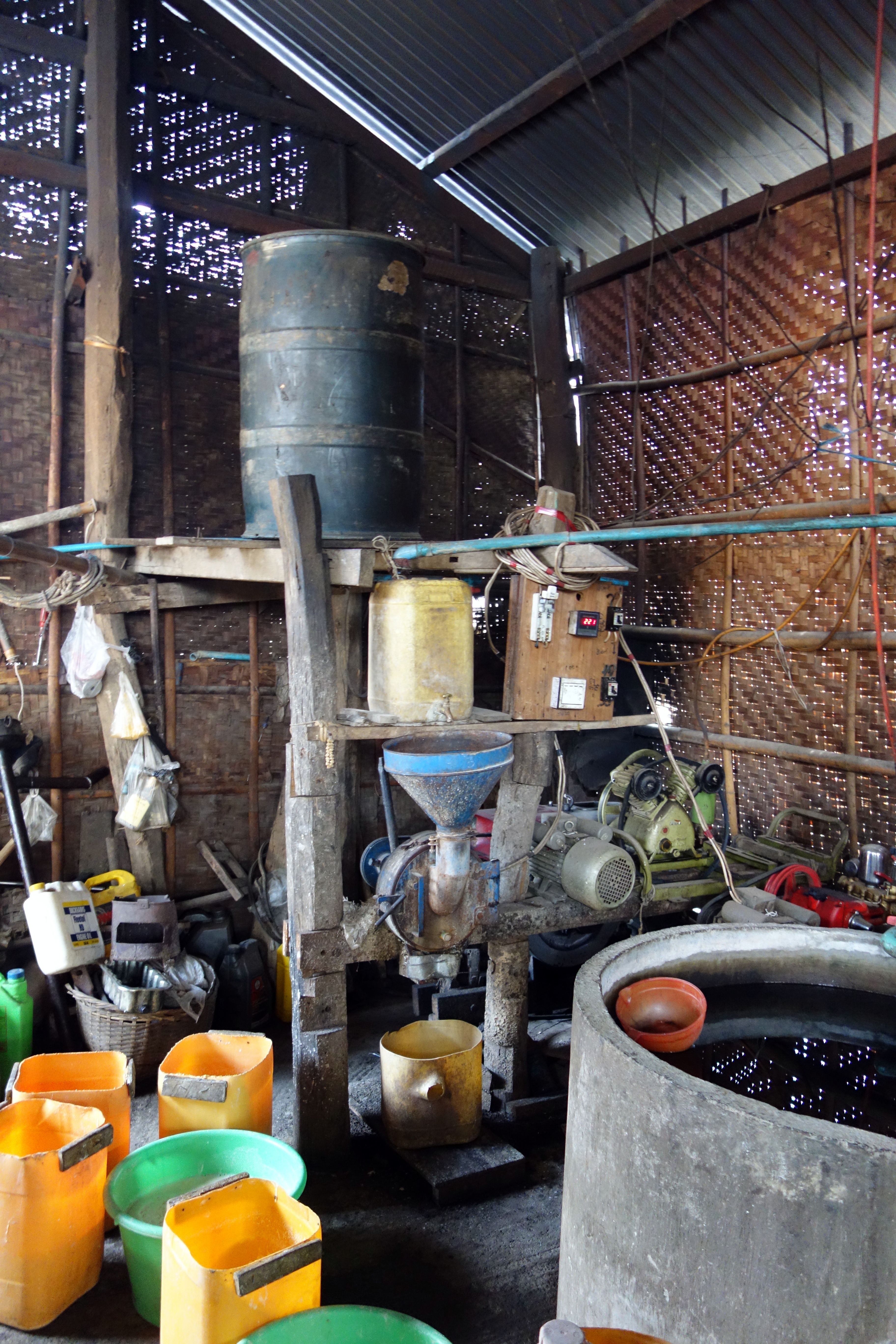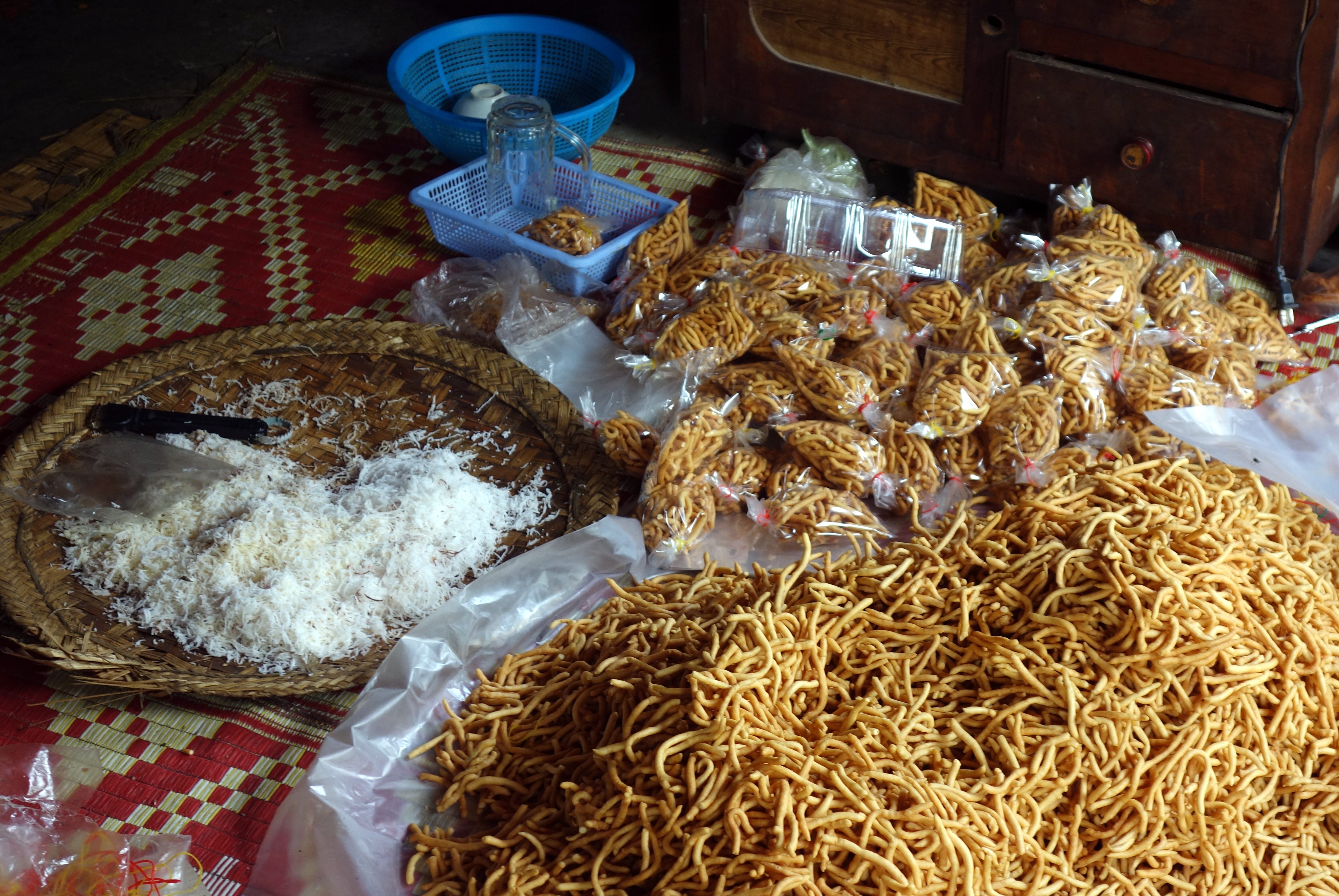 Il s’agit donc de la fermentation du lait des graines de soja, ensuite selon qu’on la laisse sécher au soleil, qu’on la met dans de l’eau ou dans de l’huile, le nombre de fois où l’on répète le processus, on peut obtenir un nombre incalculable de sortes de tofu ! Et toutes sont très très bonnes. On peut déguster à chaque étape … Je me régale ! Notre guide répond à toutes les questions et nous explique plein de choses intéressantes ! 50 familles travaillent dans cette petite industrie ! La visite est gratuite sur donation ! Ça dure une bonne heure ! Les hispaniques sont venus en gros tuktuk, Je leur demande gentiment si mon vélo et moi pouvons nous joindre à eux … ils acceptent, ouf ! Car les 12 km de ce matin à la mi-journée ça aurait été dur !