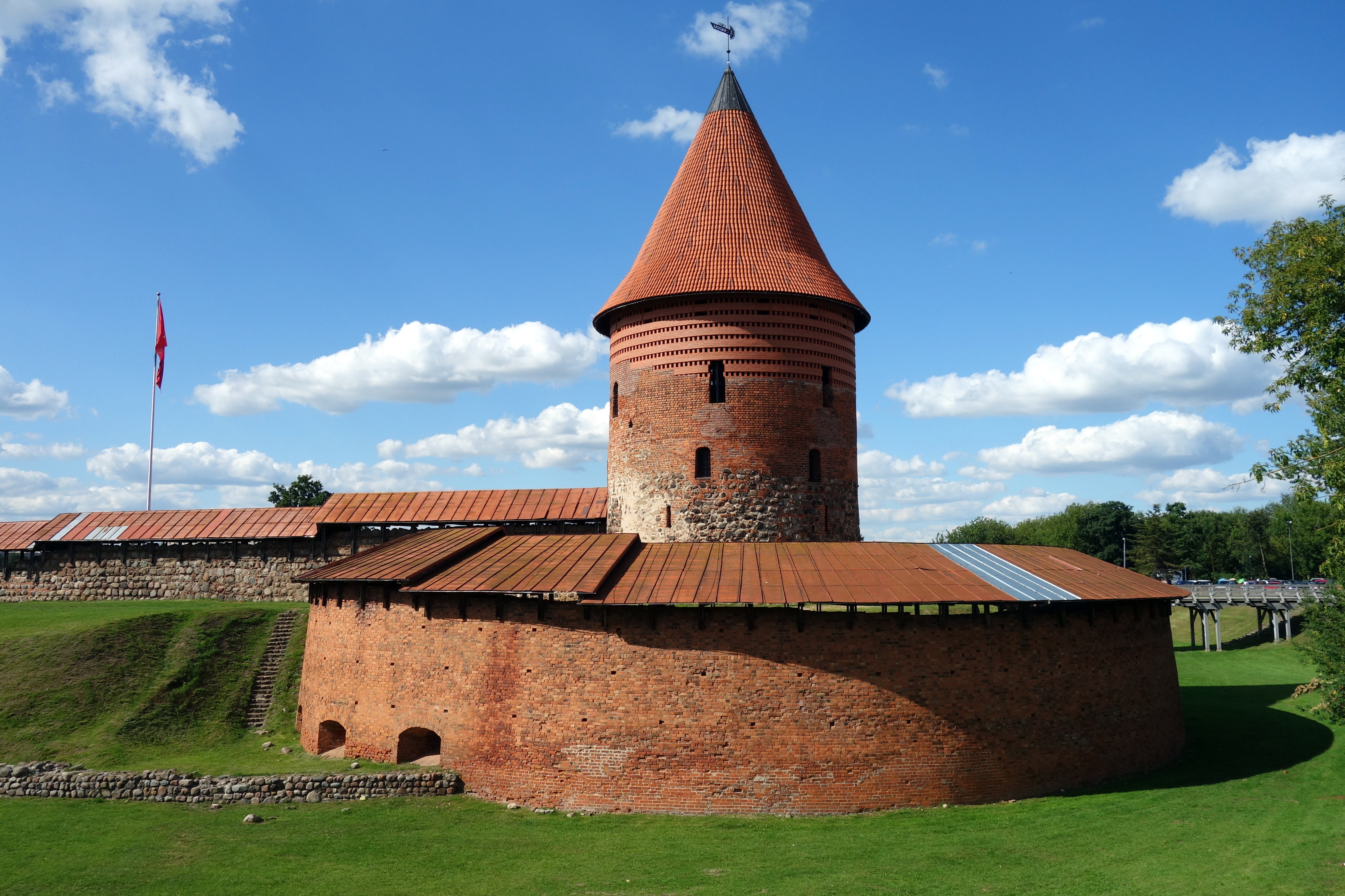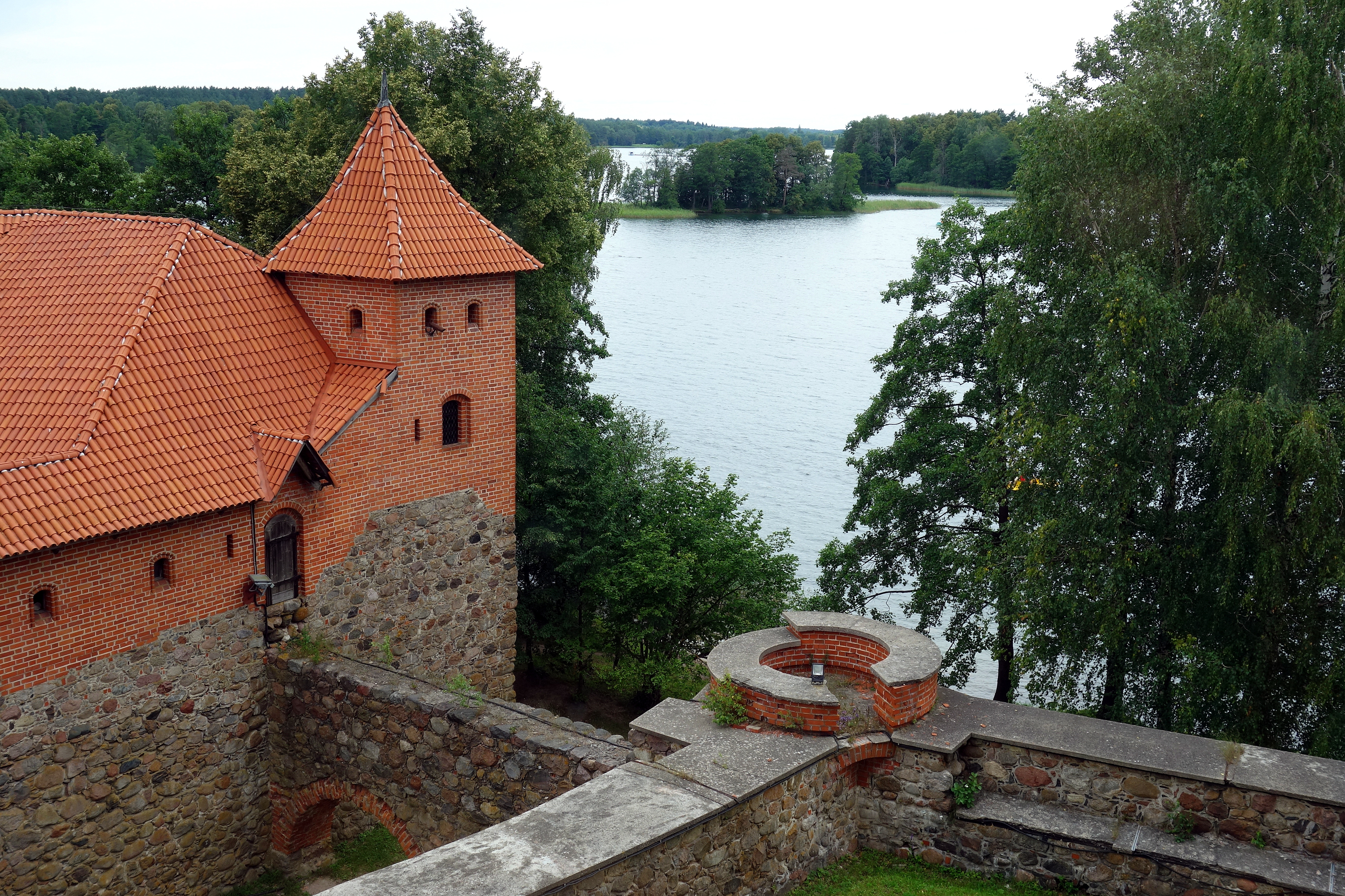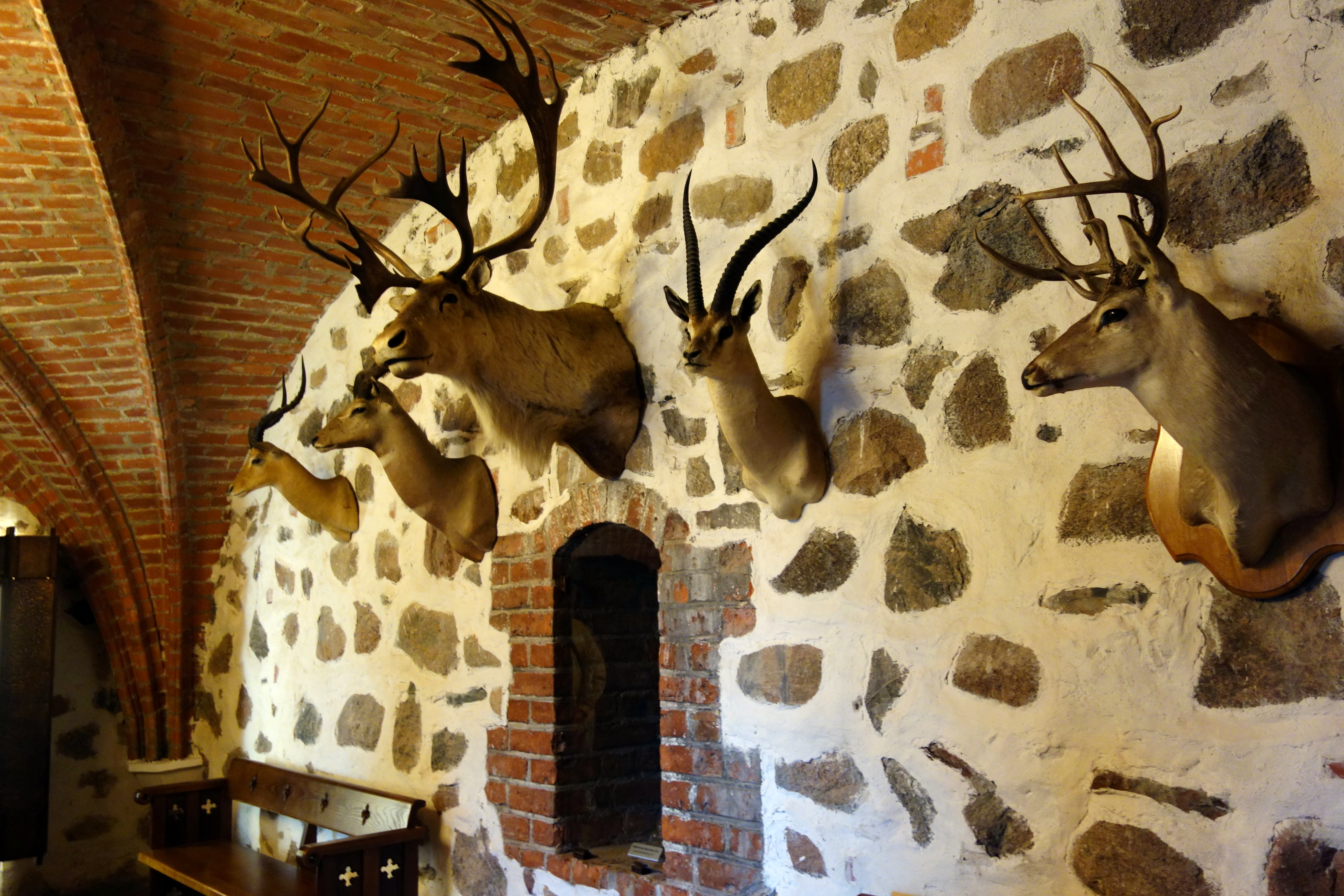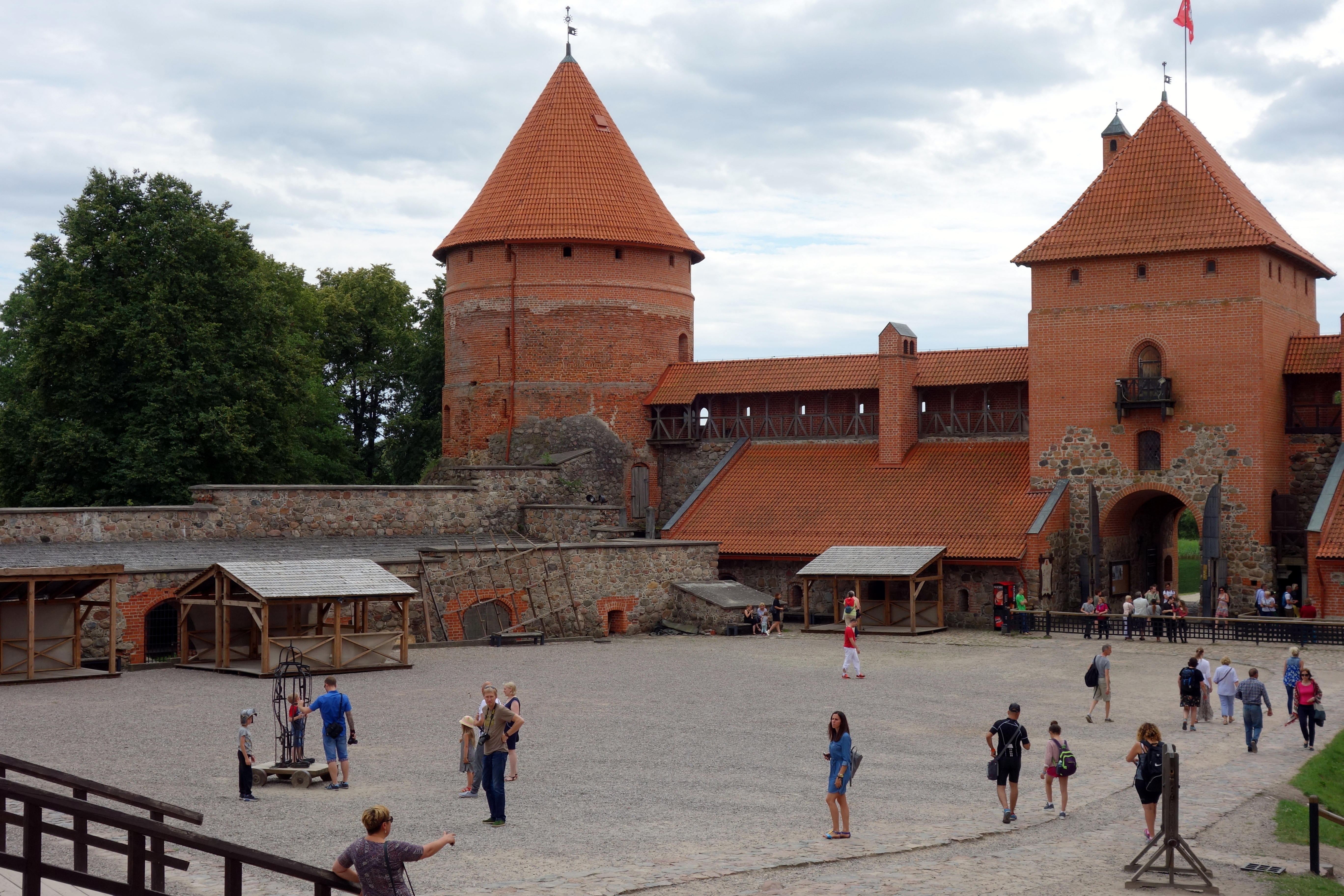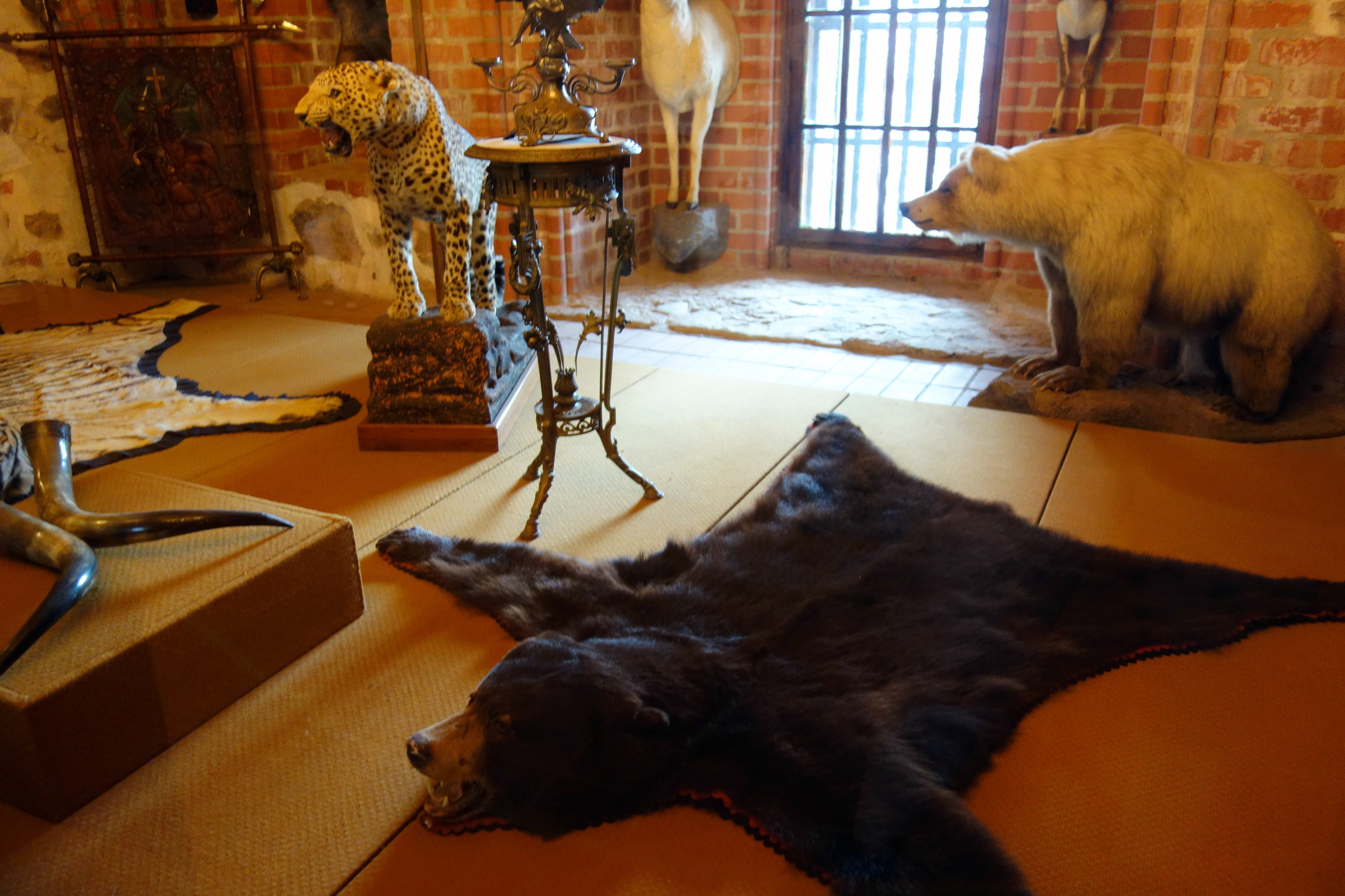 Après avoir payé l’entrée, j’accède à la grande cour intérieure. On peut visiter les remparts, il y a de petites expositions dans chaque salle avec différents objets d’époque : de la vaisselle, des pipes, des tableaux, des objets de chasse… Puis on accède au château par un pont levis ! Il ressemble à un fort ! On peut visiter chaque étage, les salles sont reconstituées, la chapelle, la salle du trésor. Malheureusement, les descriptions qui étaient en français dans la première partie, puis en anglais sont désormais dans pleiiiiin de langues sauf celles que je connais, je peux au choix lire en lituanien, russe, polonais, allemand, et d’autres que je ne reconnais pas. Je n’en saurai donc pas plus sur ce château.
