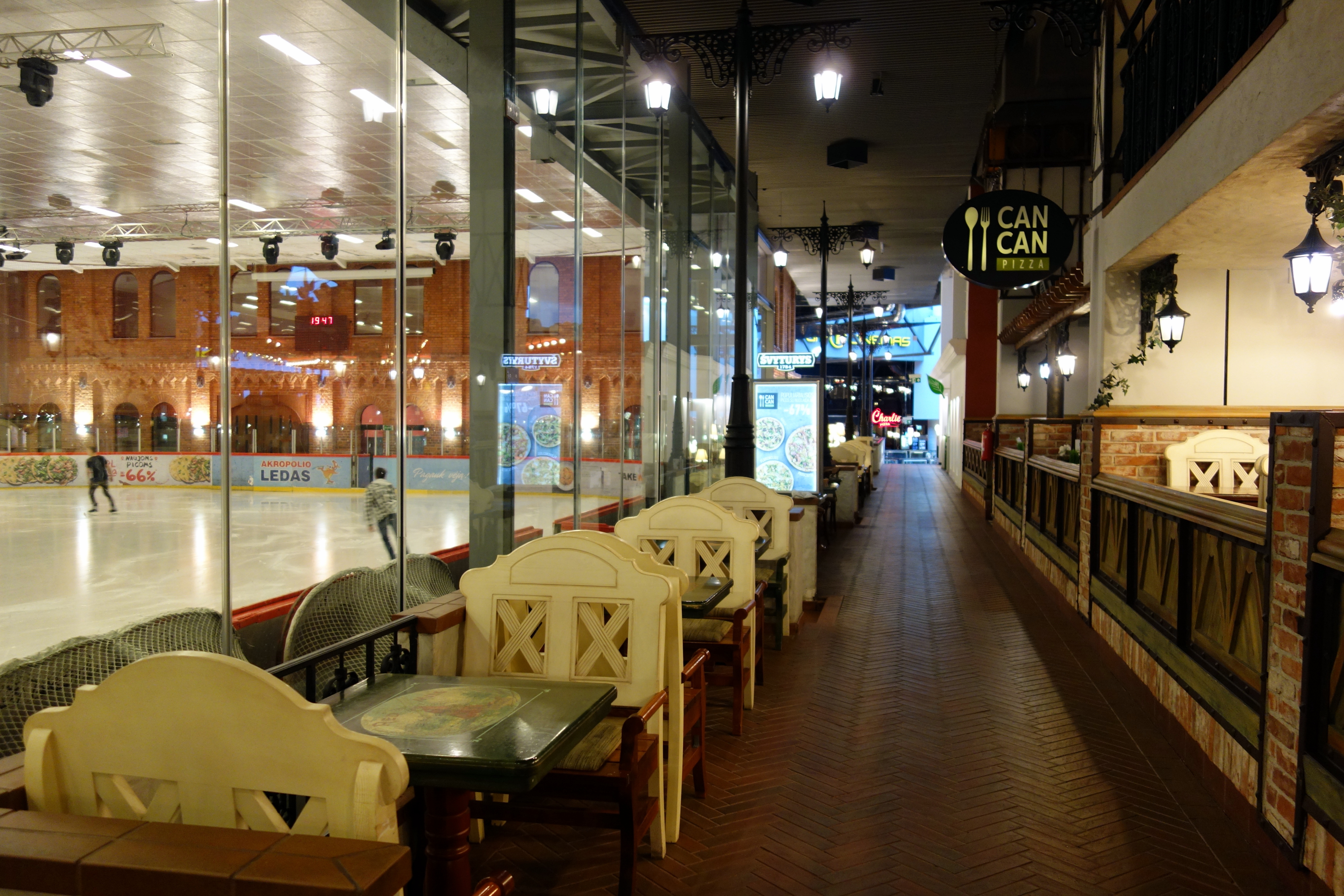 Le lendemain je pars à la découverte de la ville. Je commence par le centre commercial Akropolis qui ne se trouve pas loin de mon auberge. C’est immense, l’aménagement est superbe, au dernier étage il y a une patinoire, un bowling et une mini-ville reconstituée avec plein de restaurants. C’est vraiment très sympa.