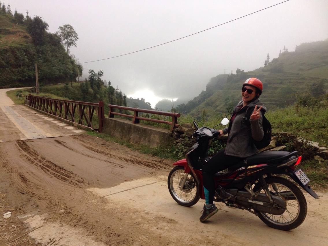 Je suis rentrée au homestay vers 13h pour faire une sieste. Je suis ensuite partie à la recherche d’une agence pour faire un trek le lendemain. Chez Mr Nghe, j’ai trouvé une journée pour 16$ avec lunch inclus en compagnie d’une autre fille. Groupe de 2 c’est parfait pour moi ! Elle est australienne et prof d’anglais à Hanoi. On sympathise directement et on décide d’aller faire un tour en scooter pour profiter de l’après midi. Il n’a plus qu’un scooter et une moto : c’est décidé il est grand temps que je m’y mette ! Et à deux c’est plus rassurant. Franchement, c’était pas compliqué j’aurai pu m’y mettre avant ! Trop flippette… bon mes changements de vitesse sont pas encore très fluides mais ça va venir 😉
