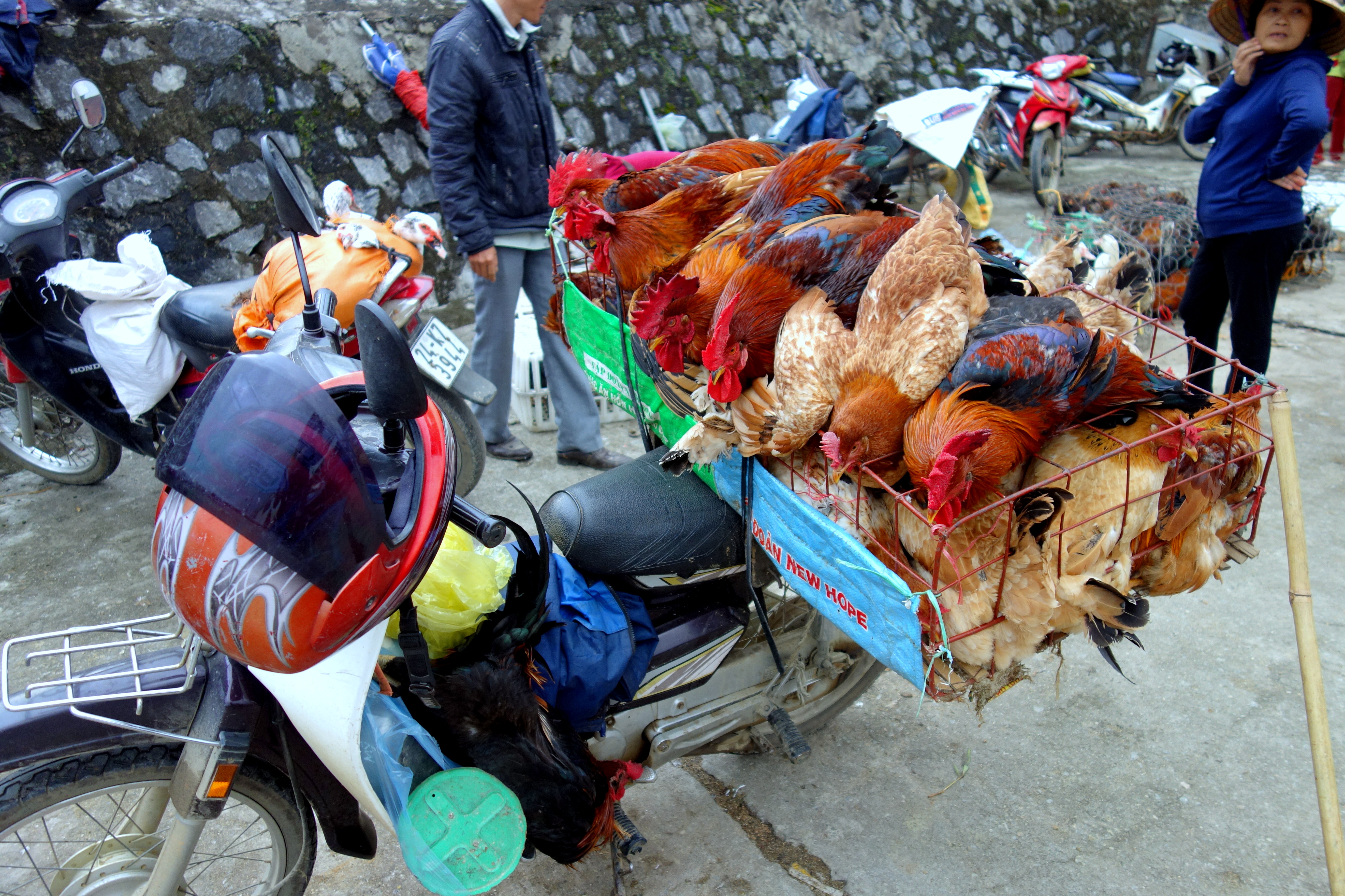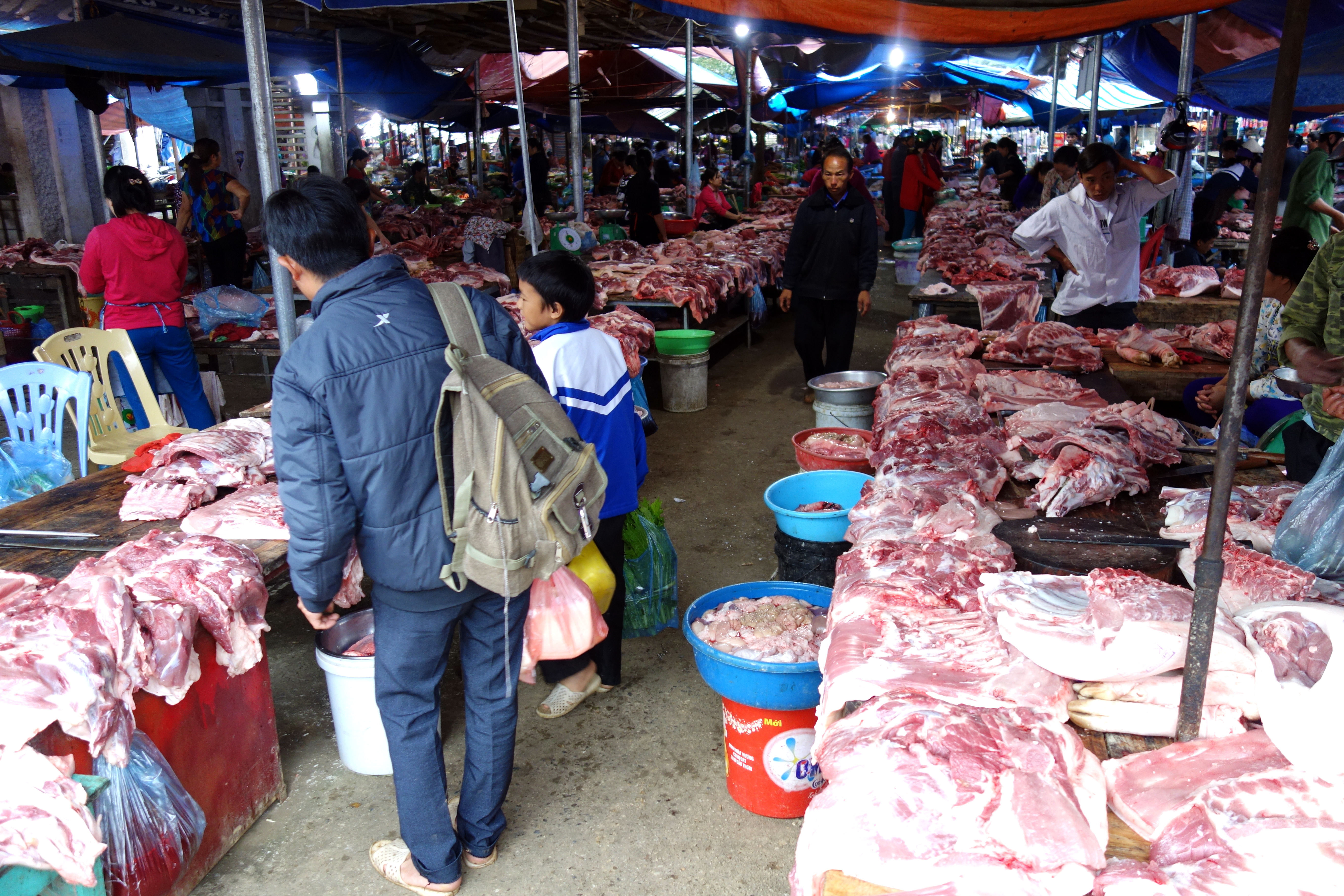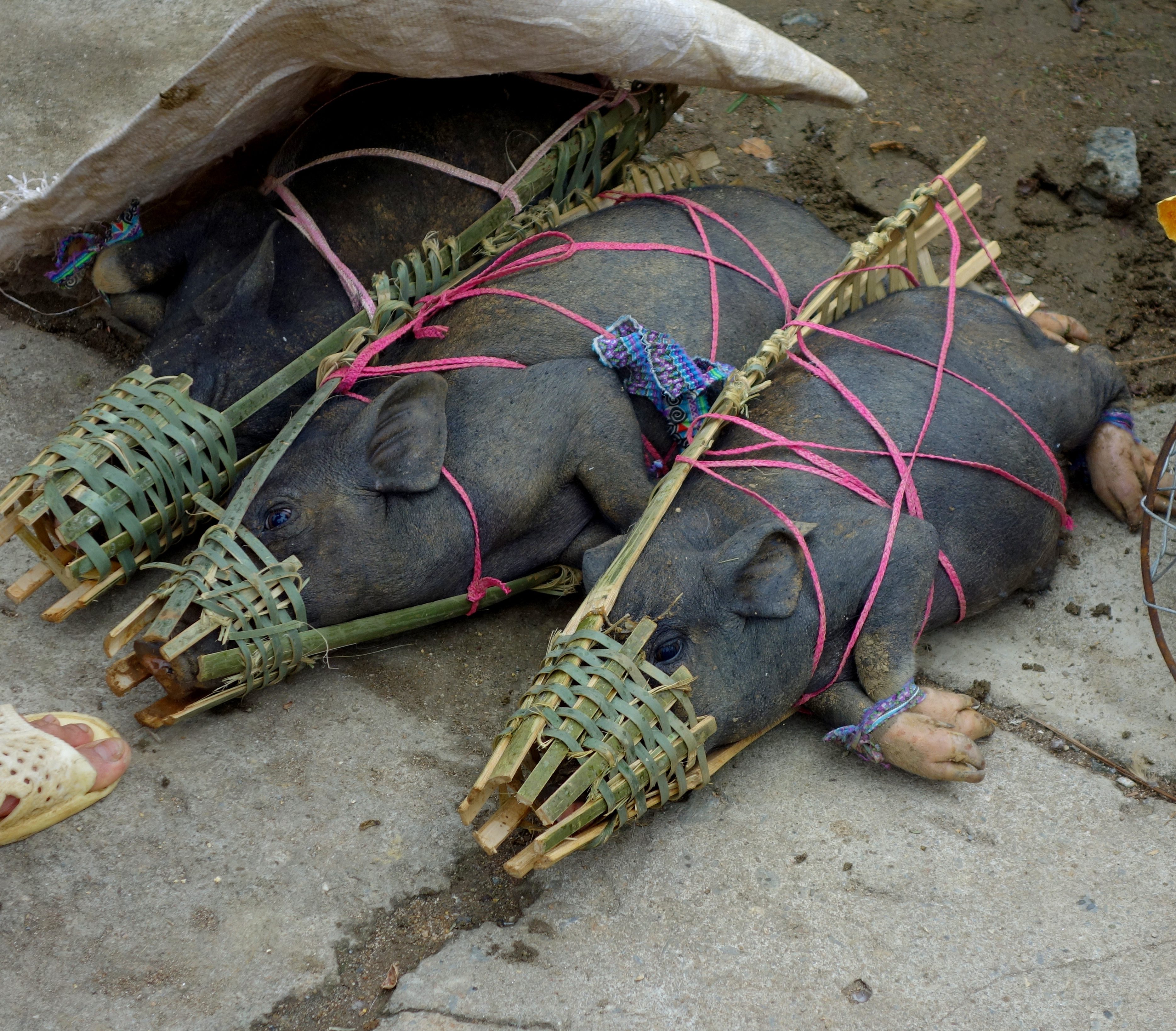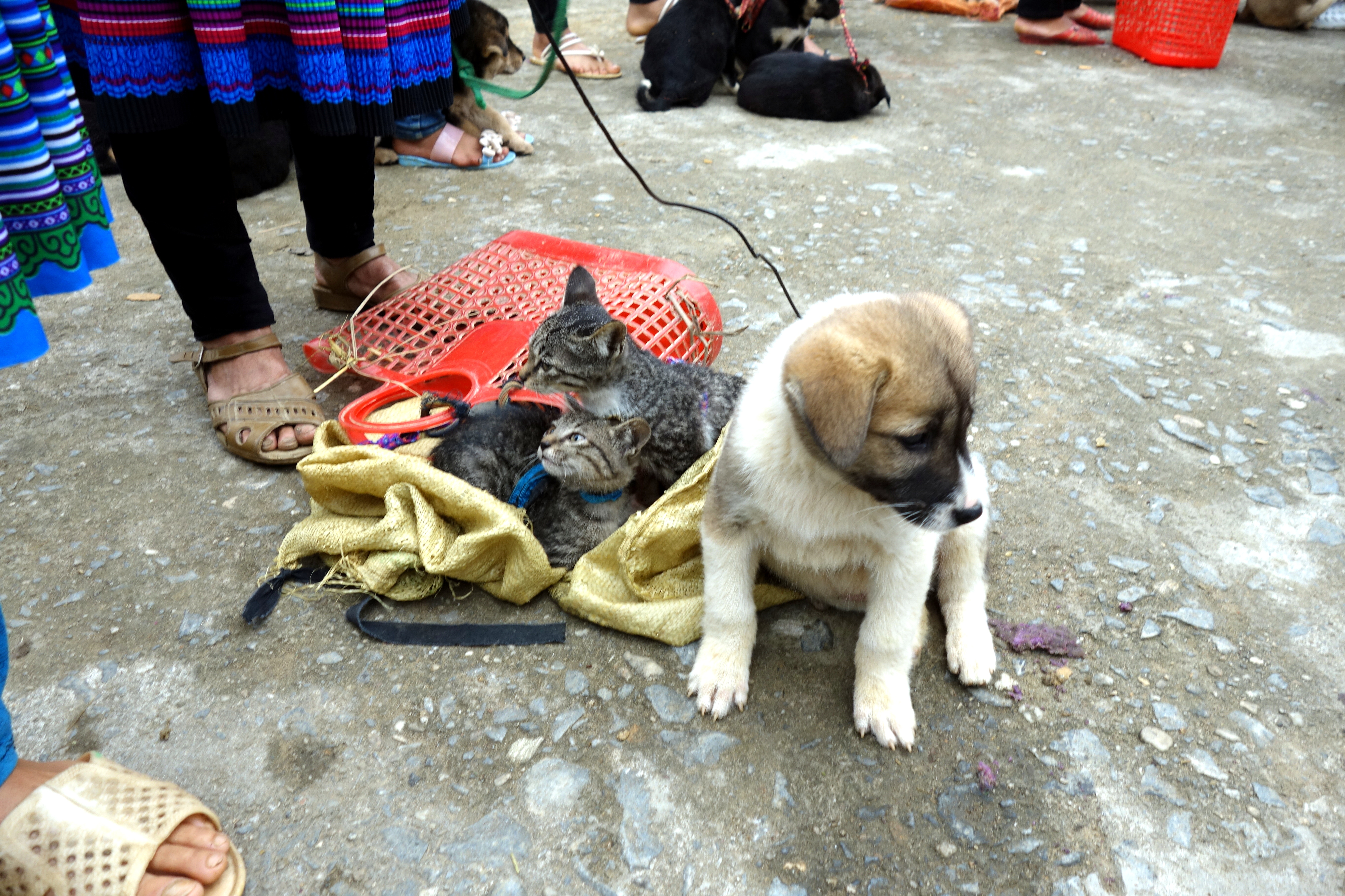 Le marché des animaux était vraiment dur à regarder, les animaux sont en piteux état. Beaucoup de chiots, très faibles, ne tenant pas sur leurs pattes sont tirés à droit et à gauche. Les cochons sont mis dans des sacs et tenus par les pattes. Seuls les buffalos semblent plutôt en forme !