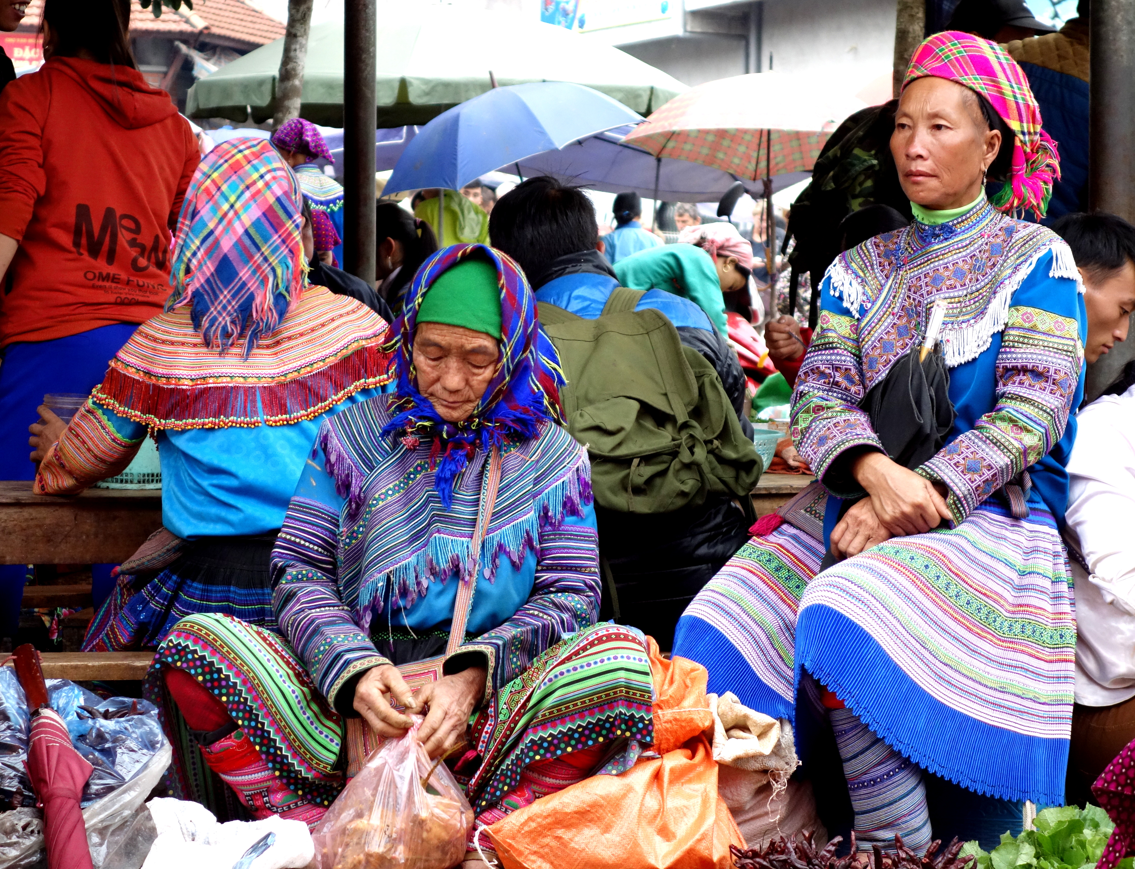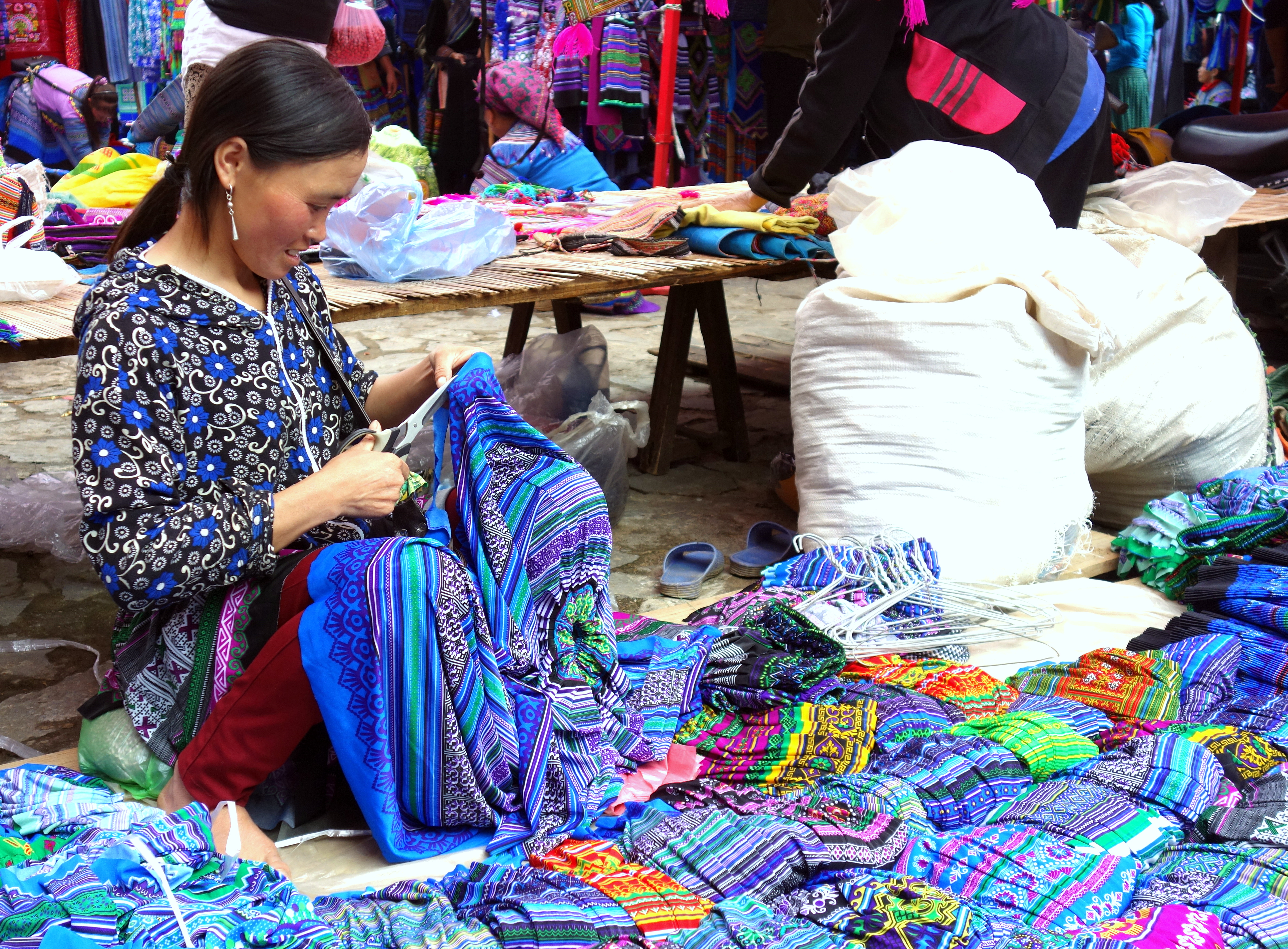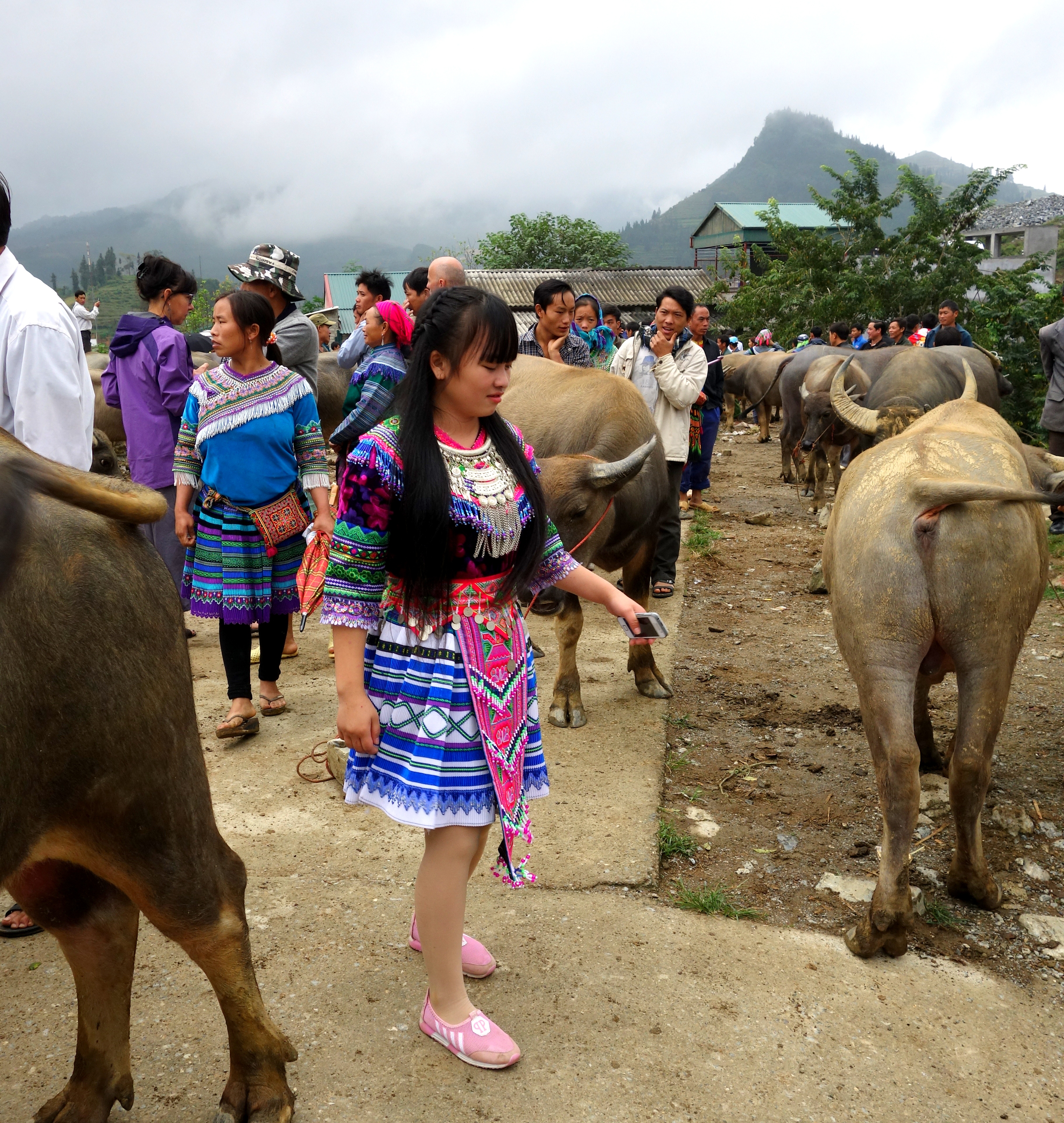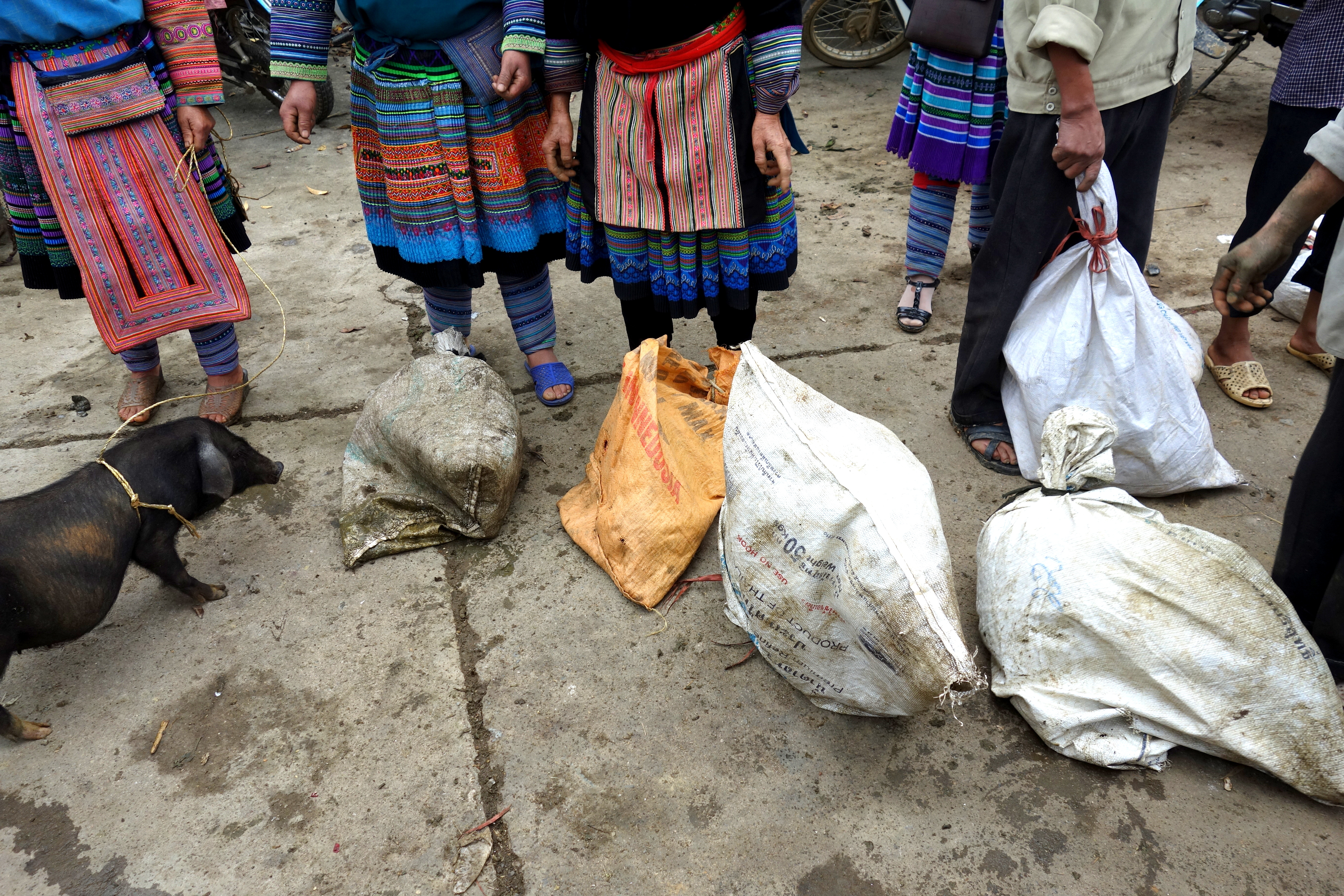 Je resterai 6heures a contempler toutes ces femmes, à me sentir gênée de les prendre en photos et à ressortir mon appareil 3 minutes après l’avoir rangé… Je suis partagée entre 2 sentiments contradictoires, celui de vouloir immortaliser ces instants et de vouloir respecter leurs traditions et de les respecter tout simplement. J’ai quand même pris énormément de clichés, demandant régulièrement aux femmes si je pouvais les prendre (bon, j’obtenais souvent des “non” donc j’ai pas beaucoup de photos de face…). Voici un aperçu de ce que vous pourrez vivre au marché de Bac Ha :