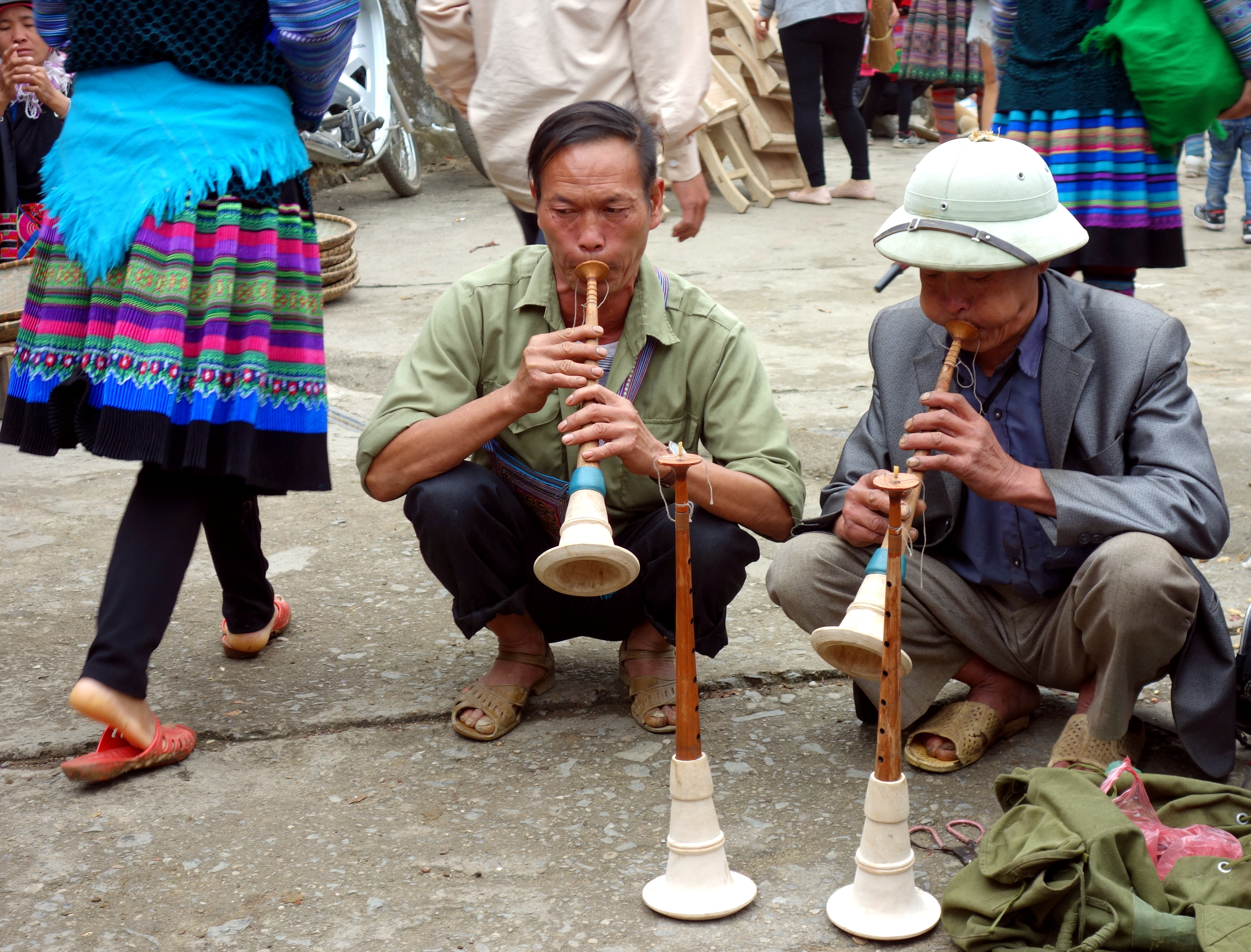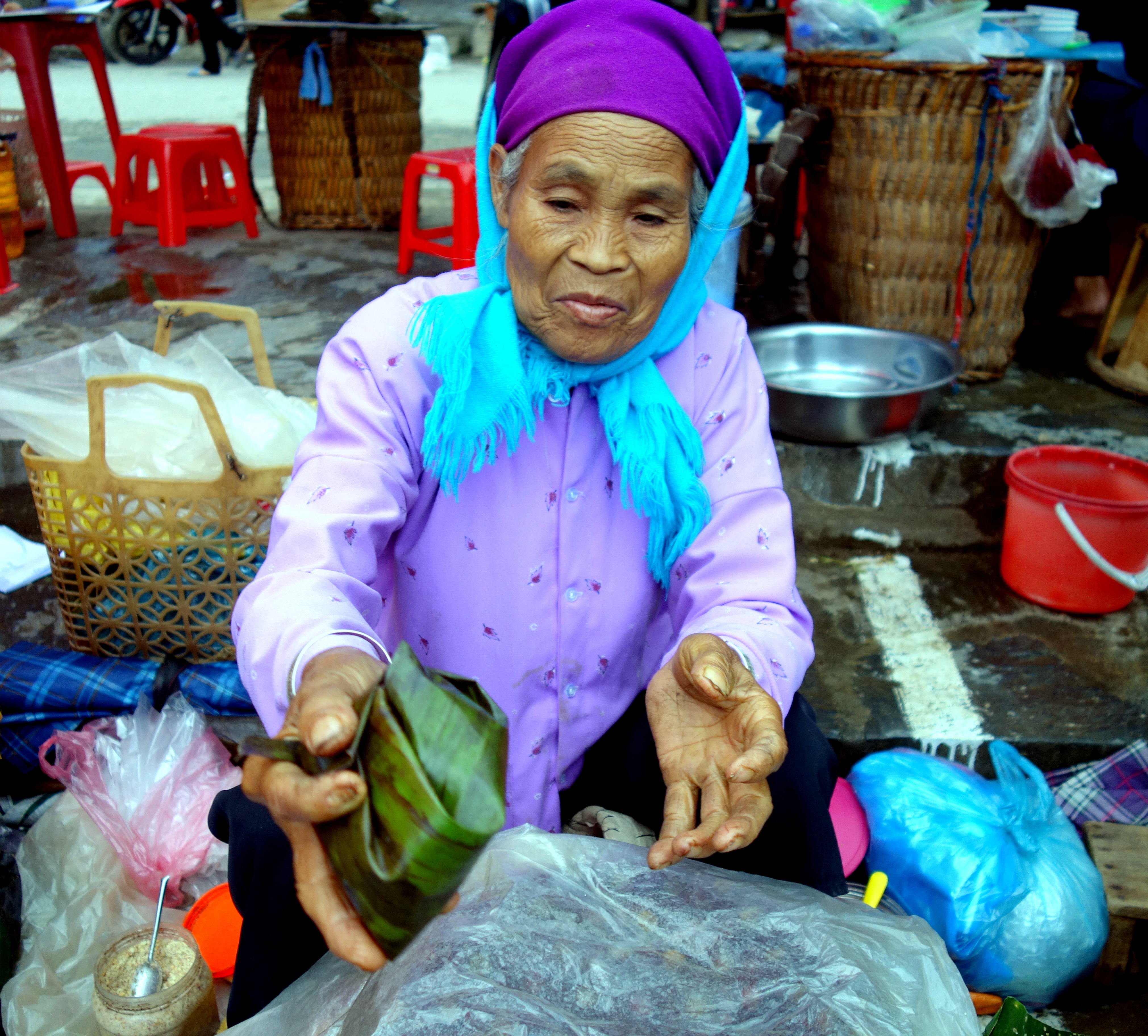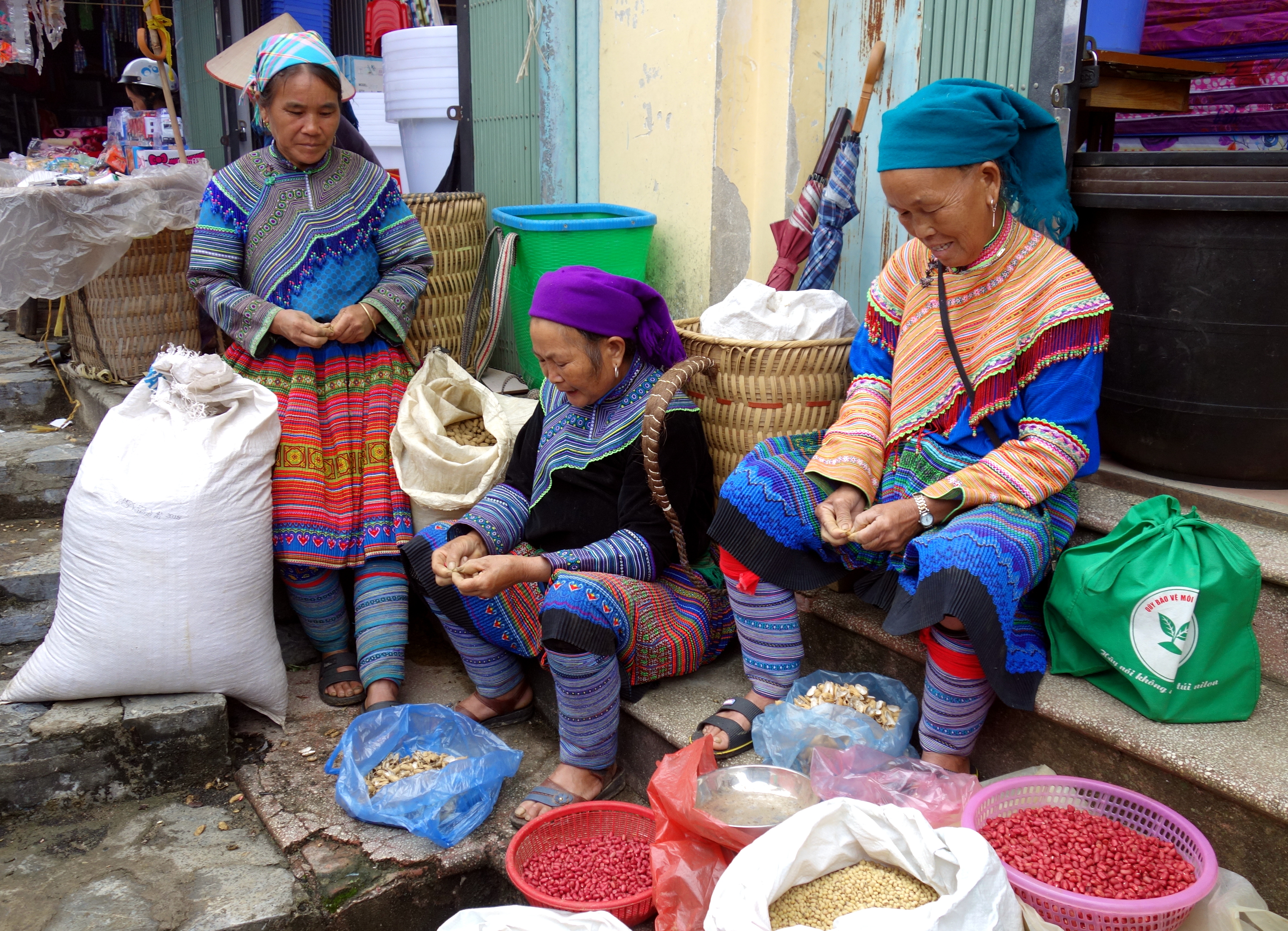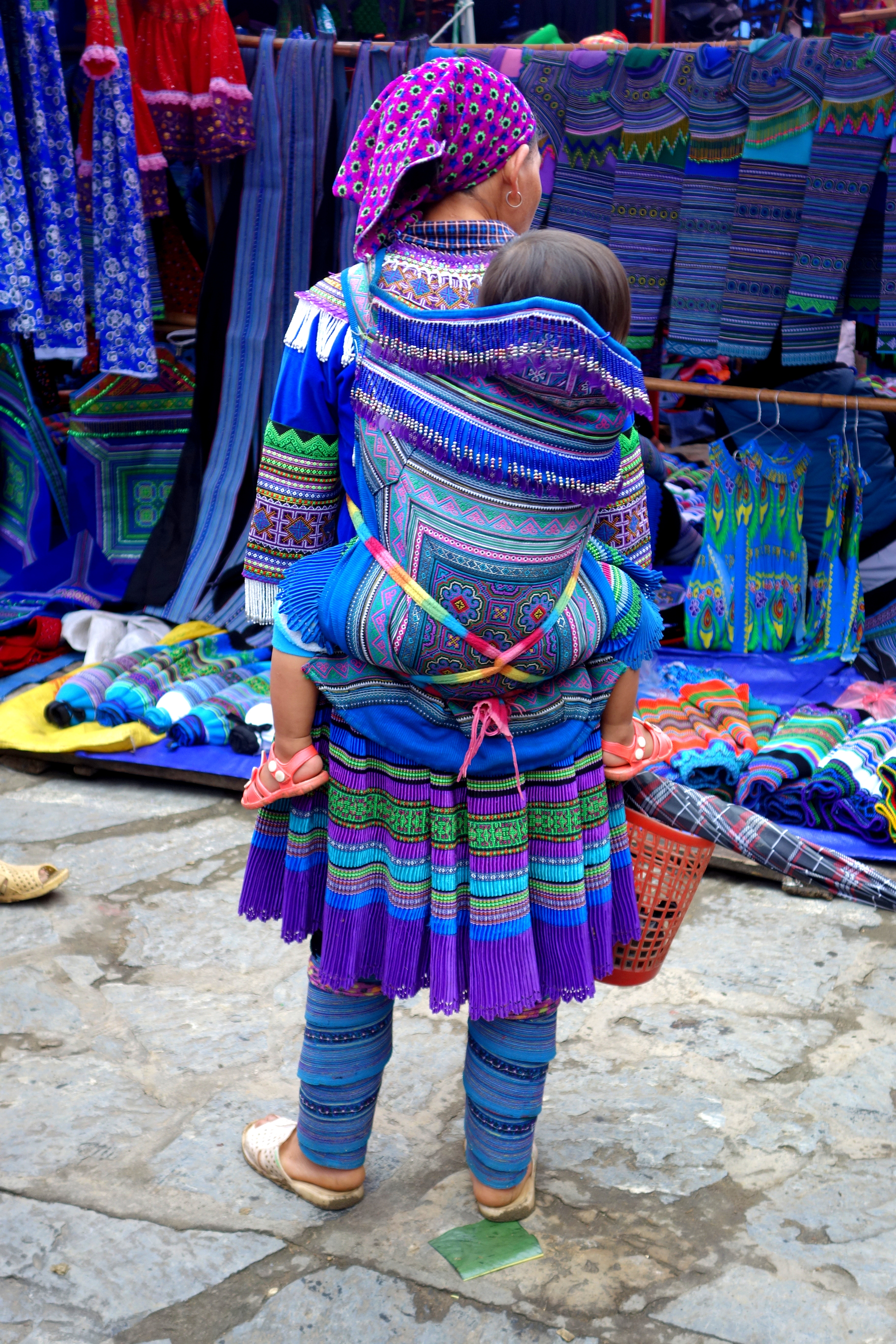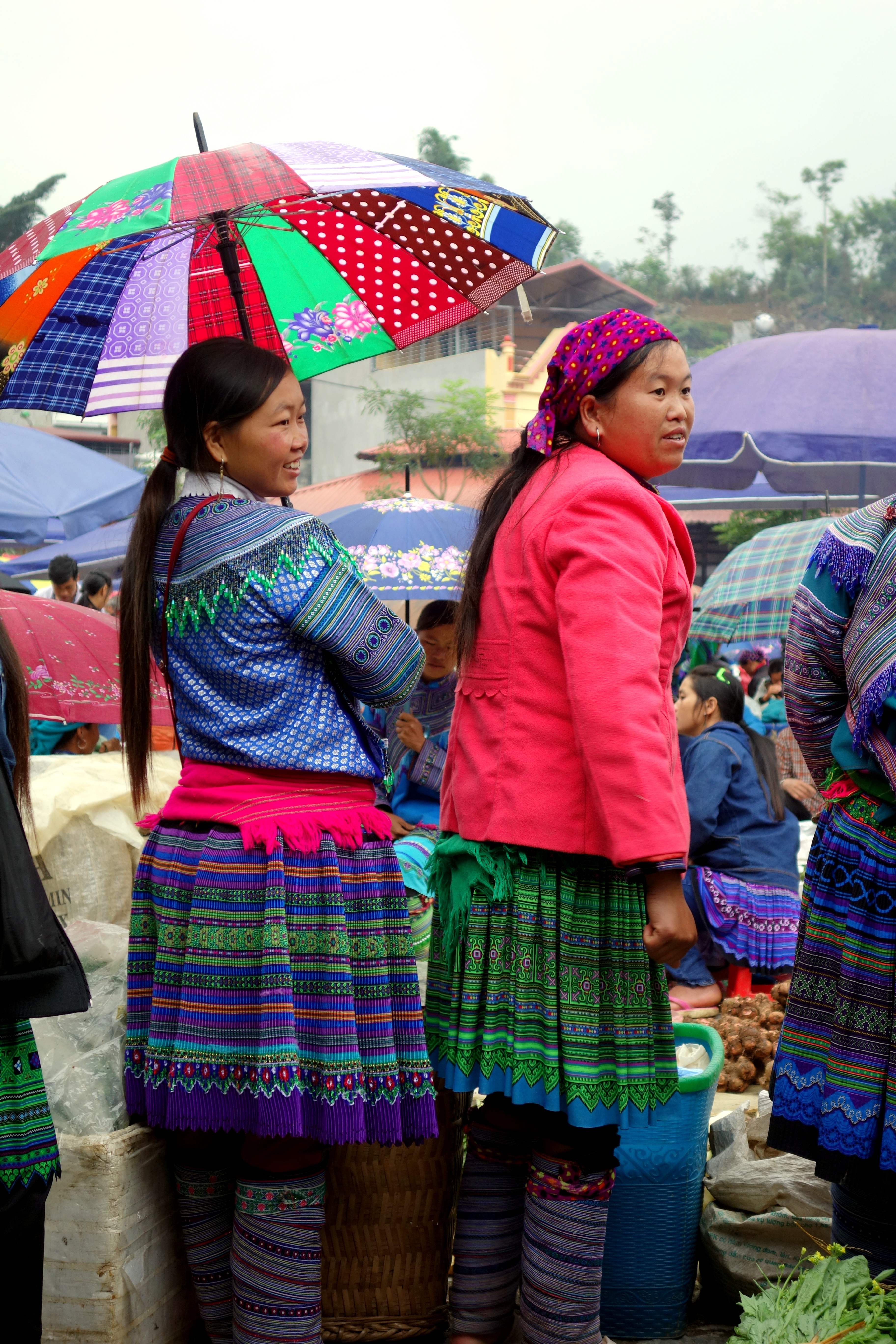 Je resterai 6heures a contempler toutes ces femmes, à me sentir gênée de les prendre en photos et à ressortir mon appareil 3 minutes après l’avoir rangé… Je suis partagée entre 2 sentiments contradictoires, celui de vouloir immortaliser ces instants et de vouloir respecter leurs traditions et de les respecter tout simplement. J’ai quand même pris énormément de clichés, demandant régulièrement aux femmes si je pouvais les prendre (bon, j’obtenais souvent des “non” donc j’ai pas beaucoup de photos de face…). Voici un aperçu de ce que vous pourrez vivre au marché de Bac Ha :