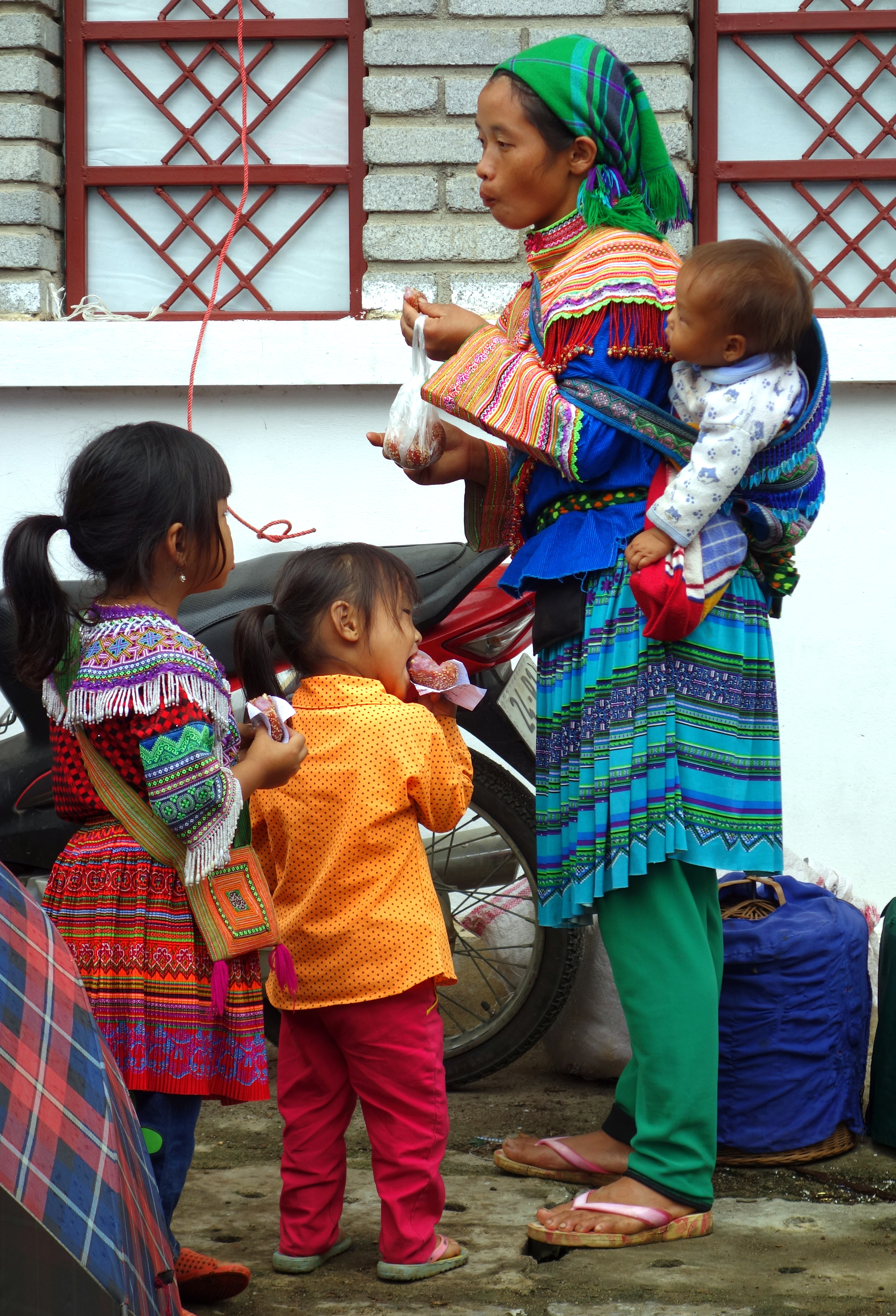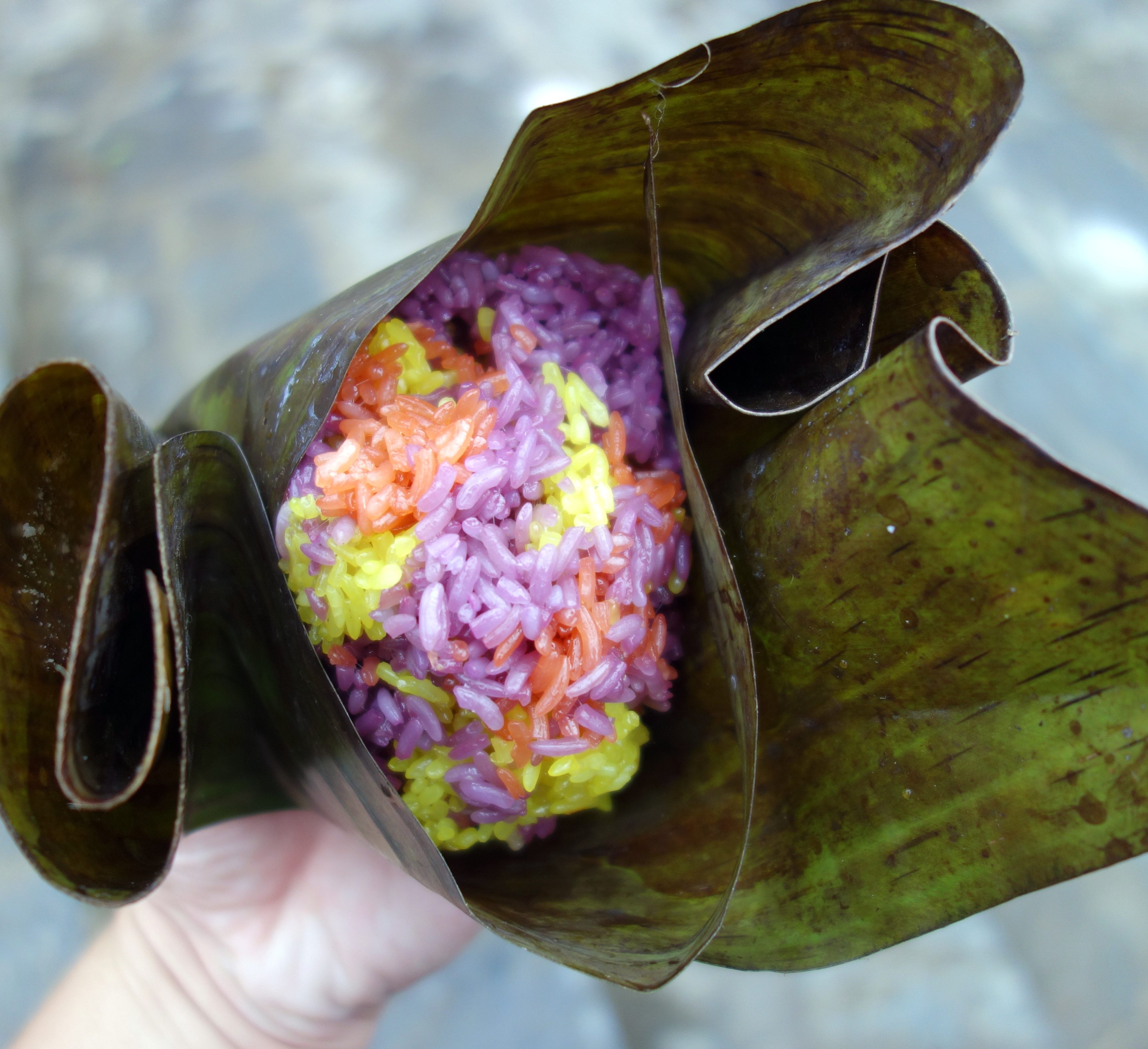 J’aperçois les premières tenues traditionnelles. Je mange un Banh Mi puis du riz collant de 5 couleurs (xoi nam mau).