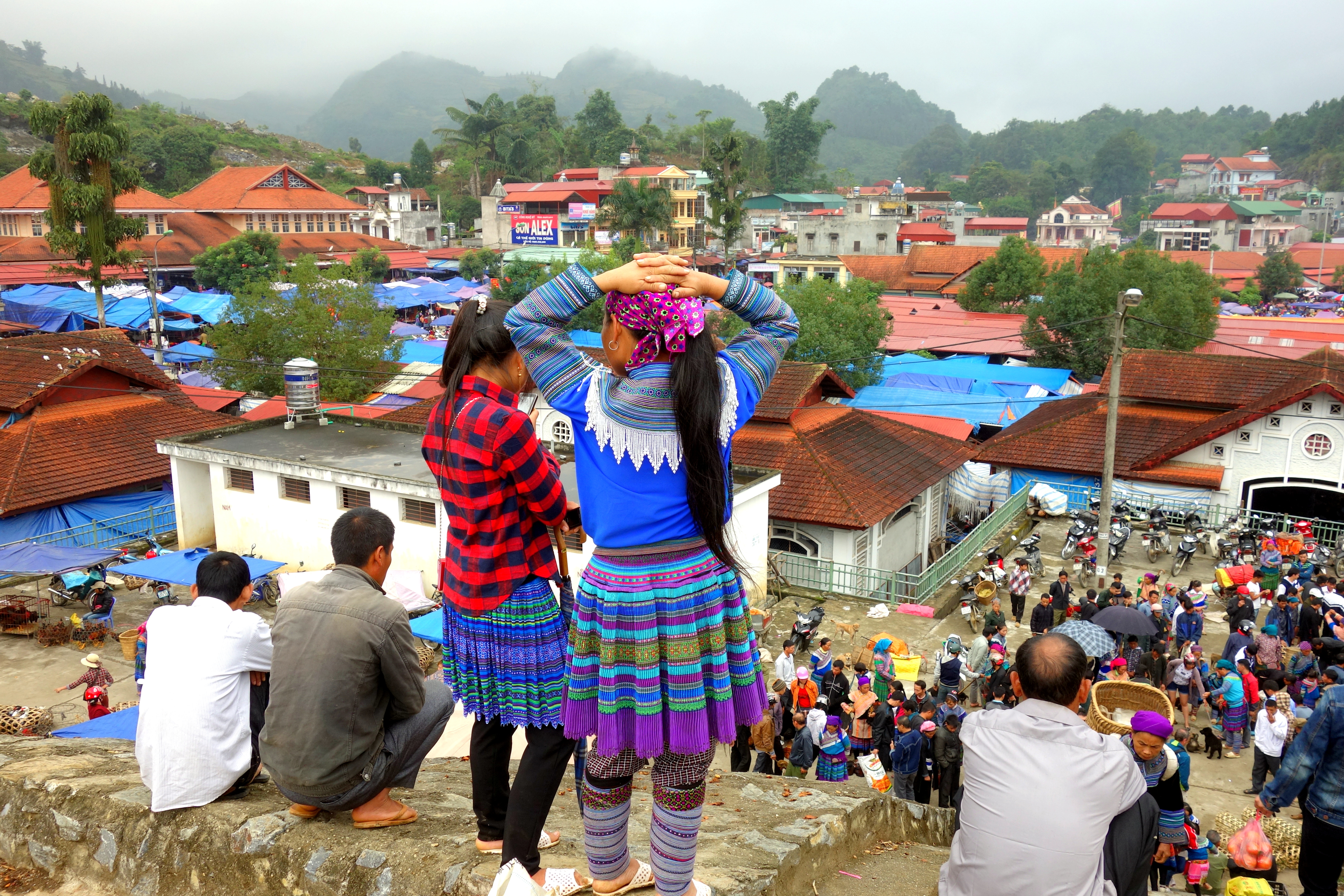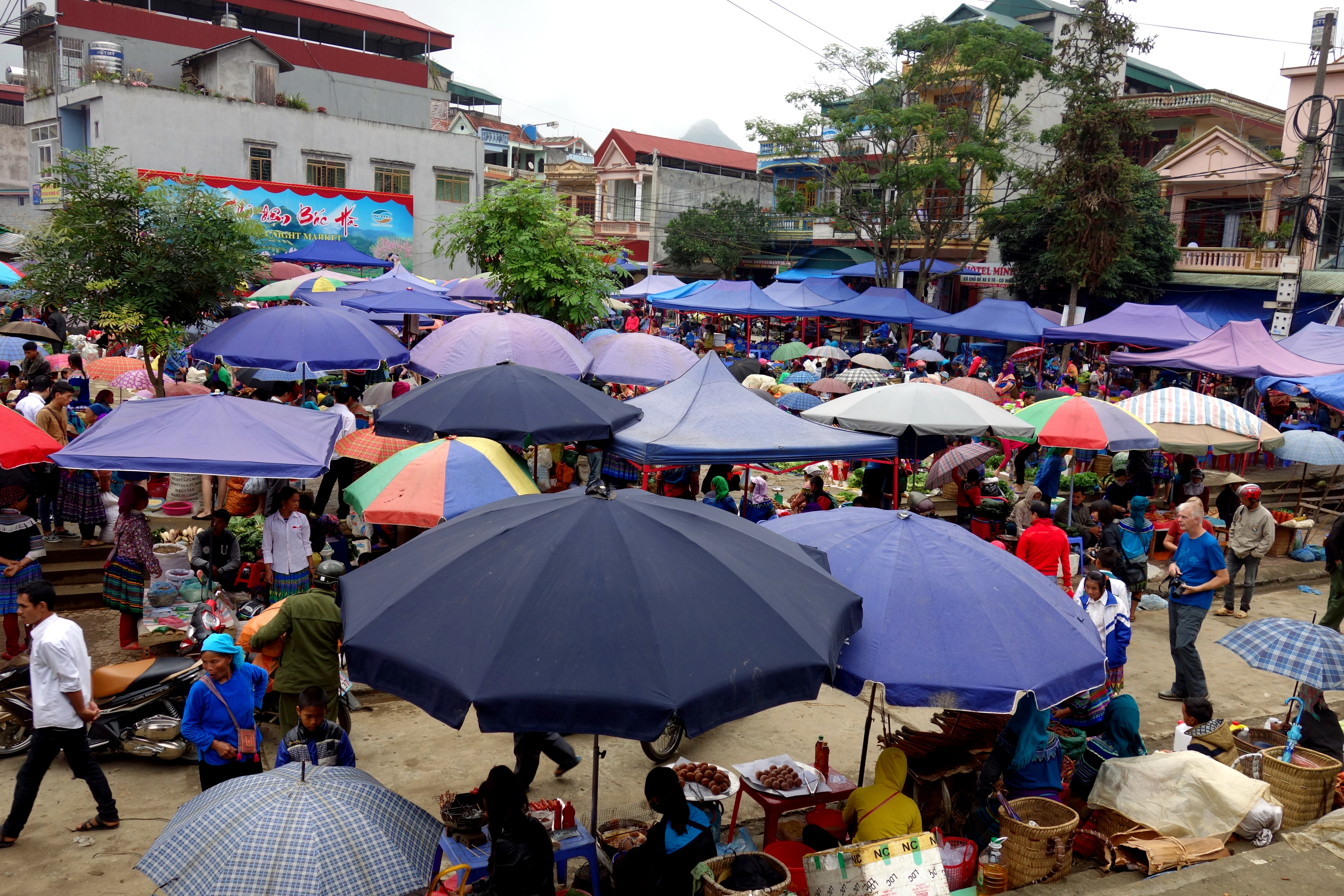 A seulement 2h de Lao Cai et 3h de Sapa, c’est un lieu qui est devenu touristique mais seulement pour les touristes ! C’est à dire que les locaux n’ont pas changé leur façon de vivre pour autant. Le marché n’est pas du tout à l’attention des touristes et les locaux ne sont pas spécialement ravis de nous voir…