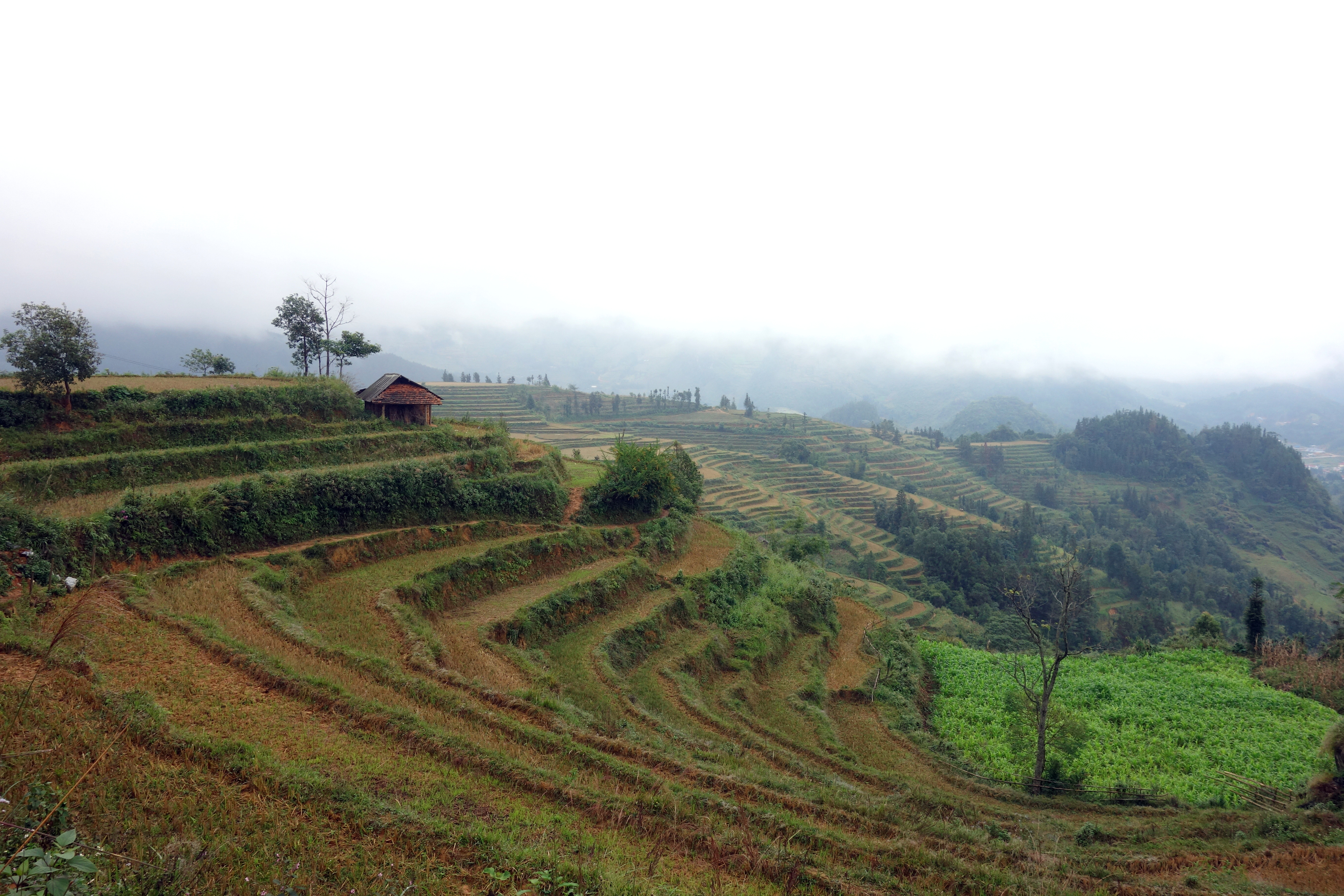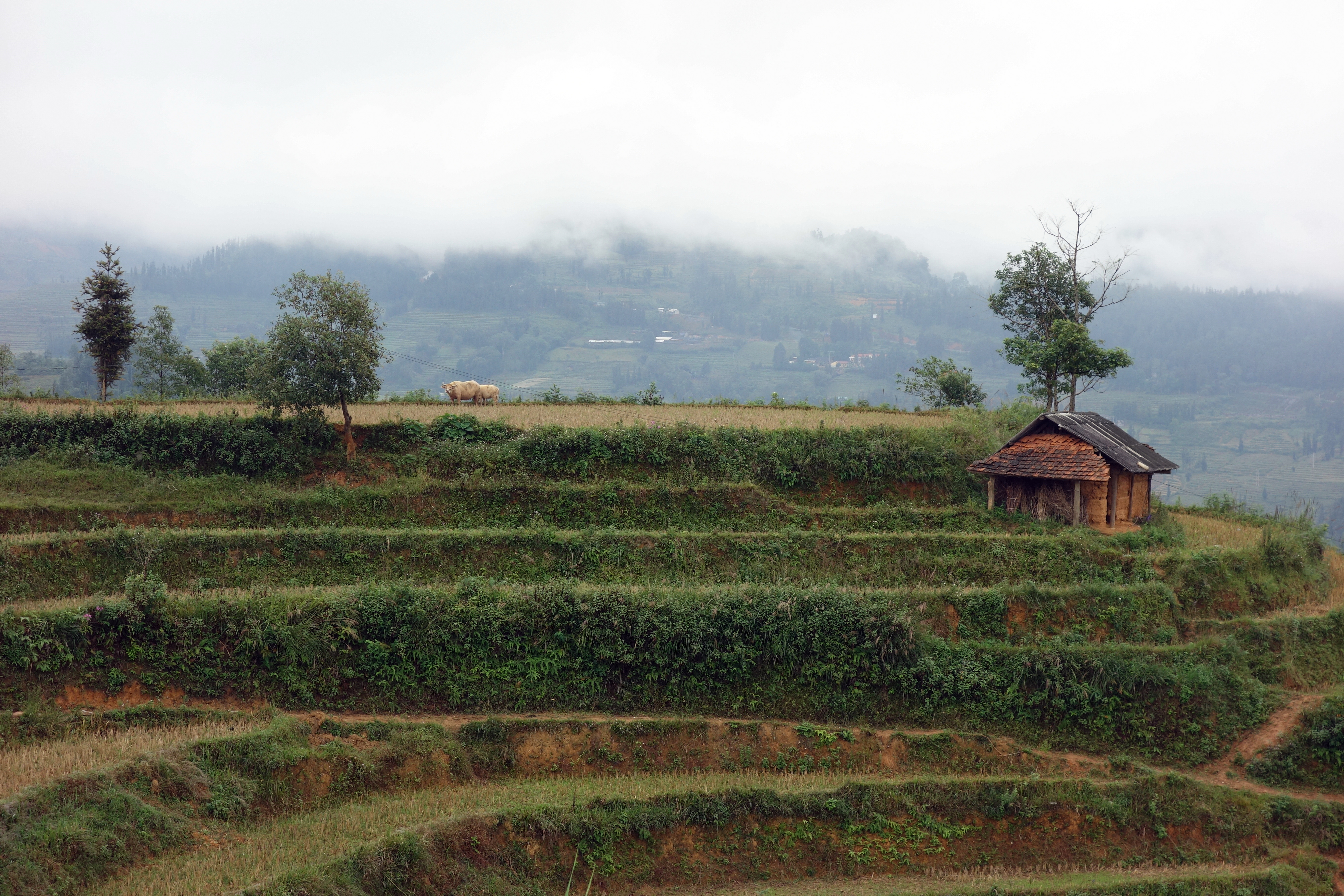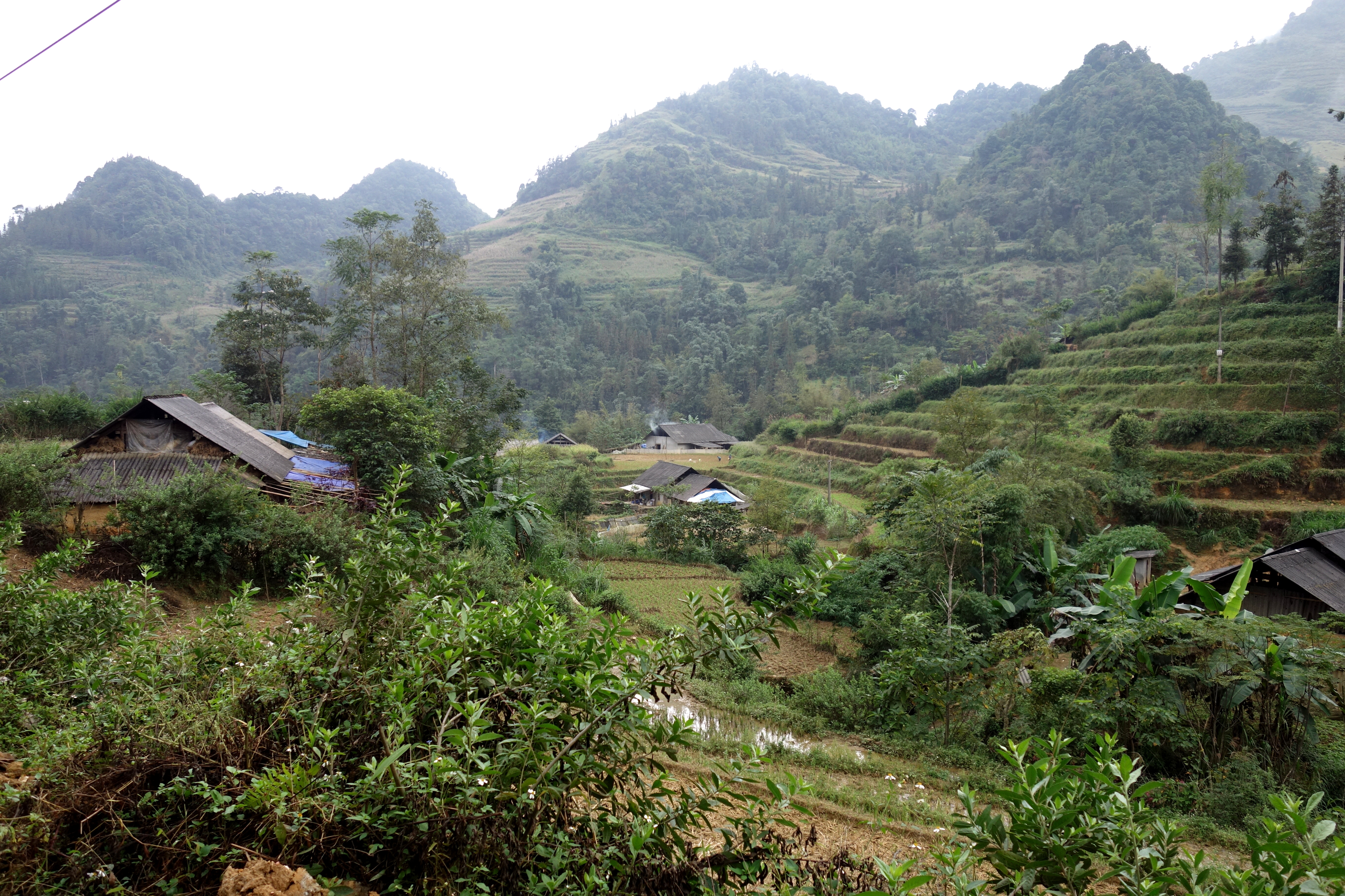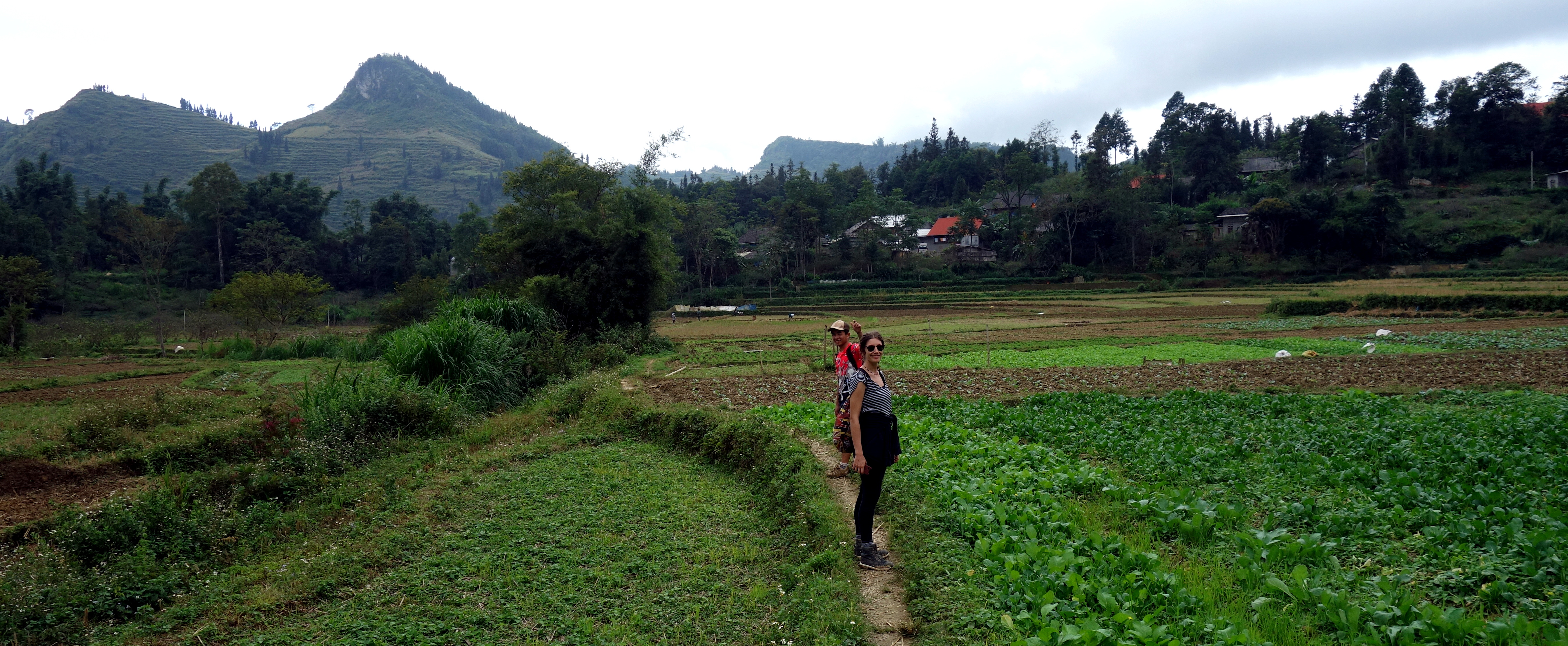 La balade du matin est top!! On grimpe, on grimpe, j’ai mal aux jambes mais les paysages sont superbes. On discute tout le long du chemin, Becky apprend le Vietnamien alors on parle tous les trois en Anglais et Vietnamien. C’est marrant! Sur le chemin on ne croise aucun autre touriste, on croise des personnes des minorités. Certains sont ravis de nous voir, comme ce papy qui nous serre la main et parle dans un dialecte que notre guide ne comprend pas. On ne saura pas ce qu’il nous a dit mais son sourire bien qu’édenté était bienveillant. D’autres sont plus méfiants, probablement s’attendent-ils à ce qu’on les prenne en photo !