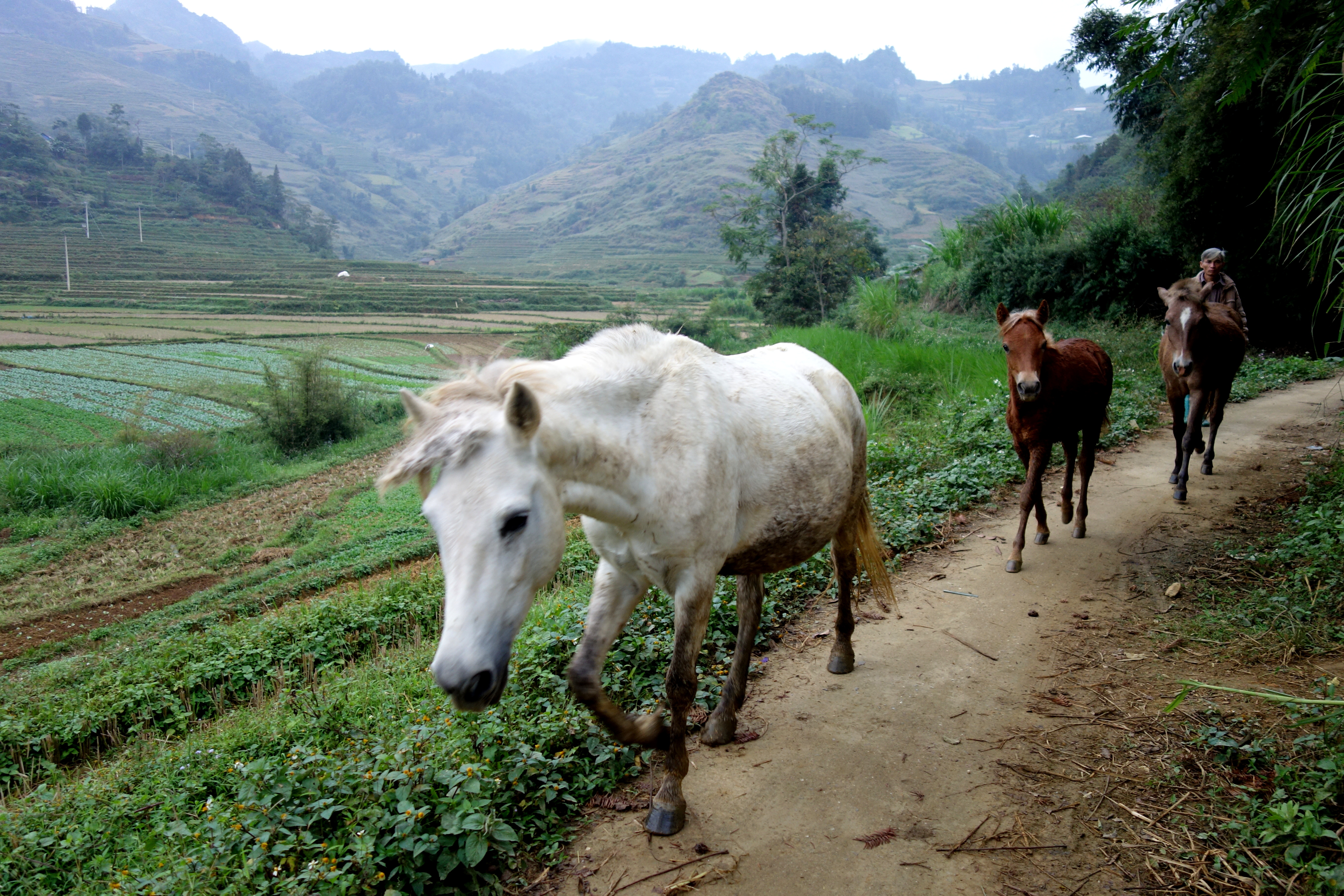 Voyant qu’on prenait beaucoup de retard je demande au chauffeur de me poser sur la route, à Coc Xam, à l’intersection avec le chemin pour Bac Ha. Je me dis que je trouverai bien une solution, au choix :