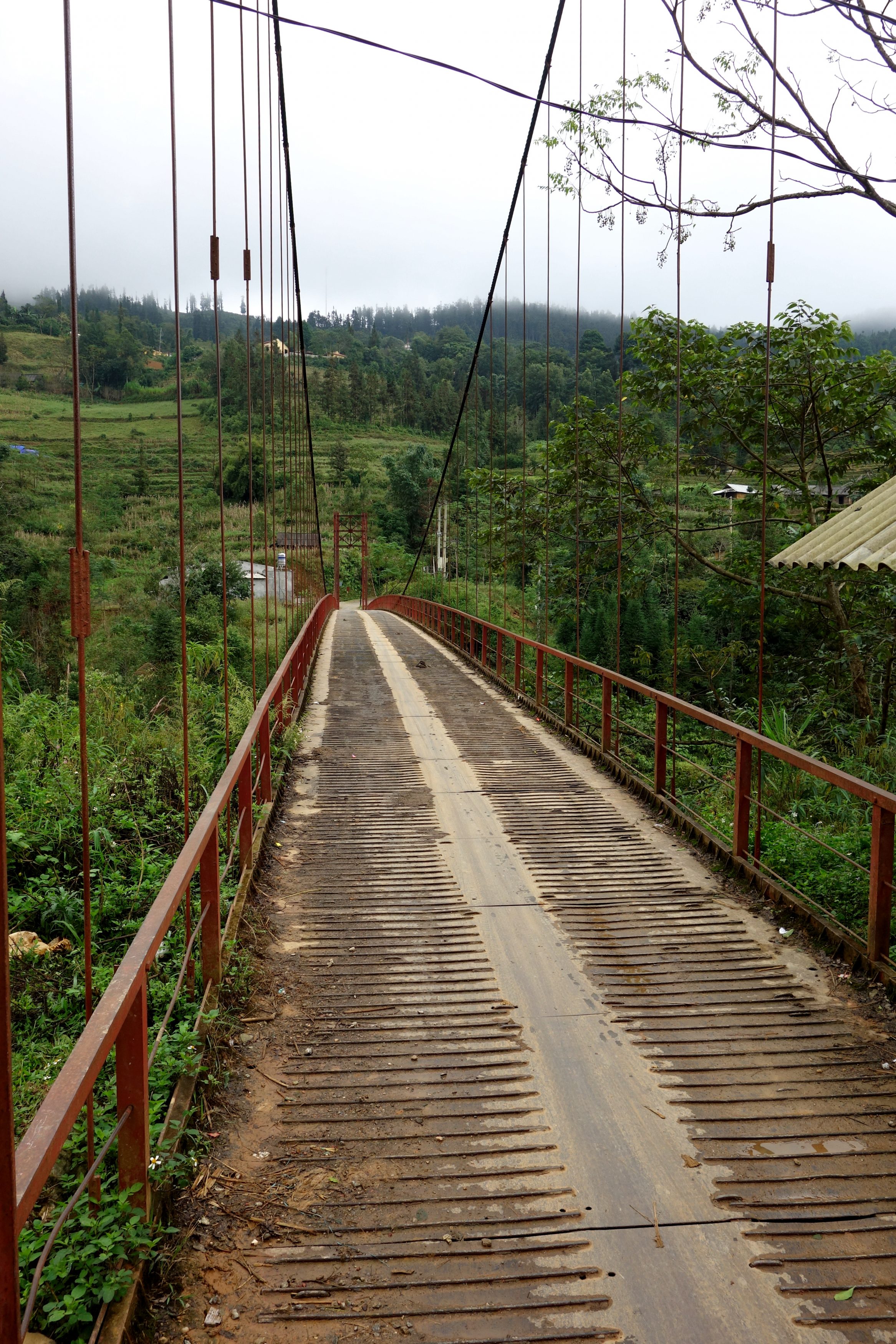 L’après midi est globalement moins sympa que le matin, on marche sur des routes, paysages bof et la fatigue se fait ressentir. On traverse plusieurs villages, le guide nous propose de visiter les maisons mais on refuse. C’est du voyeurisme, ces gens ne sont même pas payés pour que l’on rentre chez eux! On traverse des ponts et des rizières, c’est tout de même pas trop mal 😉
