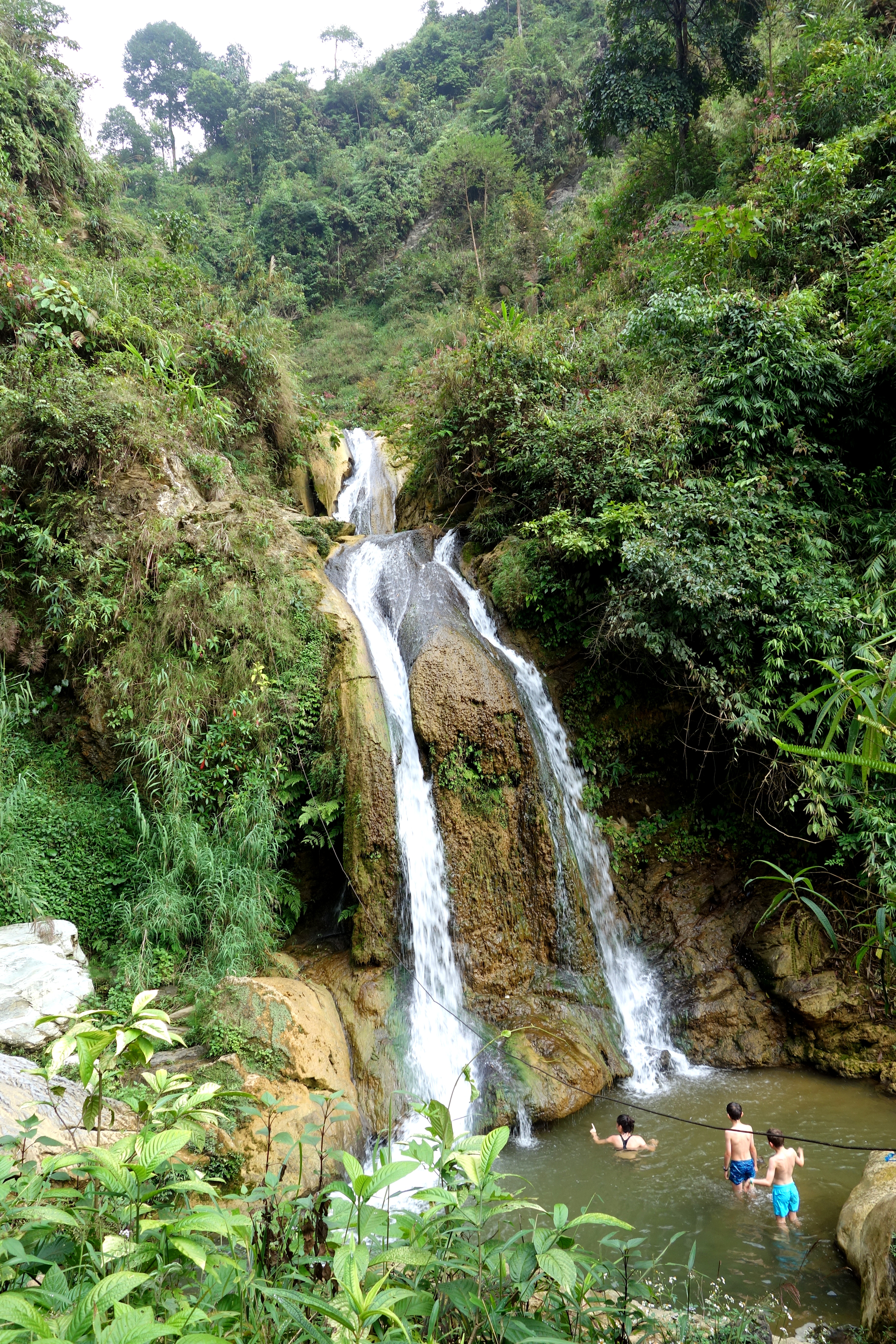 La cascade est très sympa ! On escalade pour aller jusqu’en haut, il y a plusieurs “étages”. Il ne fait pas assez chaud pour se baigner, dommage ! En redescendant, ça glisse beaucoup alors on prend notre temps, quelques dérapages plus loin on est en bas et en un seul morceau !!