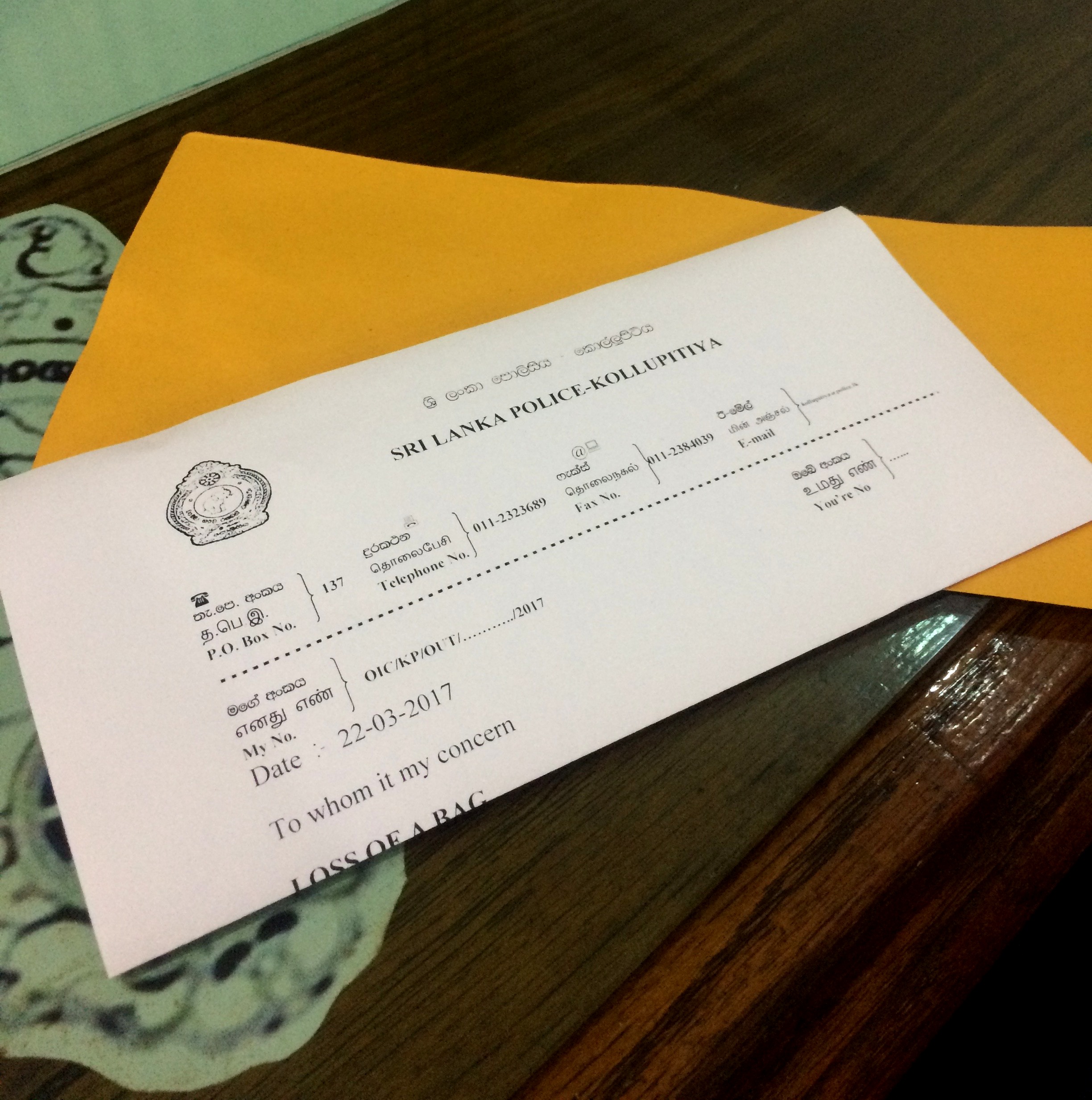 C’est notre dernière soirée, on a encore plein de choses à faire (échange de bons plans, partage des photos, …). Sur le chemin du retour, on chante notre chanson ou devrais-je dire notre hymne qui nous suit depuis le Laos : Riptide de Vance Joy. On est en pleine analyse des paroles (qui, il faut l’avouer, ne veulent pas dire grand chose !). On est à 500 mètres de notre hôtel, sur le trottoir qui longe une deux fois deux voies bien éclairée. Un tuktuk s’approche de nous. Je m’apprête à dire “no thank you” comme je le fais à peu près 500 fois par jour ! Mais avant que je ne comprenne ce qu’il se passe Elisa est déjà partie en courant et en hurlant. Je cours aussi sans comprendre. Au bout de la rue, deux gardes surveillent un restaurant. Ils nous avaient saluées quelques minutes auparavant et nous voient arriver affolées. Ils cherchent à nous aider mais quand on leur dit qu’un chauffeur de tuktuk vient d’arracher le sac à main d’Élisa et de s’enfuir avec, ils sont bien désolés mais ne peuvent rien faire. Un tuktuk rouge à Colombo c’est un peu comme un taxi jaune à New York, il y en a des milliers de partout… Tous les passants s’arrêtent et cherchent à nous aider. Certains nous proposent de l’argent pour qu’on puisse prendre un tuktuk pour aller à la police, d’autres nous accompagnent, quelqu’un a arrêté un tuktuk (qui nous fera la course gratuite d’ailleurs !) et en moins de 5 minutes nous sommes à la police. C’est là que l’aventure commence !
