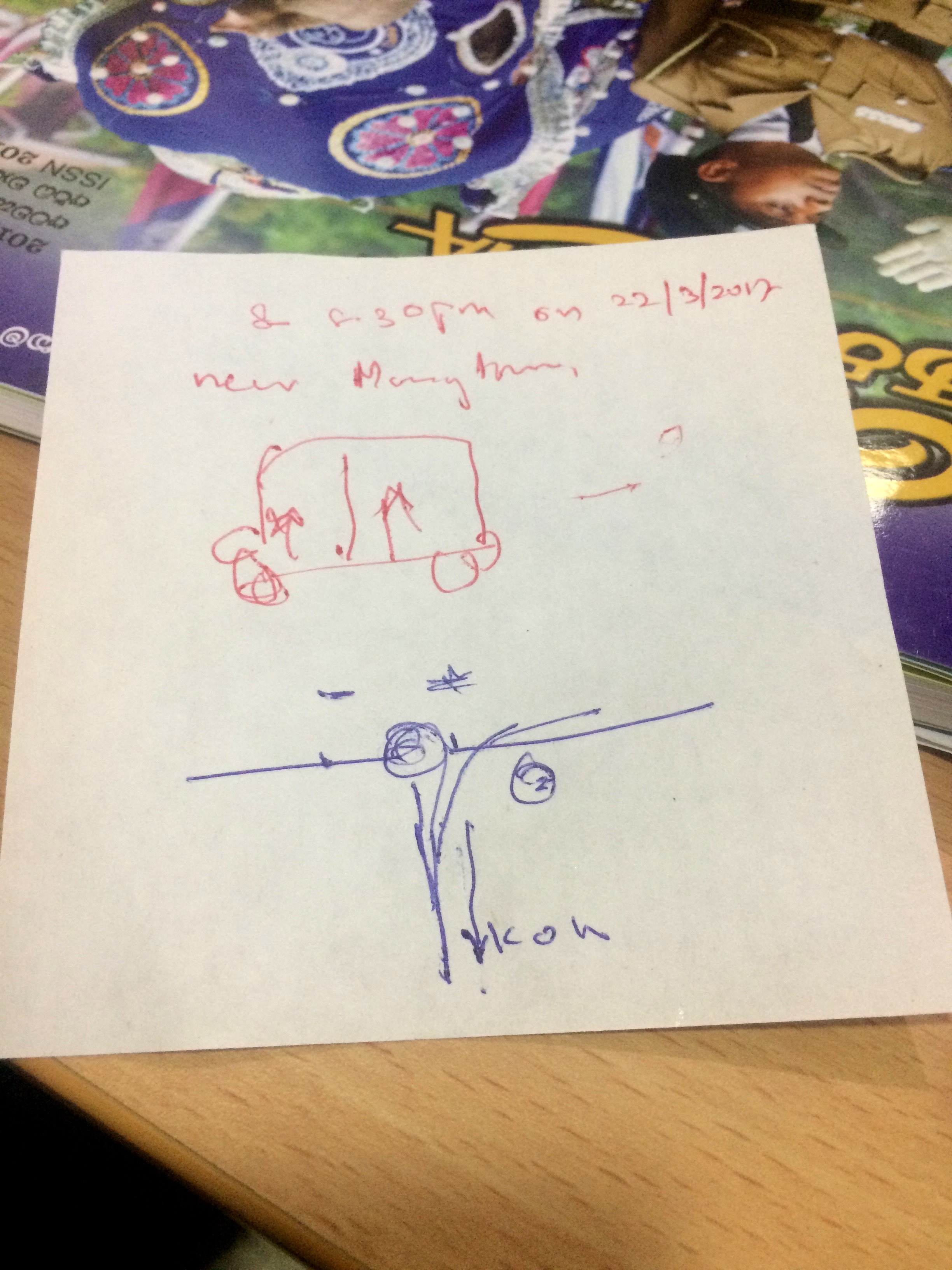 Les policiers nous proposent de nous asseoir, nous demandent d’où l’on vient, plus intrigués que vraiment intéressés par notre souci. On changera 6 fois de sièges en 5 minutes ! Il nous font passer d’un bureau à l’autre sans aucune raison. “Take a seat” et “where are you from?” semblent être les seuls mots qu’ils connaissent. On tente tant bien que mal d’expliquer pourquoi on est là mais le seul truc qu’ils retiennent est “red tuktuk“. Après nous avoir demandé 10 fois “quelle couleur le tuktuk ?” et qu’on réponde à chaque fois “rouge !” comme si ça allait changer quelque chose…