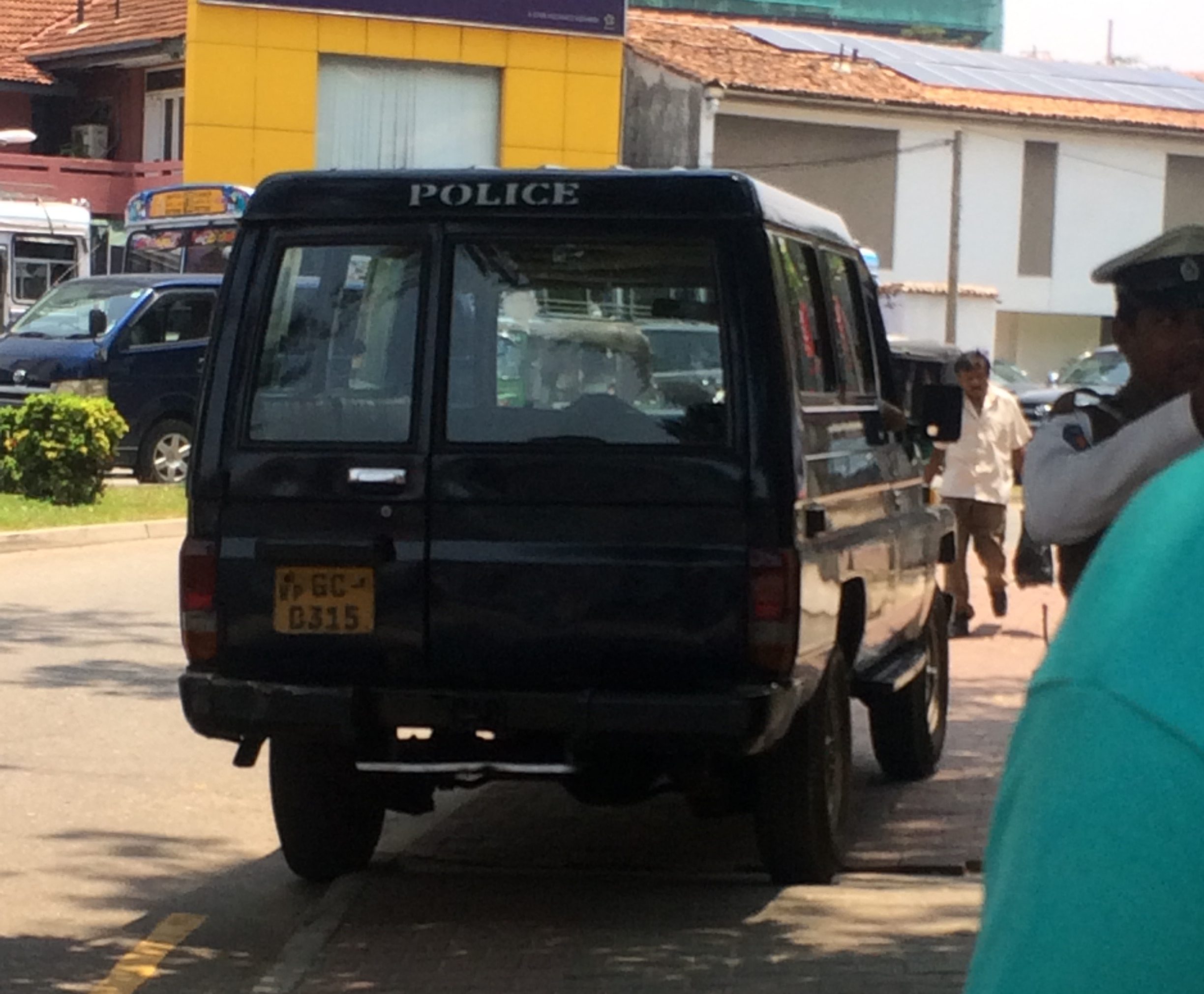 À la fin de nos 4 heures de déposition, les policiers souhaitent nous amener sur la scène du crime ! Nous voilà, dans un énorme 4×4 en plein centre de Colombo, accompagnées de 6 policiers armés jusqu’aux dents ! On a du mal à indiquer le lieu exact tellement la rue est animée et différente de la nuit. Les deux gardes du restaurant nous reconnaissent et confirment notre version. Les policiers cherchent les emplacements des caméras de surveillance qui pourraient avoir filmé la scène. Les passants nous regardent amusés : qu’est ce que ces deux petites touristes ont bien pu faire pour avoir une telle garde autour d’elles ! Après cela, ils nous déposent au centre commercial pour qu’Elisa puisse racheter un téléphone…