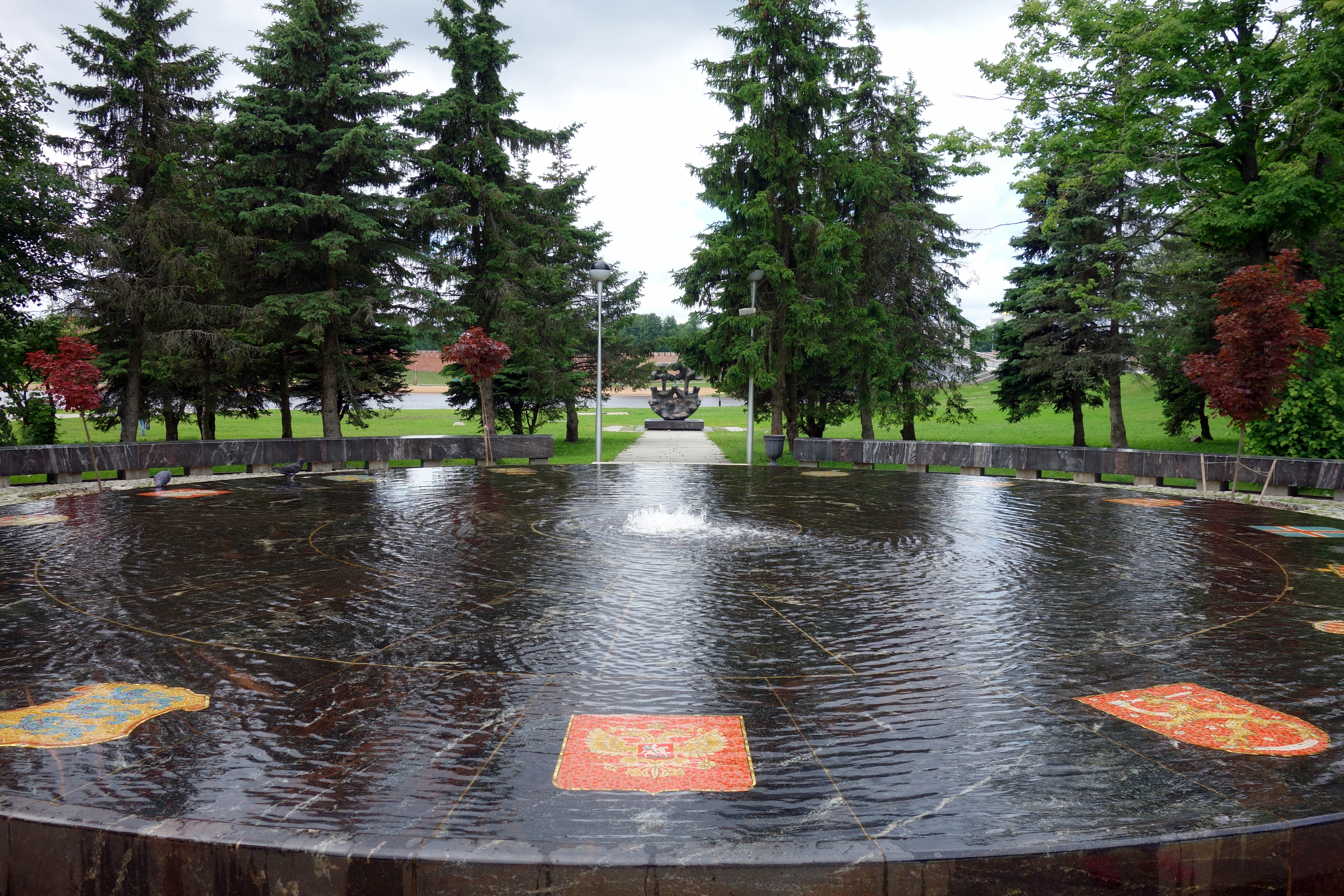 Je me promène tranquillement au milieu de la forteresse, il y a des églises, toujours, des monuments anciens, la statue du millénaire de Russie.