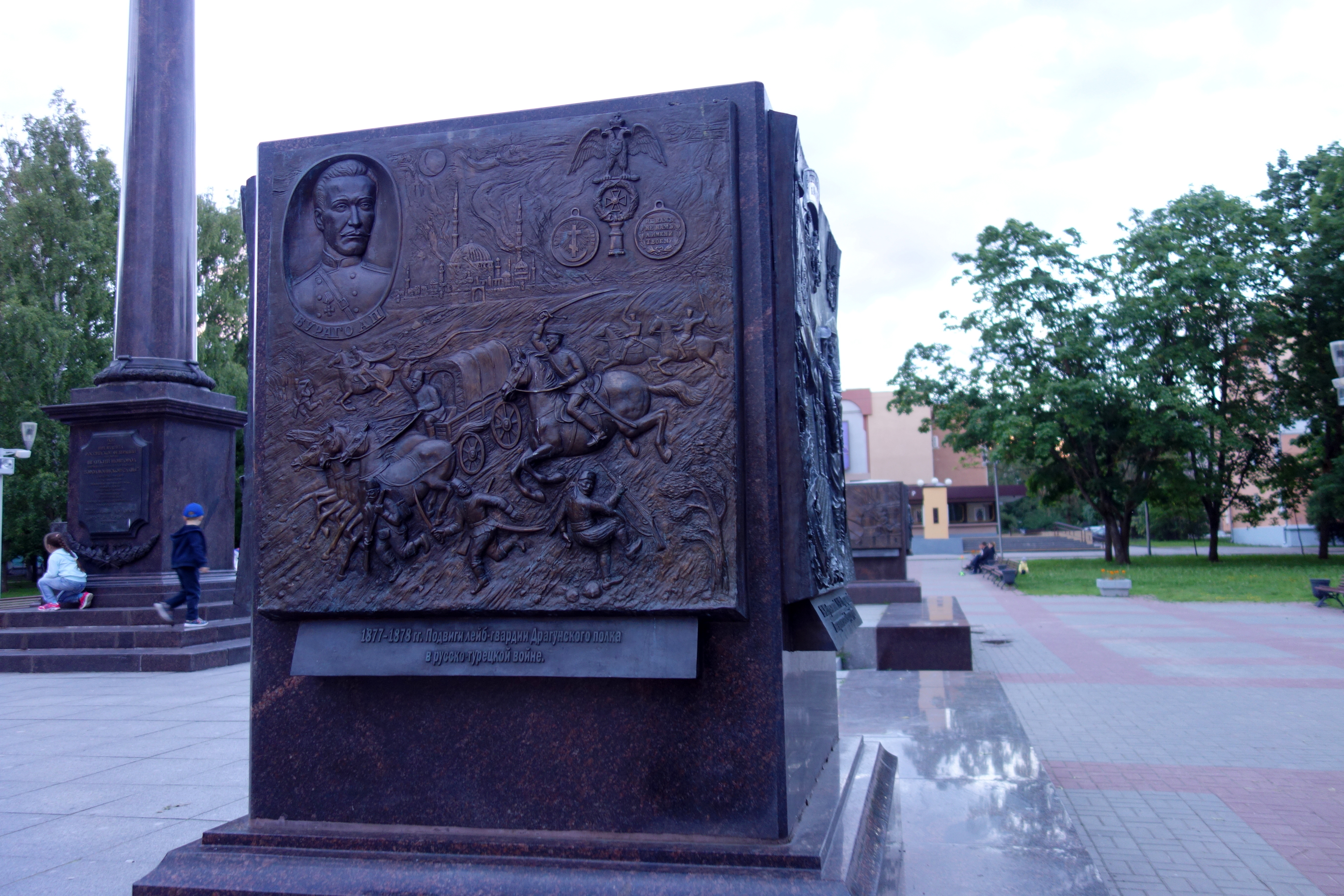 Je traverse de petites rues, j’aperçois une école primaire. Je suis dans le quartier marchand, Novgorod a été la capitale des échanges de la Hanse on peut encore voir l’ancienne place du marché et une statue représente l’ensemble des nations participant à ses échanges.