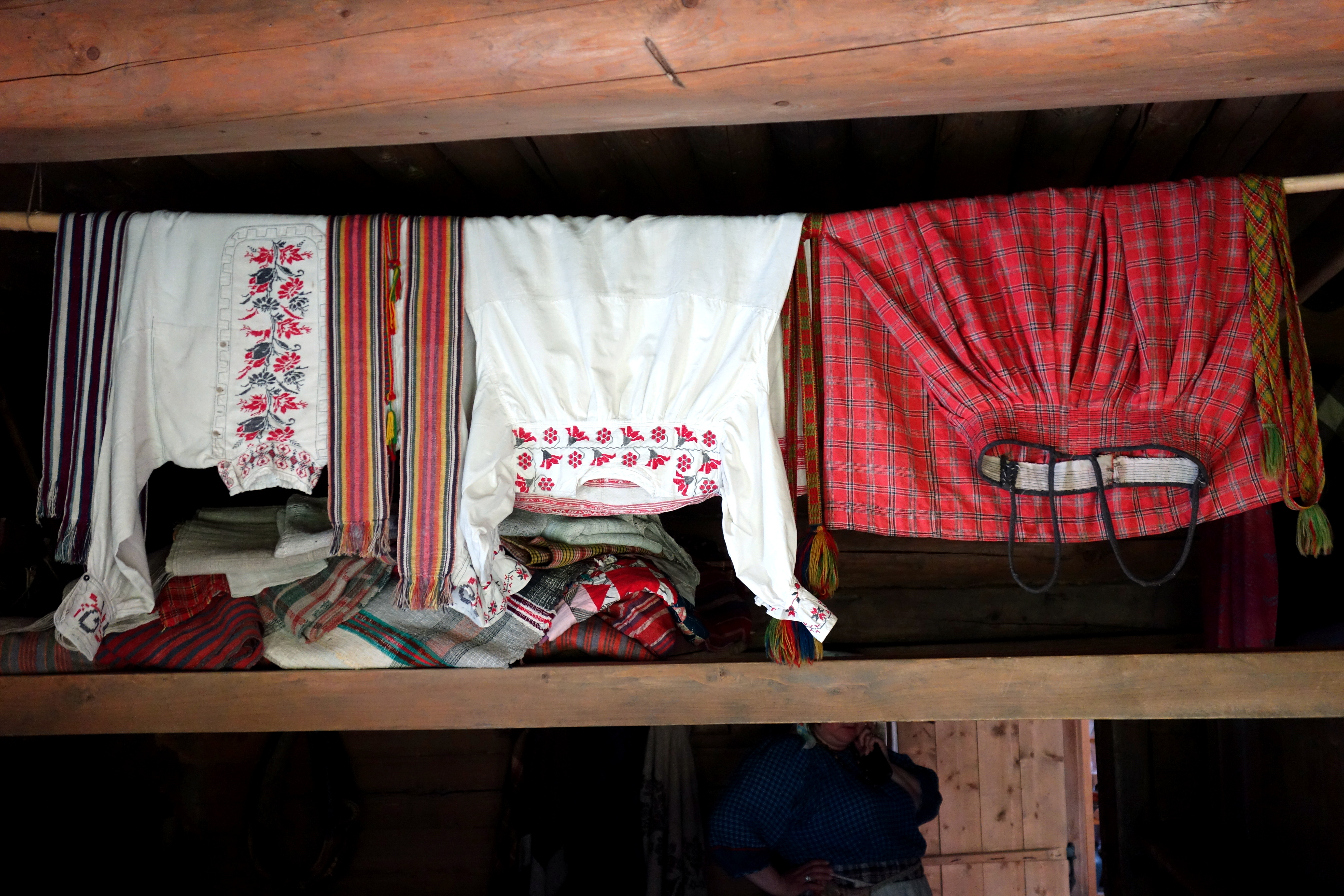 Dernier jour à Novgorod Veliky, je prends le vélo de l’auberge pour aller visiter le musée de l’architecture en bois qui se trouve à quelques kilomètres de là. Le musée est en fait un village reconstitué avec les différents bâtiments qui existaient entre le XVIè et XIXè siècle partout en Russie ! Super intéressant, mais malheureusement en travaux .. Je ne peux donc pas accéder à tout ! J’aime beaucoup l’intérieur des habitations, c’est extrêmement bien fait et on s’attend à voir des gens surgirent à n’importe quel moment et poursuivre leurs activités. Tous les détails de la vie quotidienne y sont.