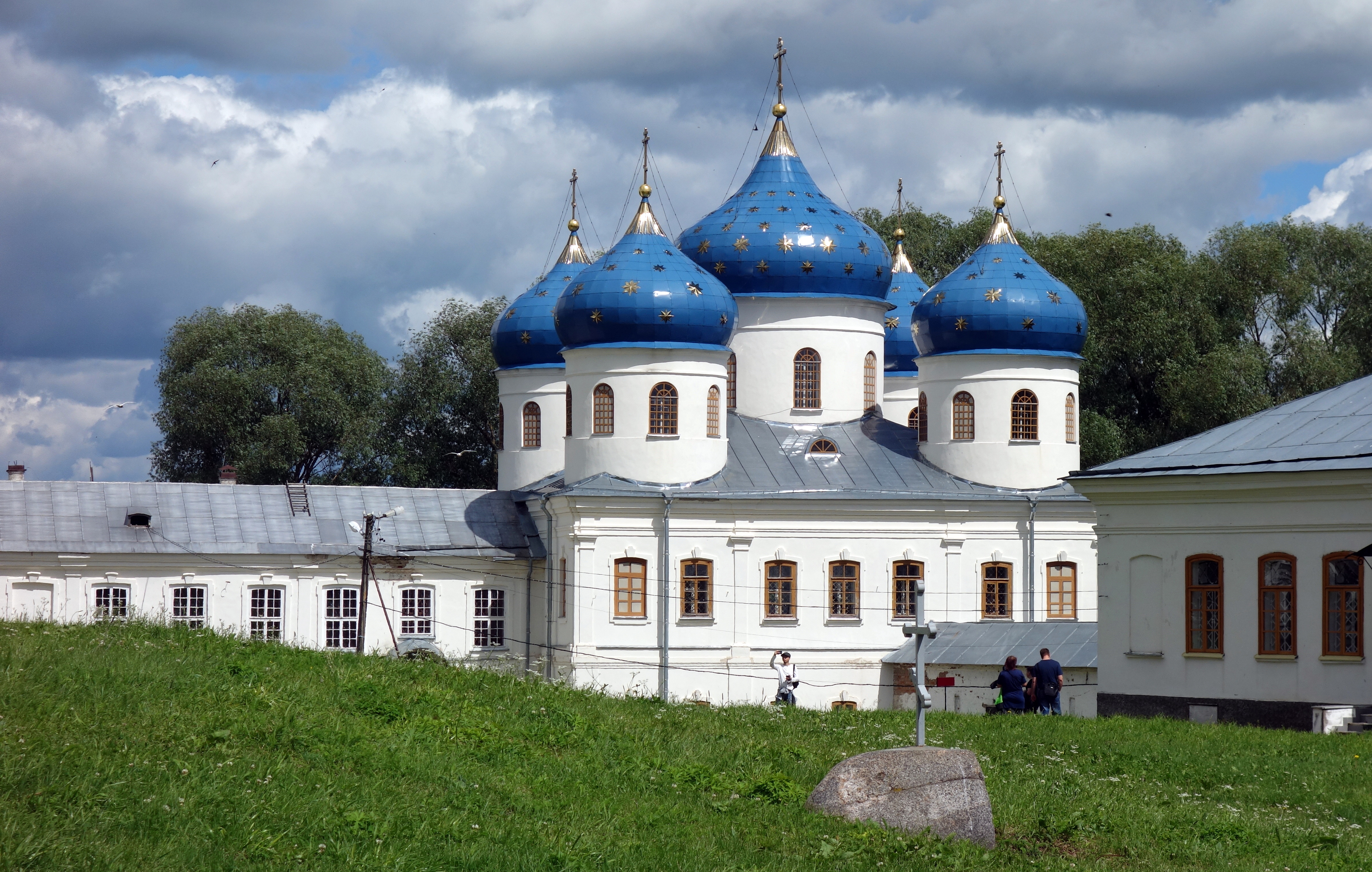 Je poursuis ma visite jusqu’au monastère Saint Georges, j’ai vu une photo des dômes bleus étoilés et je veux absolument le voir de mes propres yeux ! Le parc du monastère est tout mignon, la cathédrale est sublime, les étoiles brillent sous les rayons du soleil. Puis, je passe rapidement au bord du lac car je dois attraper mon bus pour Pskov où je traverserai la frontière pour me rendre en Estonie ! Retour dans l’Union Européenne !