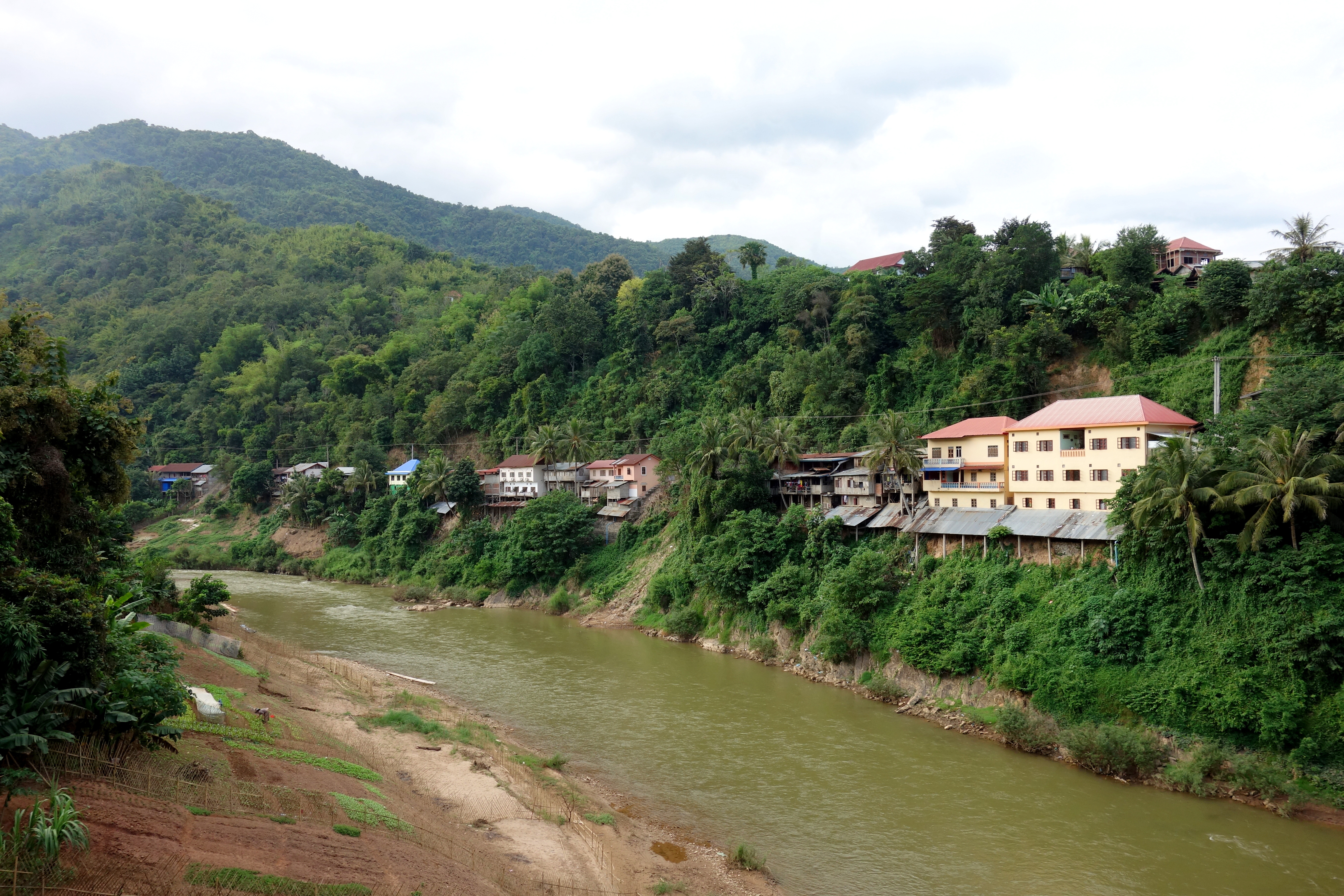 Le plan était de prendre directement un bateau pour rejoindre Mong Nhoi mais on nous demande un prix exorbitant. Une partie du groupe le fait, l’autre part chercher une Guesthouse pour la nuit. Je me fais accoster par un petit monsieur qui me dit avoir une Guesthouse avec vue sur la rivière : parfait ! J’y vais et effectivement c’est top !! Un autre français dort dans une chambre à côté on se dit bonjour.