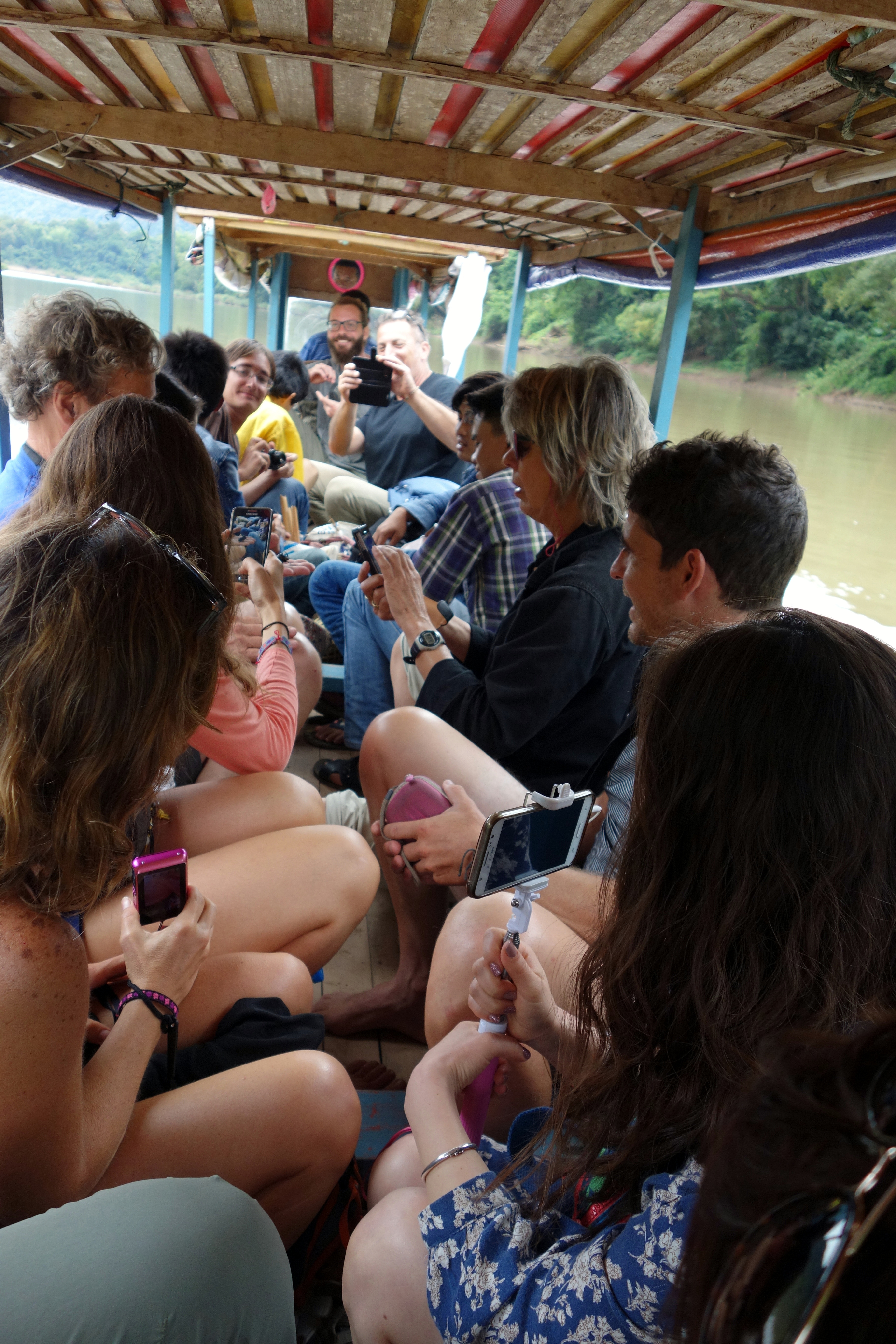 Pour la petite anecdote, le conducteur nous explique qu’on passe à 20 étrangers ou 30 laotiens sur le bateau ! Bon c’est vrai qu’on prend plus de places mais 10 personnes de différences c’est énorme ! Surtout qu’on était déjà bien serré.