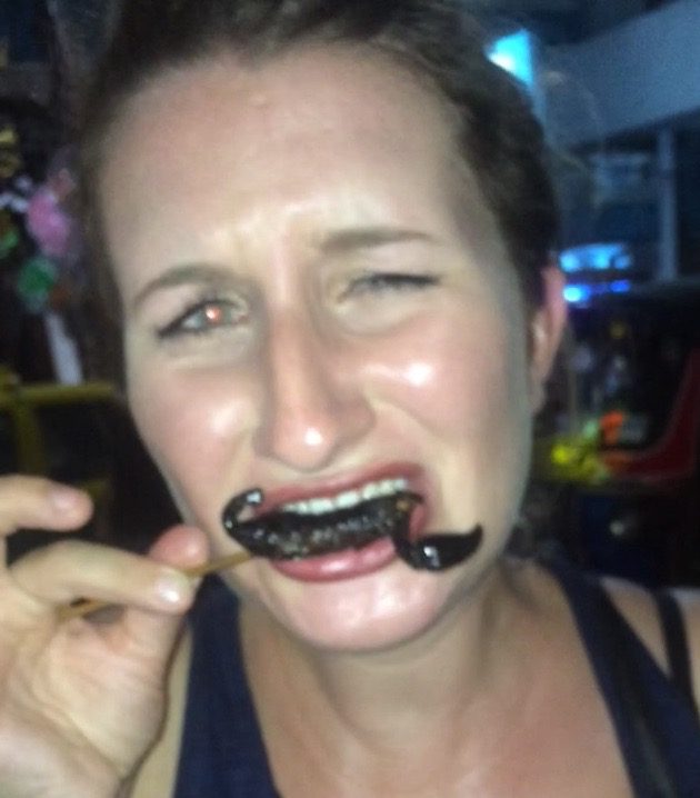 En revanche, j’ai mangé un scorpion ! J’ai un peu encouragé ce business nocturne et je le vis mal, mais personne n’est parfait ! Du coup, je peux vous dire que c’est pas terrible, c’est vraiment très sec (super frits) très croustillants et ça n’a pas de goût … voilà, pas très intéressant donc ! Ah oui, ça se coince partout dans les dents aussi !