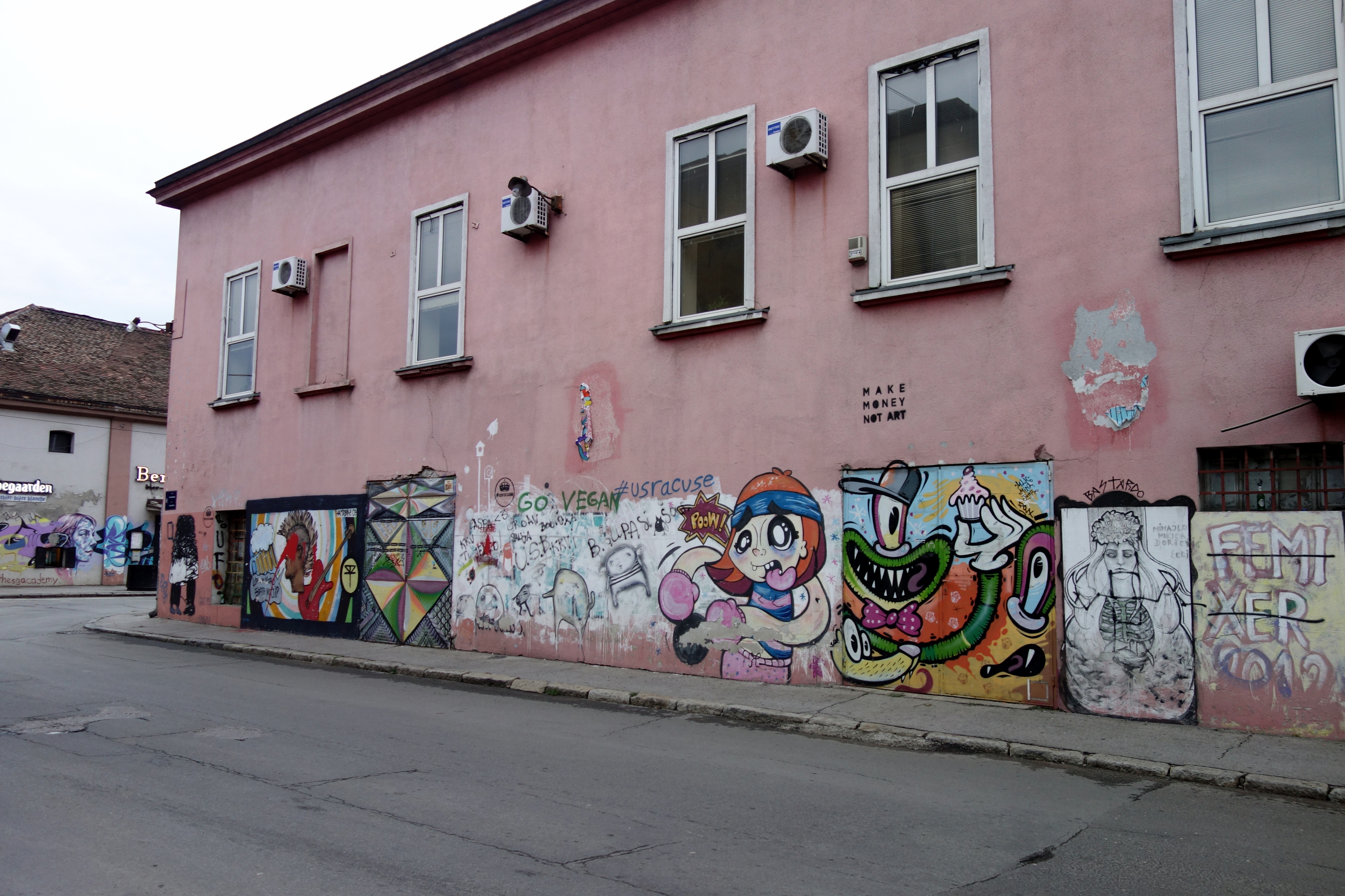 Les rues piétonnes du centre-ville sont toujours remplies de monde aussi, malgré le mauvais temps ! Je fais un tour au centre commercial mais il n’est pas ouf. Je reste sur ma faim à Belgrade et décide donc de partir dès le lendemain. Mais avant de partir, je fais un tour le long des quais qui sont censés être les quartiers qui bougent. Il y a quelques pubs dans des bâtiments abandonnés, couverts de tags, mouais…