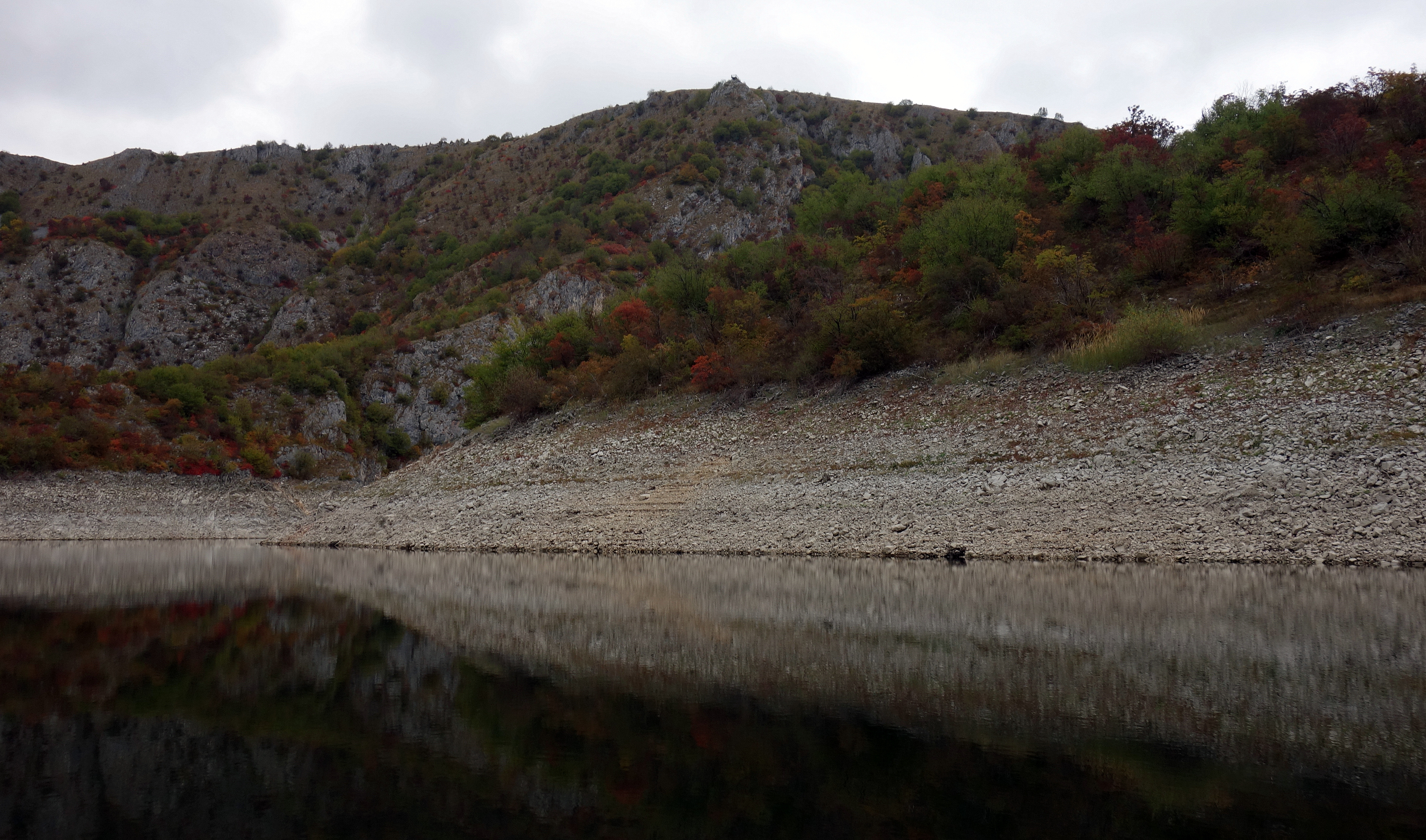 Après avoir marché le long de la crête pour rejoindre d’autres points de vue, on a ensuite dû redescendre. Retrouver notre bateau glacial ! 1heure plus tard, complètement congelé, on regagnait la voiture. On s’est arrêtés dans un kafana, pour déguster un café noir autour du feu. Le stop suivant, un lac au milieu de rien. L’eau était translucide, incroyable ! Un lieu superbe, on était tout seuls. En été, j’aurai adoré m’y baigner ! Aaron, lui, n’a pas hésité : il a plongé et a passé au moins 15 minutes dans l’eau, un fou !! Assise au bord, je grelottais…