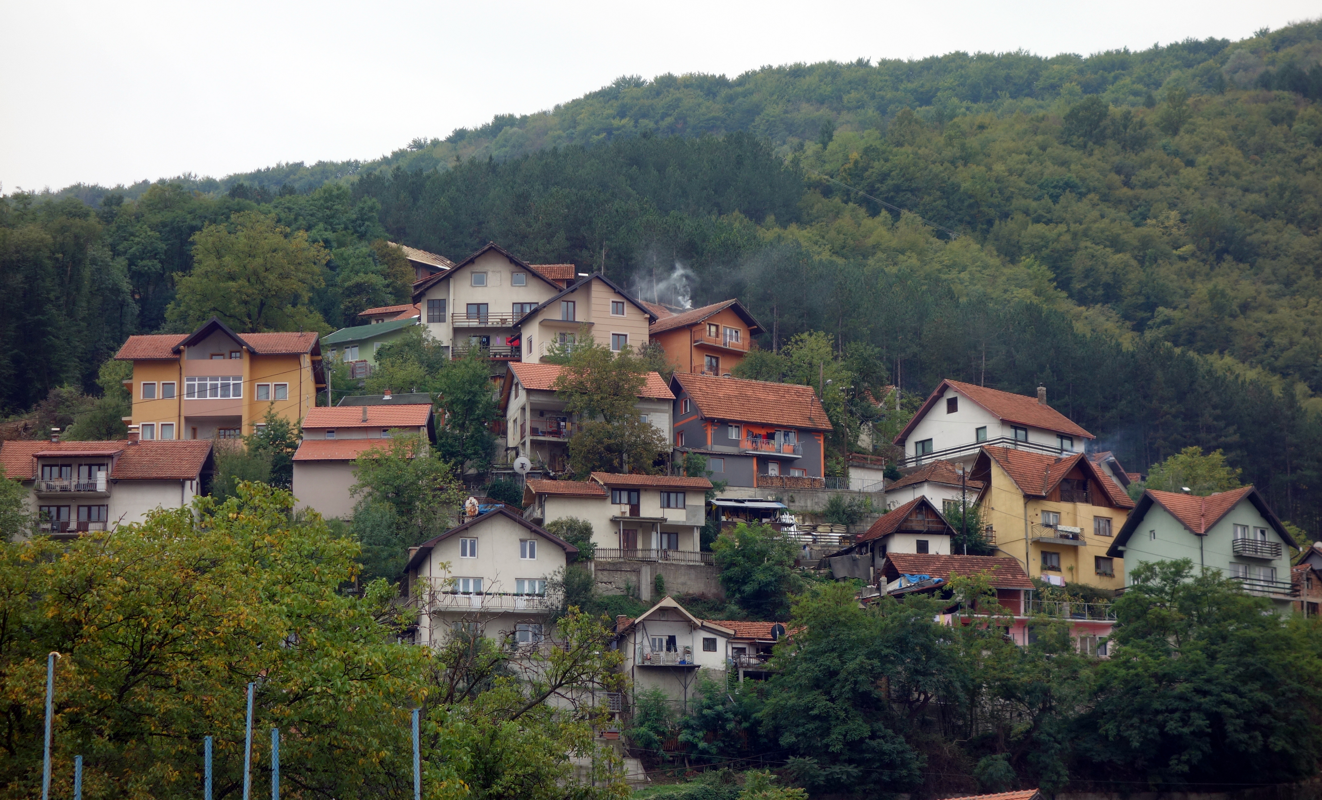 Je décide de traverser le village à pied, enfin, j’ai pas trop le choix vu où je suis. Je marche, on me regarde bizarrement, qu’est ce que je fous là, ils peuvent se poser la question hahah ! Je tente de rejoindre l’axe principal à environ 2km de là. Bon, là, je suis au milieu du village, il y a plein de commerces, un peu de passage, les voitures que j’aperçois sont vraiment vraiment pourries, d’une autre époque, je ne vais pas faire la difficile, c’est reparti, je lève le pouce ! La première voiture s’arrête, je vais finir par m’y habituer ! Un vieux monsieur, je ne sais pas où il va mais ça à l’air d’être la bonne direction. Il essaye vraiment de me parler mais je ne comprends rien du tout… La barrière de la langue n’est pas un mythe parfois ! Il me regarde en me parlant et part donc au milieu de la route manquant de peu de percuter une voiture. Pas très rassurée dans la voiture de ce vieux monsieur, je lui demande de me déposer quand j’aperçois une guesthouse au milieu de rien, de rien du tout ! Je suis à 3 km de la frontière avec le Monténégro, à ce moment-là, je ne réalise pas la galère. Les environs sont super jolis, je prends même des photos, c’est hyper authentique.