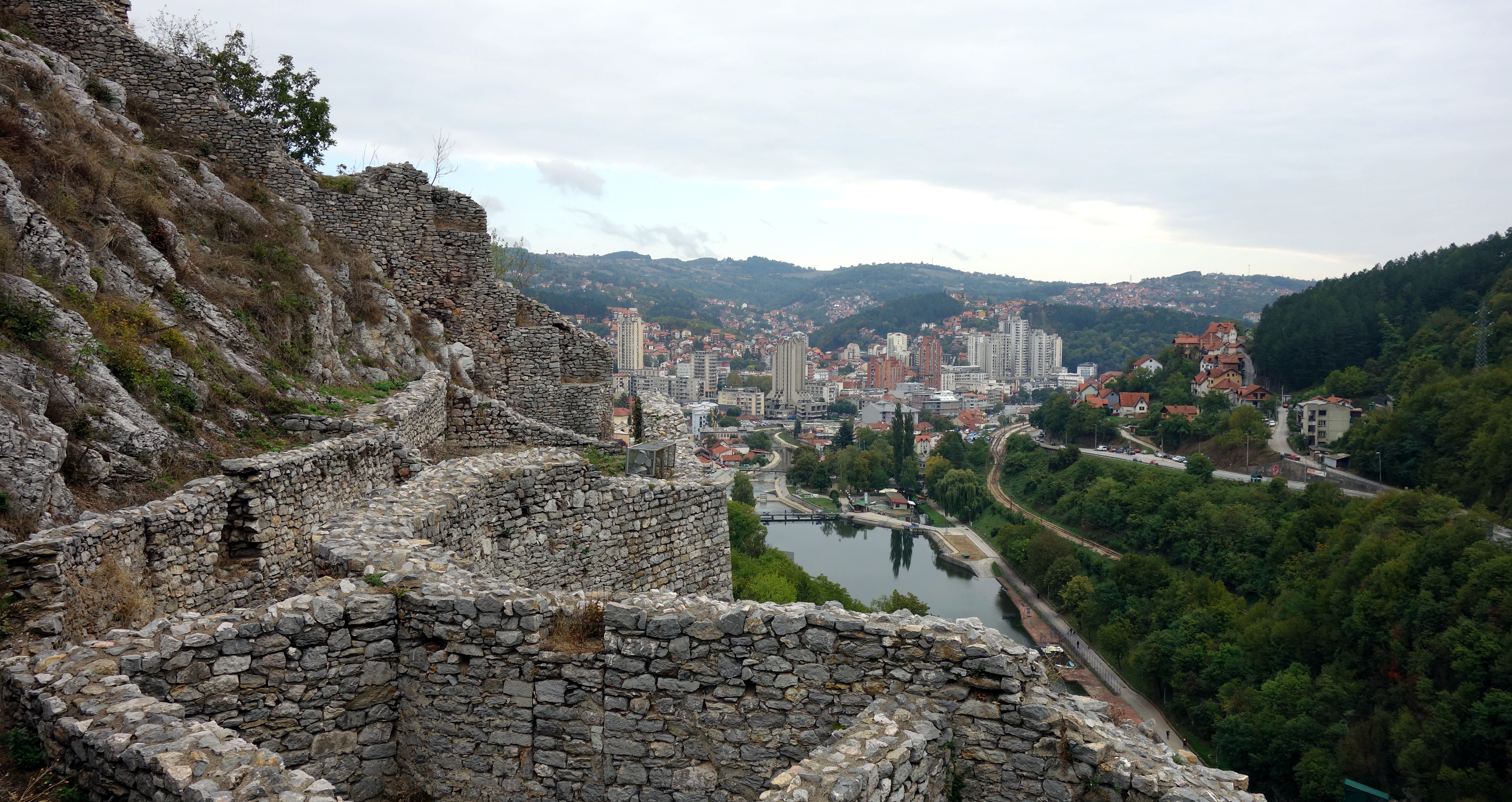Encore une fois, la ville est … moche ! Décidément, la Serbie, a du mal à me séduire ! Ce qui est joli, ce sont les maisons sur les collines qui encerclent la ville ! Je décide de monter à la forteresse. Une petite marche le long de la rivière (moche…) et j’arrive en bas de la côte. Encore une colline, mes jambes ne sont plus à ça près : c’est parti ! Arrivée en haut, le lieu est en rénovation, je suis la seule touriste et les ouvriers s’inquiètent pour moi, 3 me disent de faire attention de ne pas tomber dans le trou qu’ils sont en train de creuser, je m’attends à un cratère, non non, un genre de puis, tout petit, ça va, je suis maladroite mais là pour tomber dedans faudrait le faire exprès ! La vue de là-haut est très jolie. Le soleil a pointé le bout de son nez, j’apprécie vraiment !