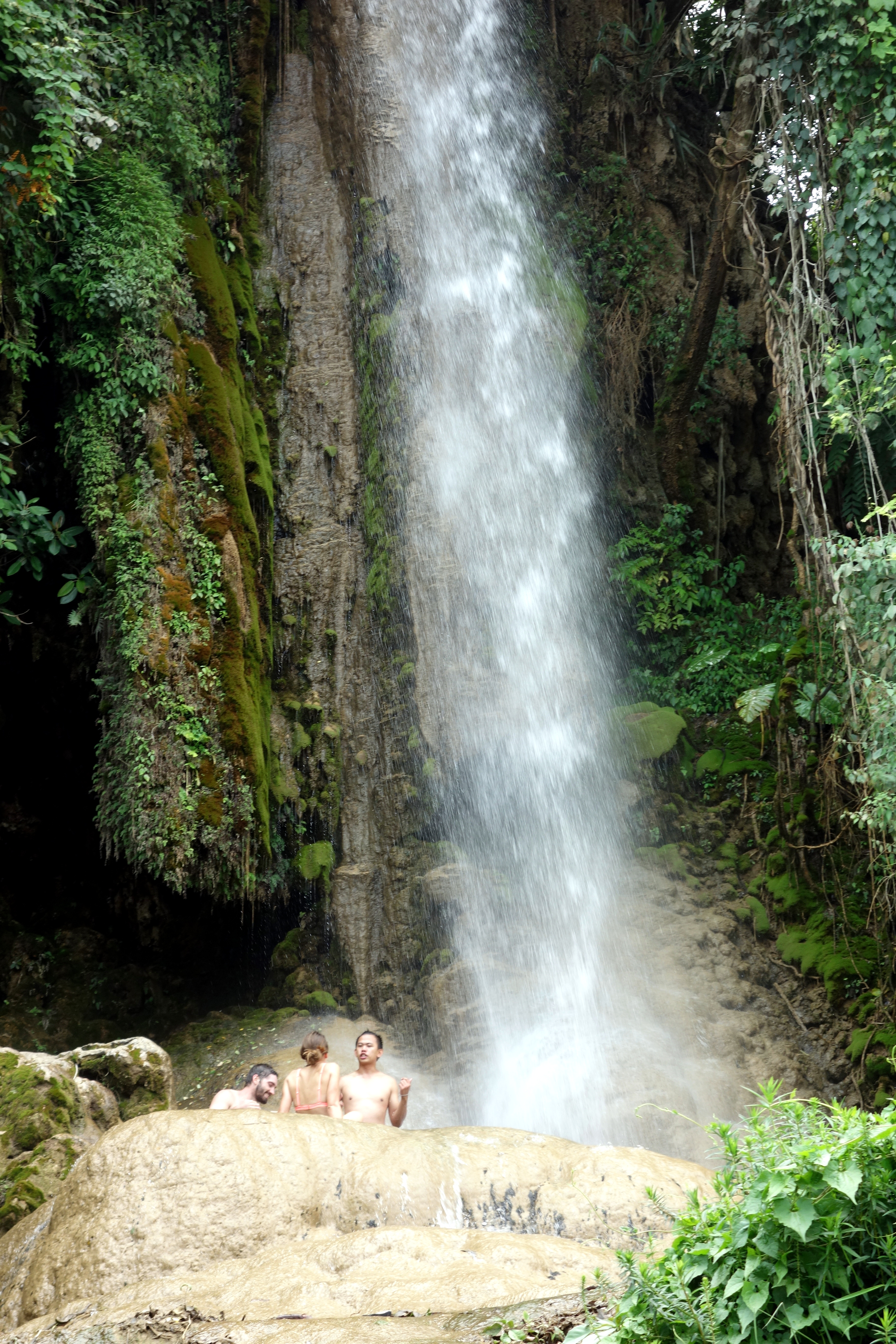 En revanche, quand 2 bonnes heures plus tard le guide nous annonce qu’on arrive à la cascade, on reste sur les fesses ! Elle est trop belle !!! Ni une ni deux, nous voilà en maillots de bain prêts à se baigner ! On prend enfin une vraie douche ! La force de l’eau qui tombe nous fait mal mais on s’en fiche, … de l’eau fraiiiiiiiche on revit ! En plus, j’ai un bon coup de soleil sur les épaules, aie aie aie … Alors oui, je prends beaucoup de coups de soleil MAIS la veille, j’étais la seule à faire des pauses pour me remettre de la crème toutes les 30minutes ! Ce n’est vraiment pas faute de bien faire … merci papa pour ta peau !