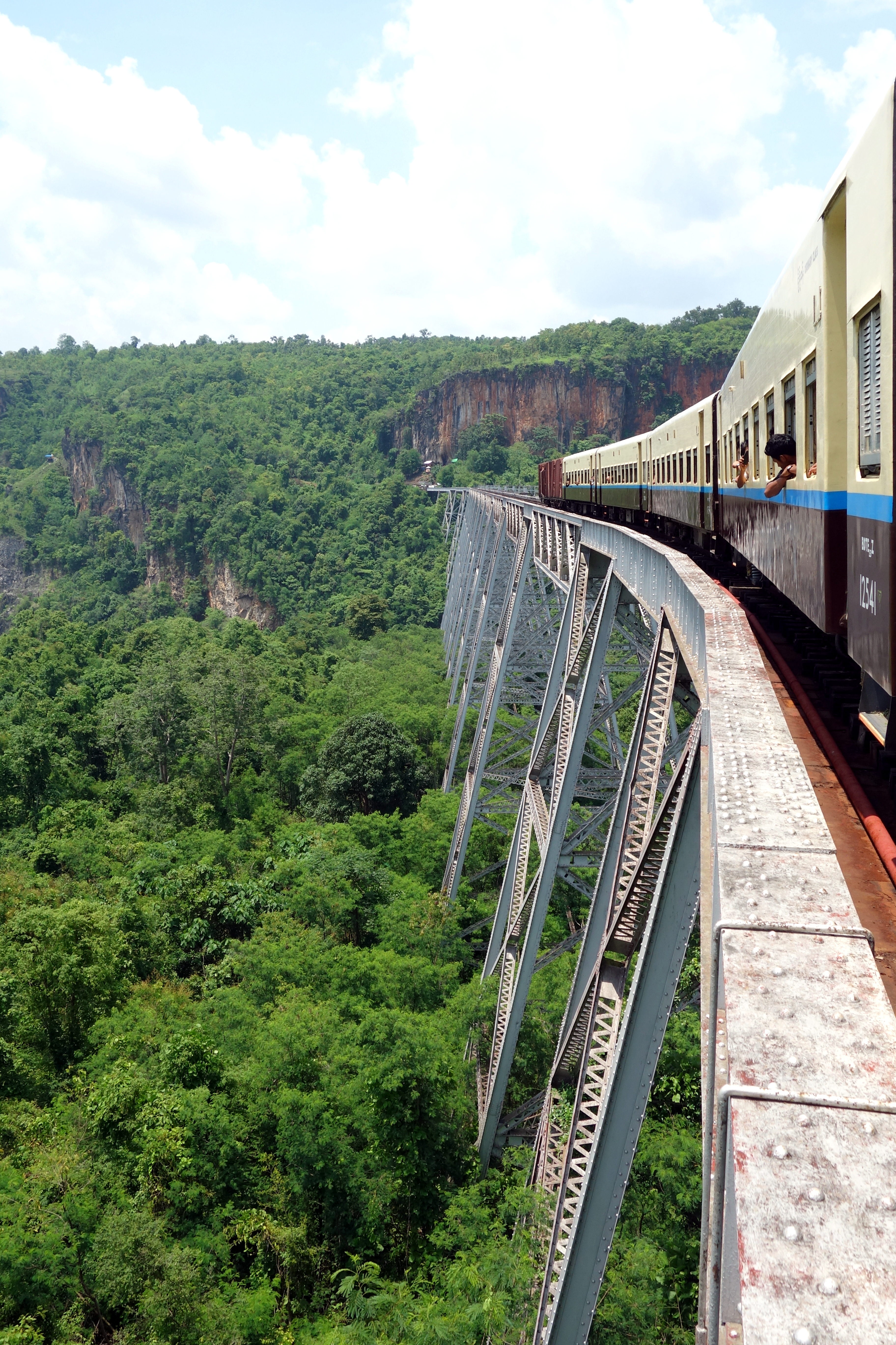 - Le trajet en train jusqu’à Pyin Oo Lwin est magnifique ! Et le passage sur le viaduc de Gokteik est vraiment très très impressionnant ! Mon conseil : prenez les billets 1 ere classe, vu la durée du trajet, ça vaut le coup… quitte à faire un tour en seconde classe pour avoir plus d’échanges avec les birman