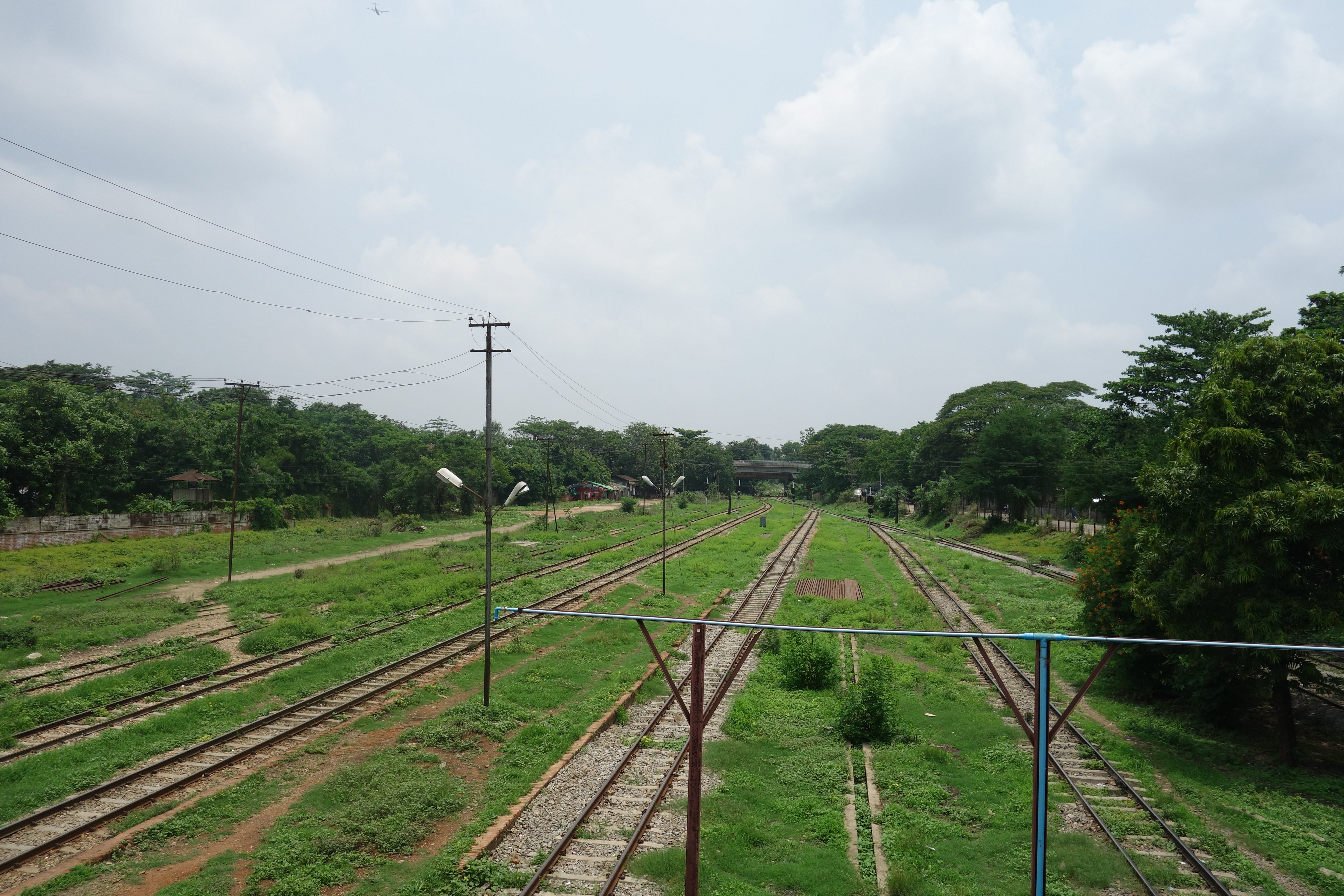 Le lendemain matin, on part faire le tour de Yangon en train circulaire. Pendant 3h, on est plongés dans la vie locale. Les vendeurs ambulants (souvent des enfants…) montent et descendent pour vendre de la nourriture, à boire, du bétel… Les gens dorment, mangent, discutent. C’est plein de vie et en même temps très calme. On n’a malheureusement pas eu de réels échanges avec les locaux comme je l’espérais. Peut-être le fait d’être 2 ? Ou le trajet qui devient trop touristique ? C’était un peu long à la fin… On a fait une pause à mi-chemin, allant se perdre dans un petit village piéton du côté de Insein! Ici, tout le monde utilise ses jambes pour se déplacer (ou un vélo!). L’absence de bruit est hyper agréable, c’est bien différent du centre de Yangon, bondé, bruyant, pollué, que je trouve extrêmement fatiguant ! Les birmans sont très souriants, toujours surpris de nous voir ici.