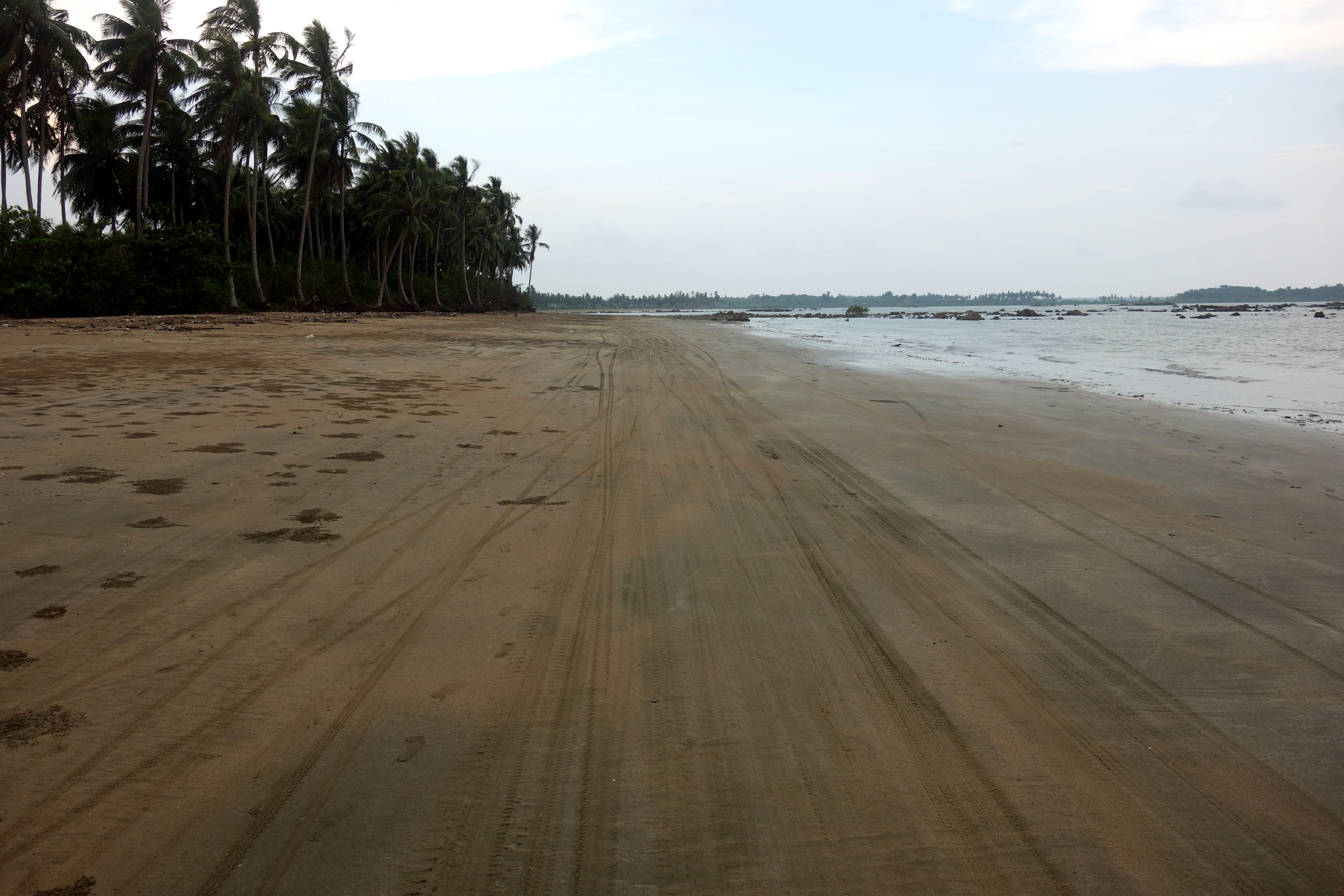 On prend donc le premier bac pour traverser la première rivière. Arrivées de l’autre côté on roule plusieurs kilomètres sur la plage, la vue est dingue ! Et il y a un tel sentiment de liberté à rouler dans le sable, j’adore !