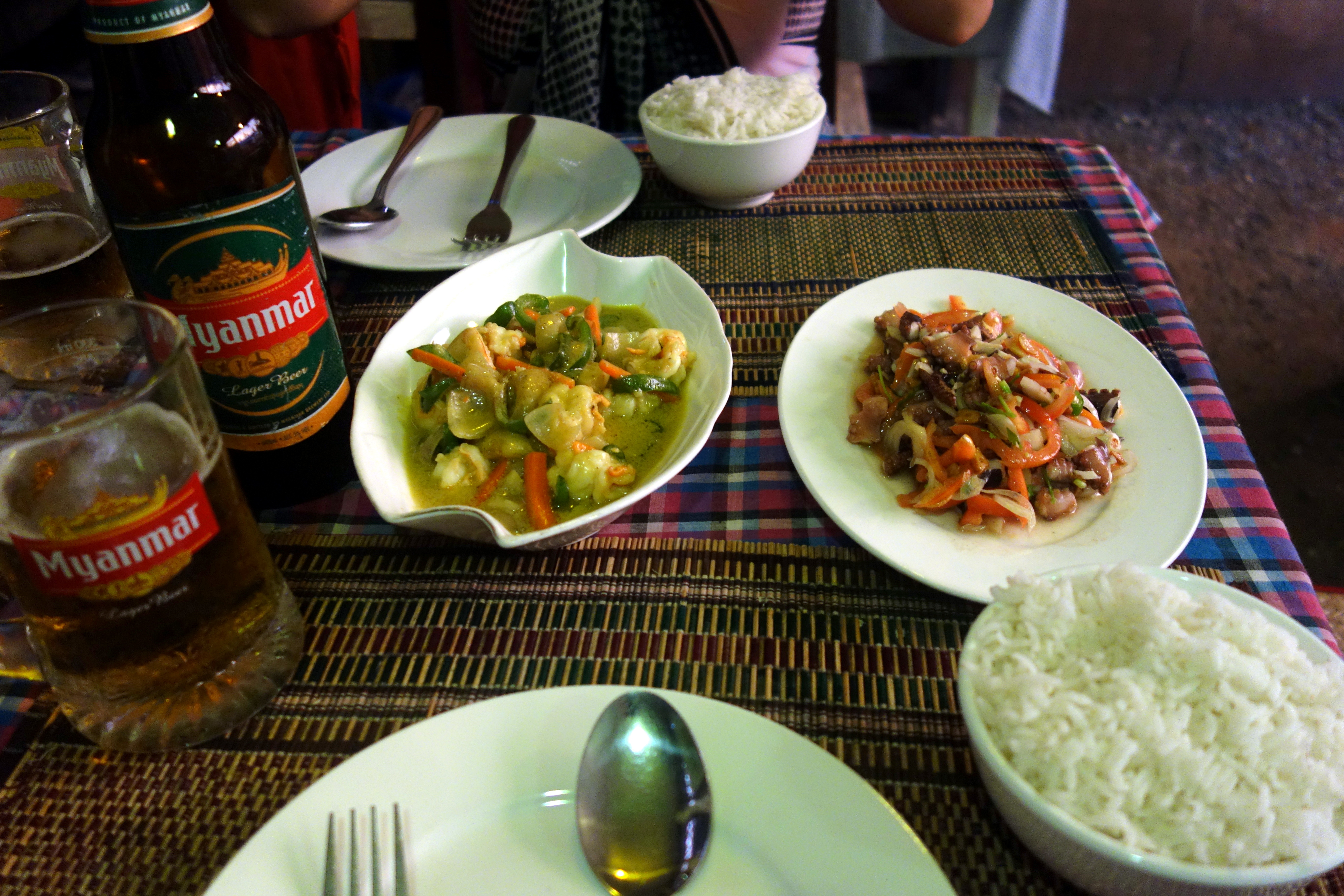 On refait tout le chemin en sens inverse et on rencontre un groupe de jeunes. Ils sont super sympas, parlent un peu anglais. On prend un super selfie tous ensemble ! Ils nous indiquent un bon restaurant de fruits de mer, un peu cher mais délicieux ! Un régal !! Je recommande Table 5 en plus de la nourriture excellente, le chef parle super bien anglais et est très intéressant. On a pris un curry de crevettes et une salade de poulpe. Mmmh, un délice !